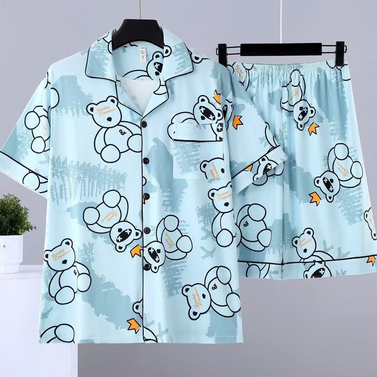 Главная страница > Пижамы мужские летние шорты с короткими рукавами плюс толстые подростки больших размеров тонкий кардиган свободный комплект домашней одежды для школьников младших классов
