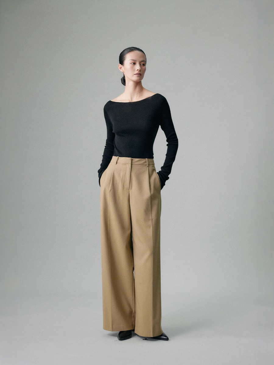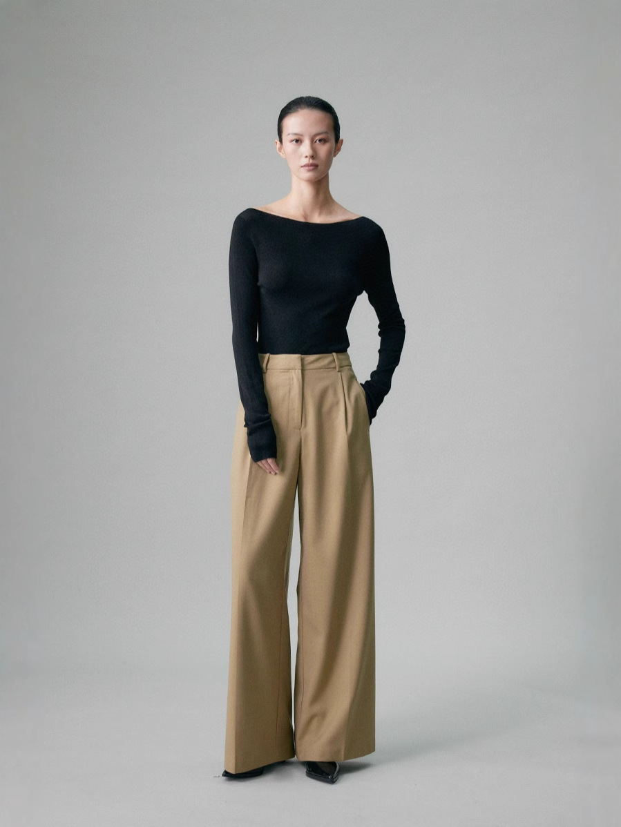 Главная страница > Уоррен Хайлонг | Городской пригородной простой стиль Wanzi ткань Freja женская шерсть одноплошная широкая нога повседневные брюки
