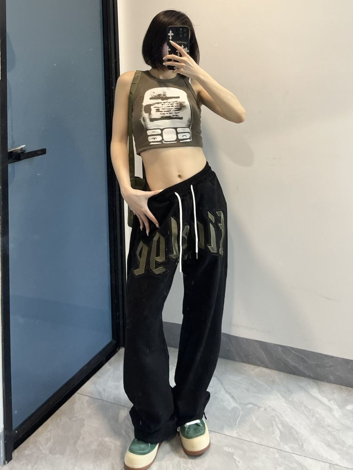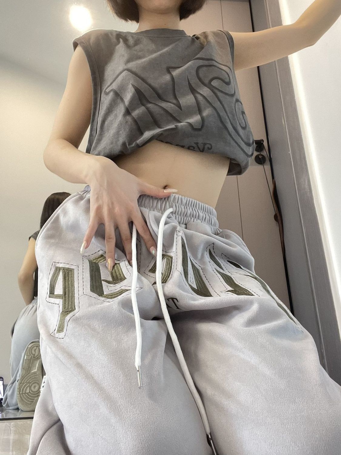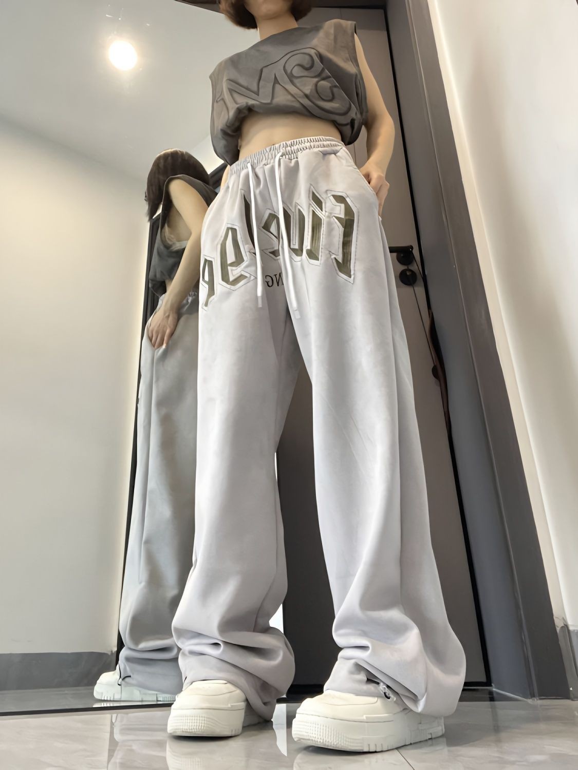 Главная страница > Американские спортивные повседневные серые спортивные штаны для женщин, широкие свободные тонкие прямые брюки в стиле хип-хоп, весенние и летние брюки
