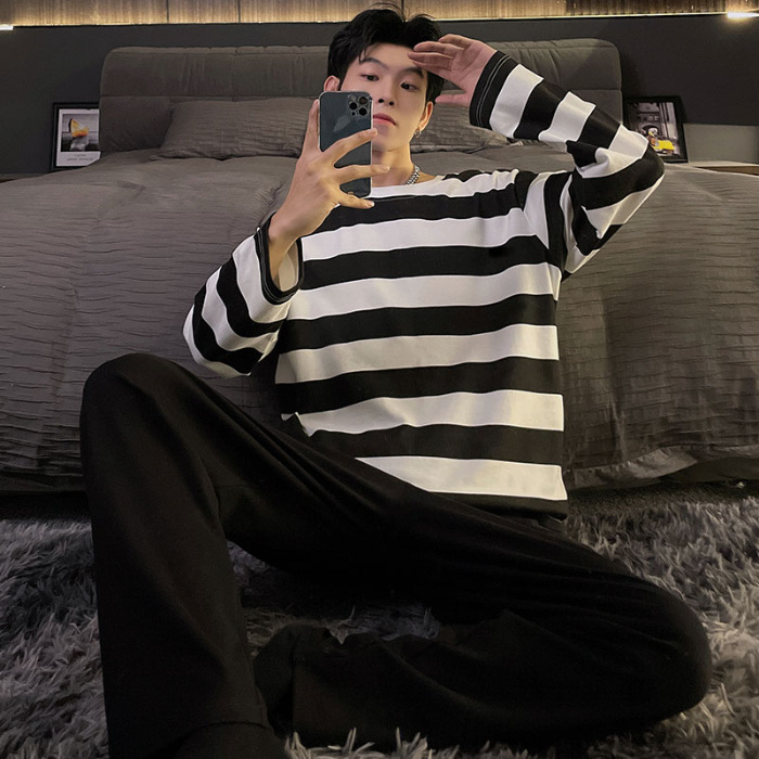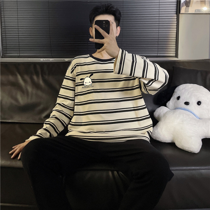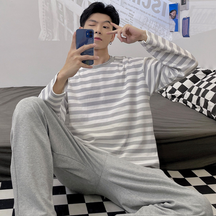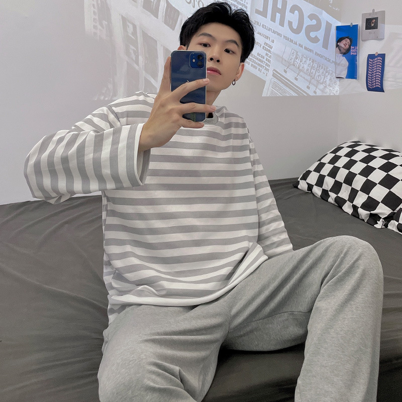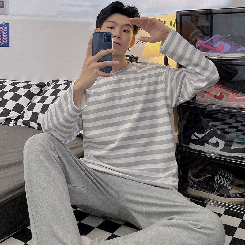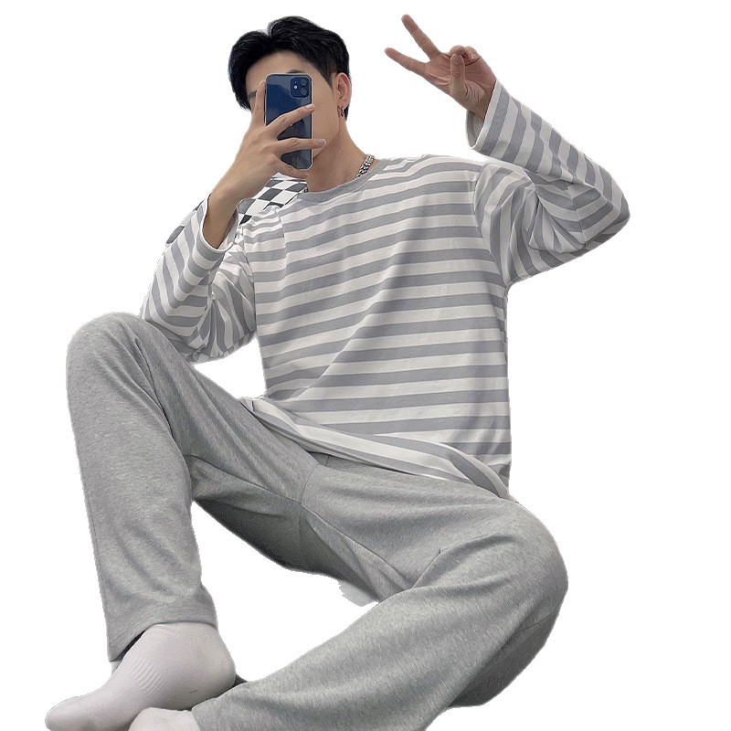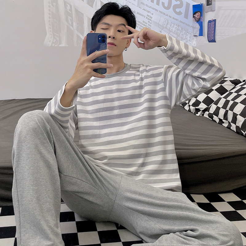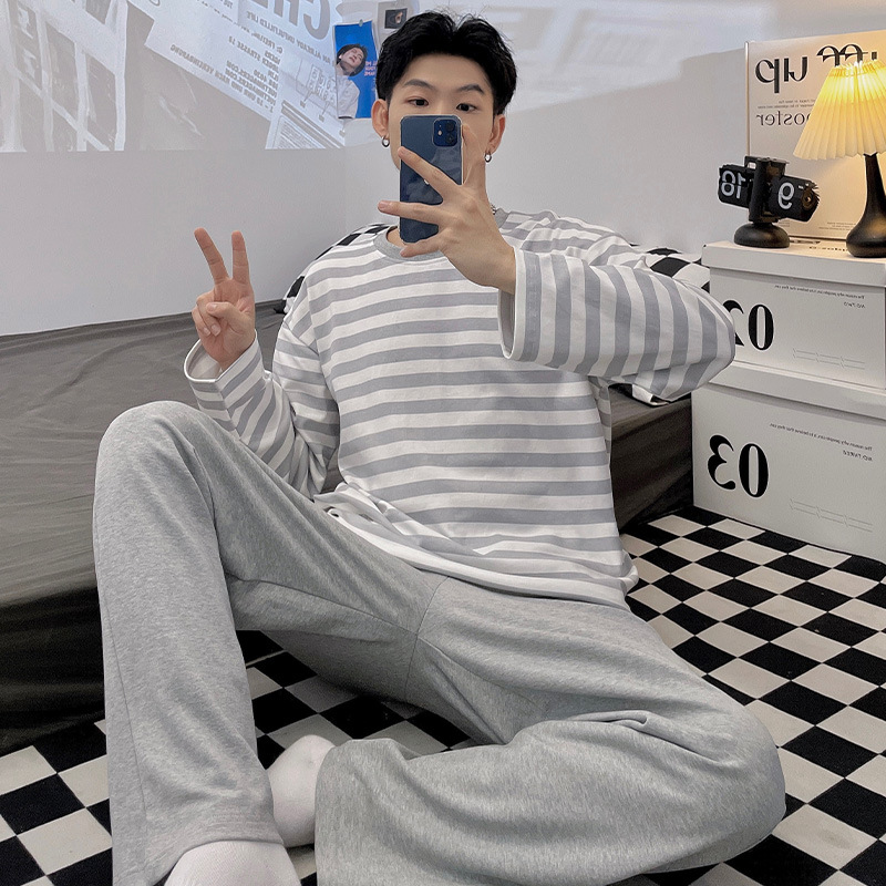 Главная страница > Весенне-осенние новые пижамы, мужские пижамы из искусственного хлопка с длинными рукавами, высококачественные корейские стильные носимые свободные повседневные комплекты домашней одежды для пар