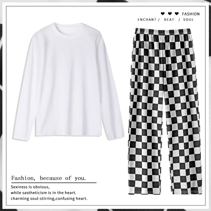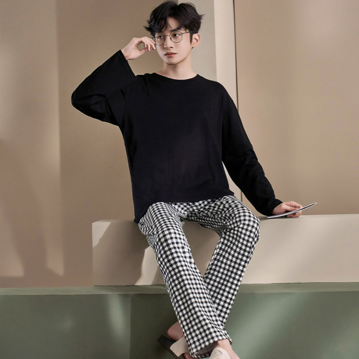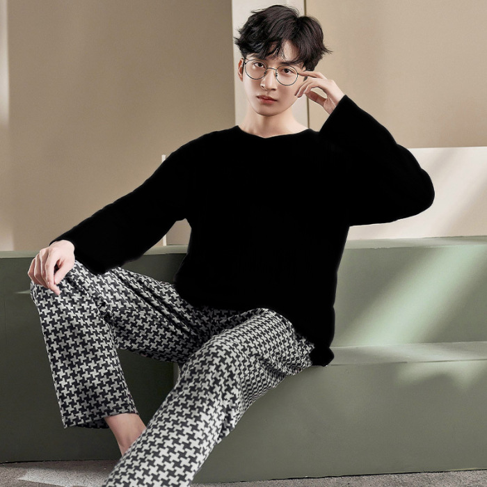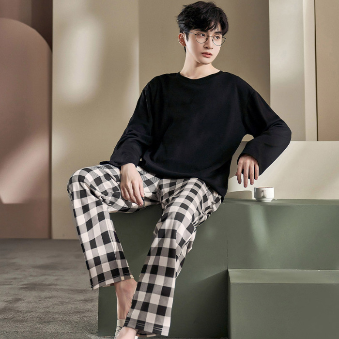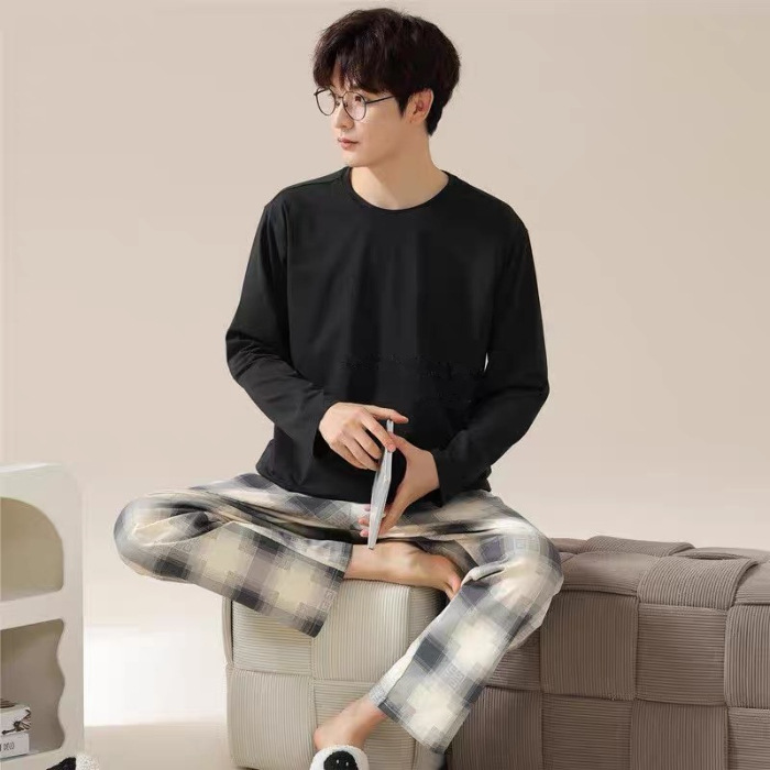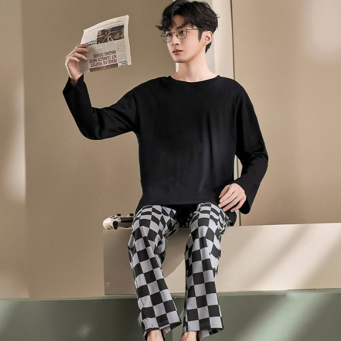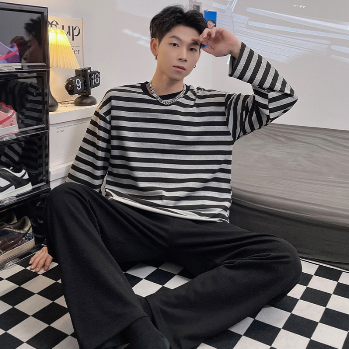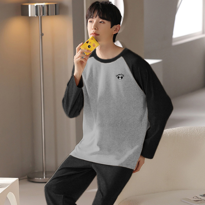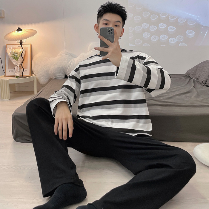 Главная страница > Весенне-осенние новые пижамы, мужские пижамы из искусственного хлопка с длинными рукавами, высококачественные корейские стильные носимые свободные повседневные комплекты домашней одежды для пар