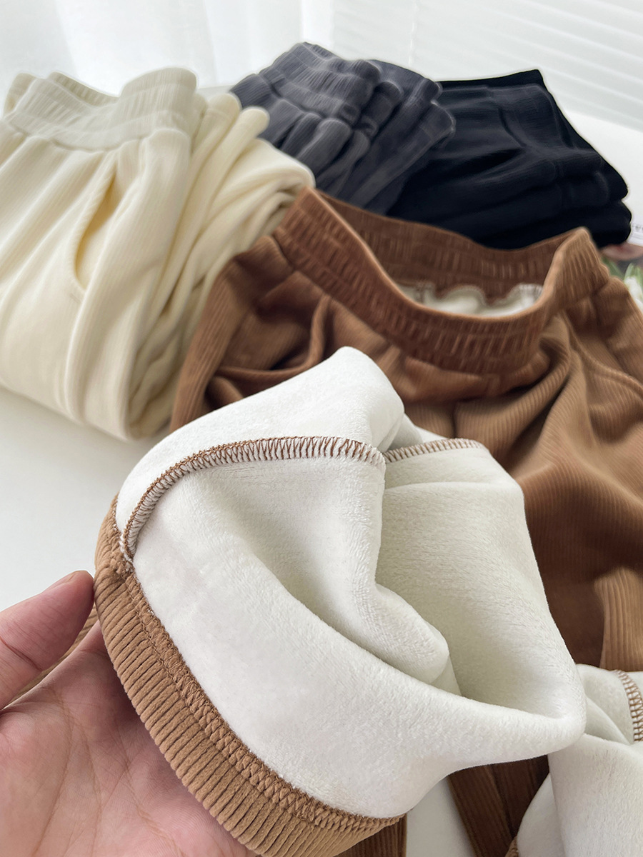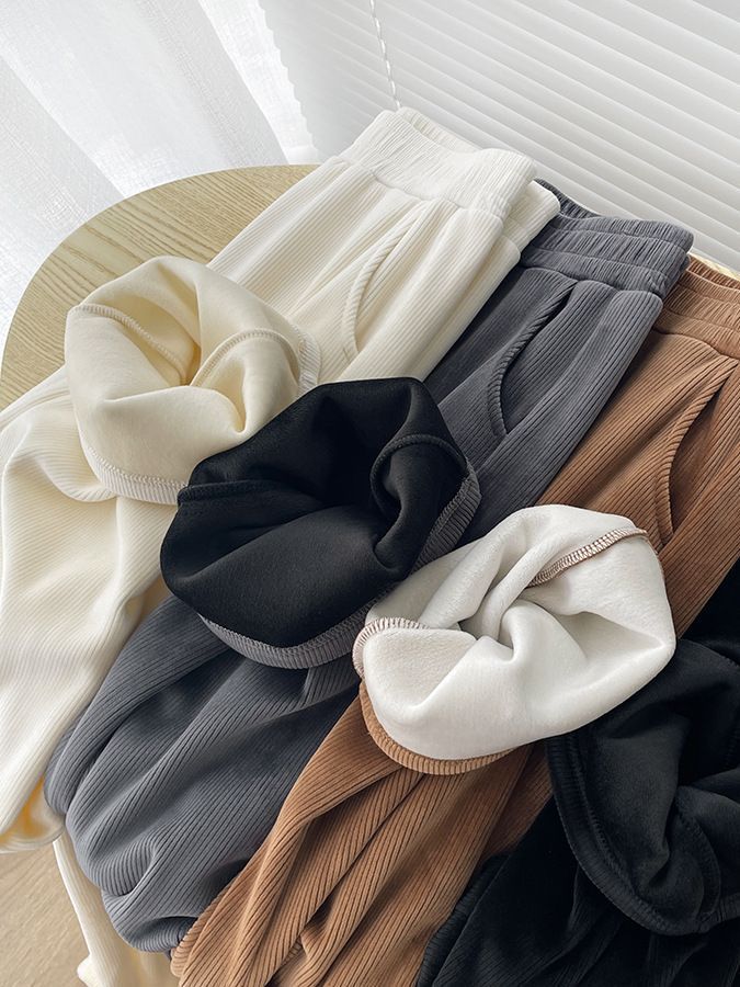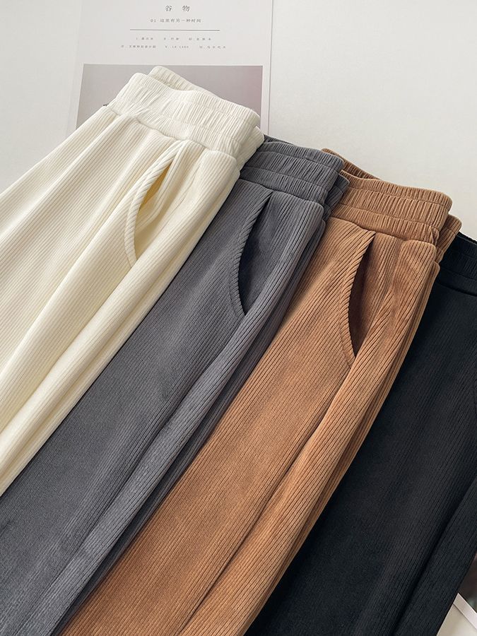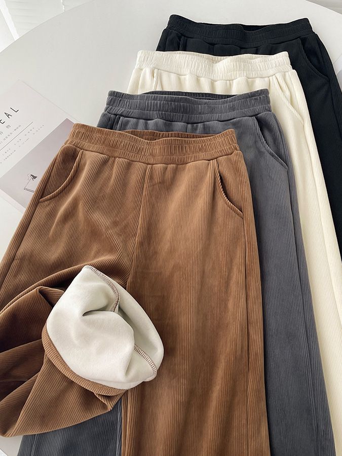 Главная страница > Маленькие Узкие Широкие брюки из синели, женские прямые повседневные брюки с высокой талией и драпировки на флисовой подкладке, Осень-зима 2023