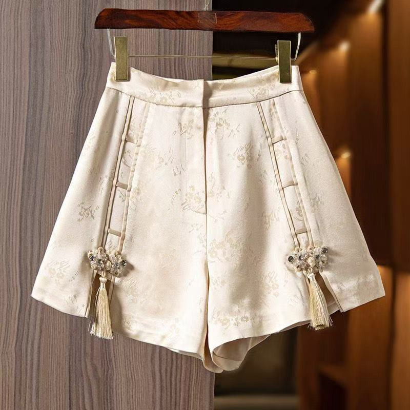Главная страница > Новая китайская новая летняя женская одежда в китайском стиле ацетат жаккардовые шорты ретро с бахроной пуговицы дикие тонкие шорты