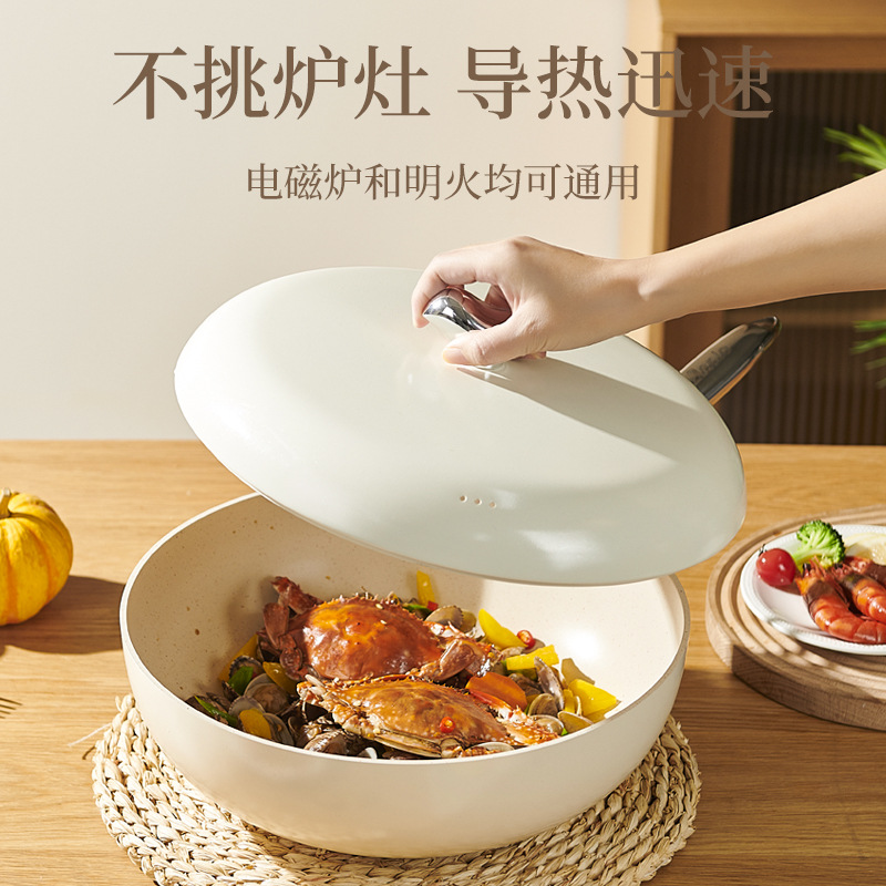 Главная страница > Британский Mingjue гальковый горшок с антипригарным покрытием вок бытовая сковорода вок сковорода плита универсальная оптовая продажа