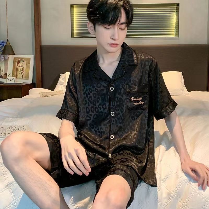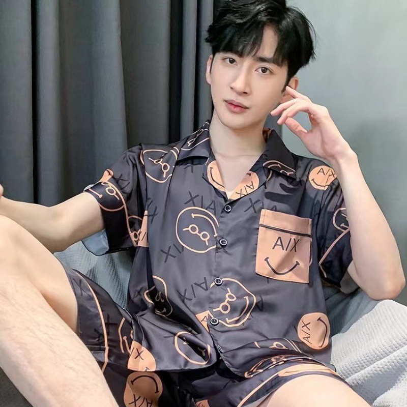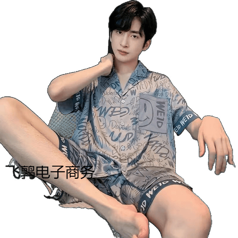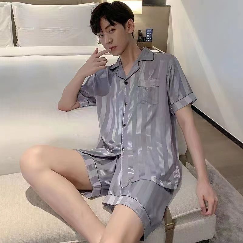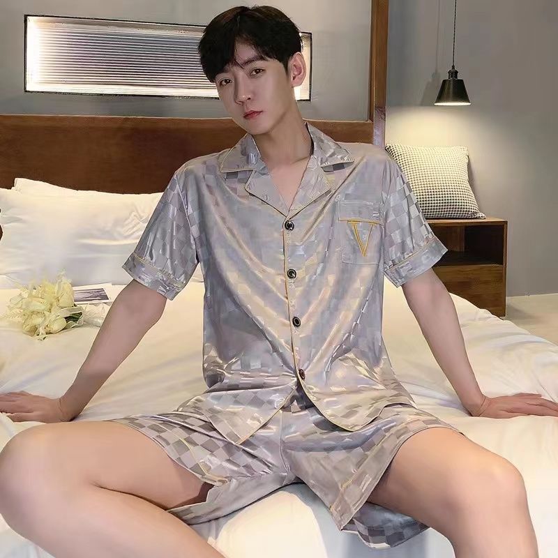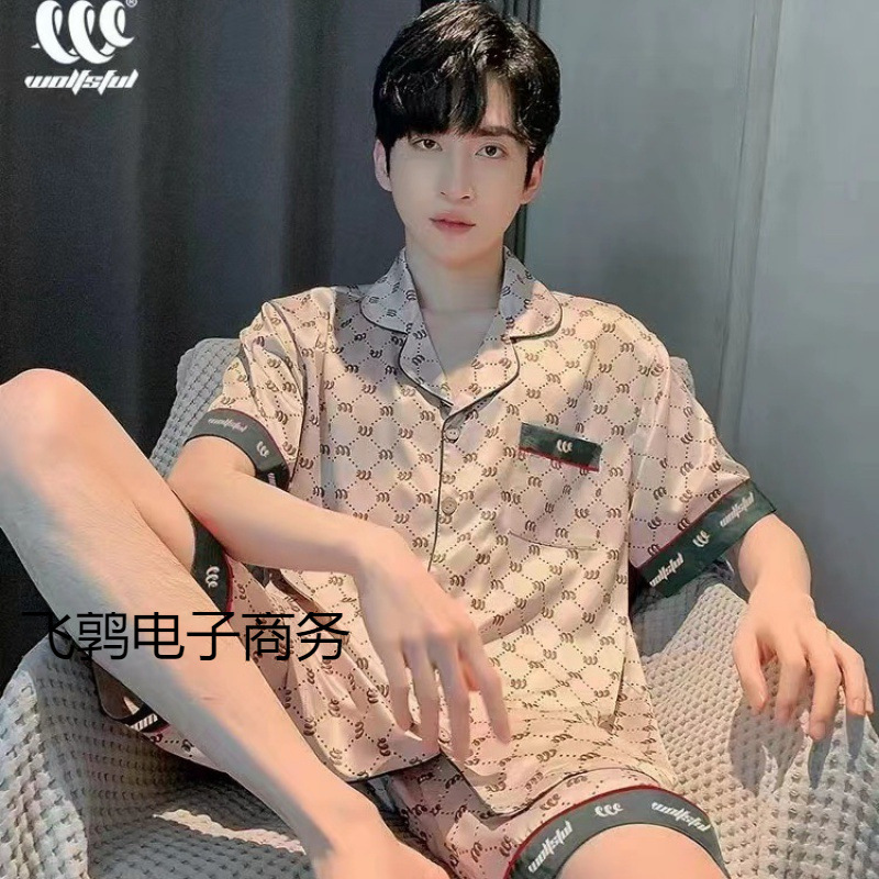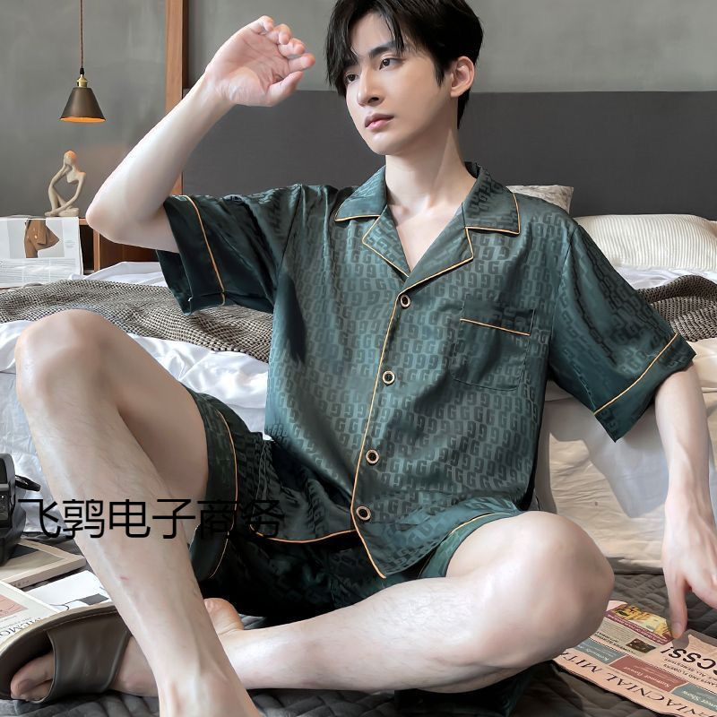 Главная страница > Мужские летние пижамы из ледяного шелка, короткие рукава, шорты, атласный шелк, можно носить на улице, молодежная домашняя одежда, летний тонкий стиль.
