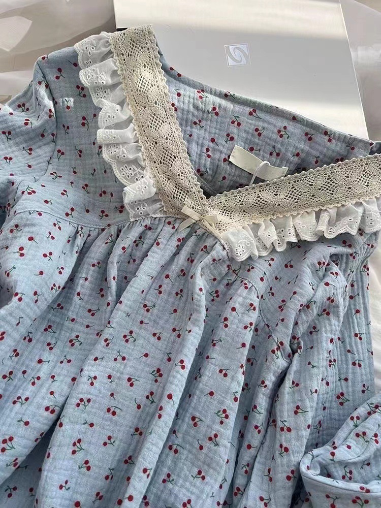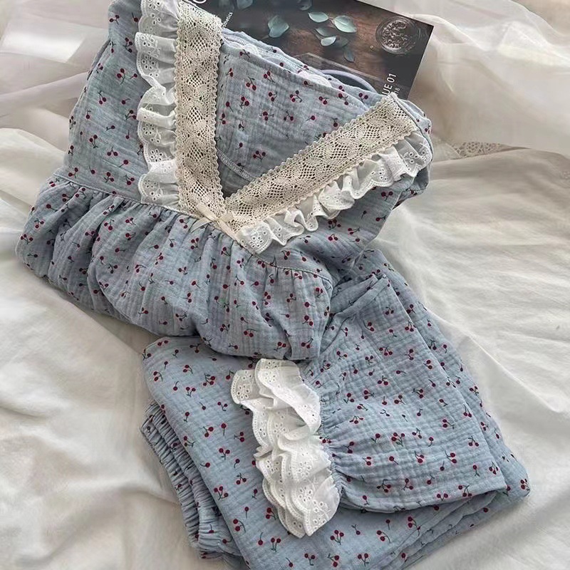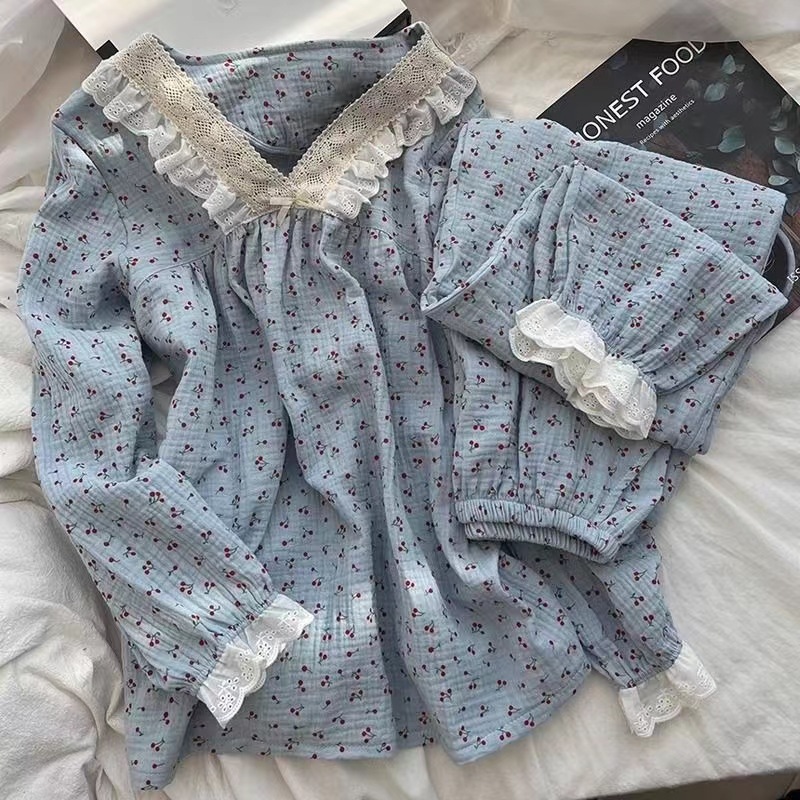 Главная страница > Пижама в японском стиле Instagram, Осенний пуловер для девочек, Новая Домашняя одежда с длинными рукавами, повседневный комплект из двух предметов, кружевной Вишня