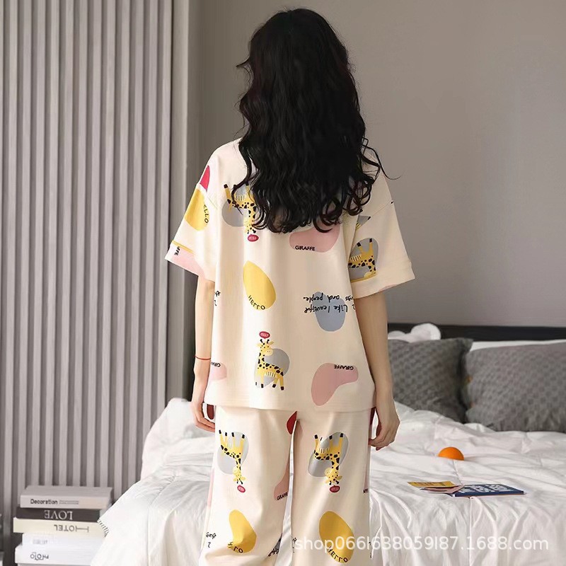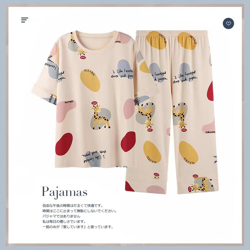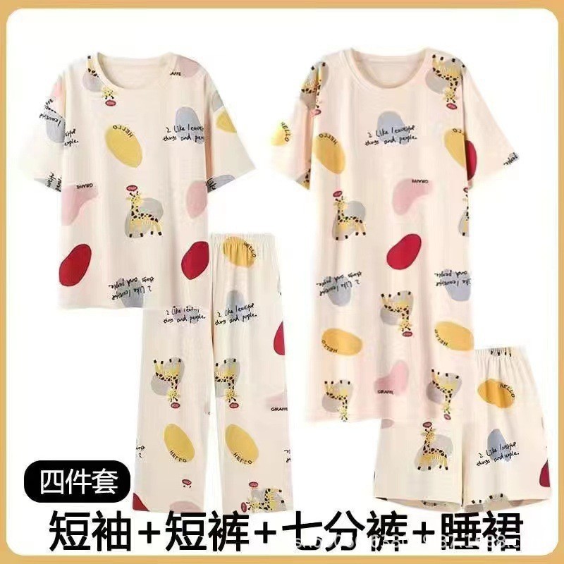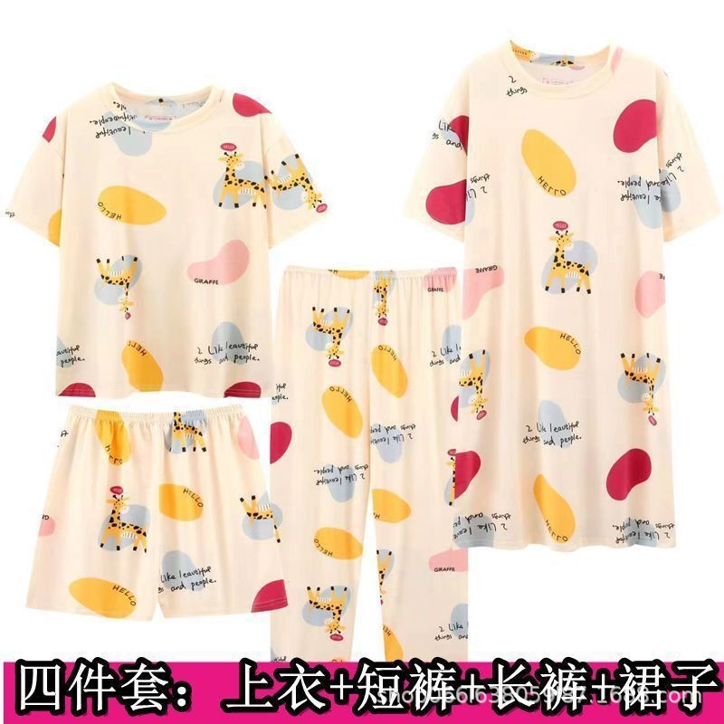 Главная страница > [Набор из четырех частей] Новая пижама женская летняя женская крышка с короткими рукавами и укороченные брюки домашняя одежда женская ночная юбка набор