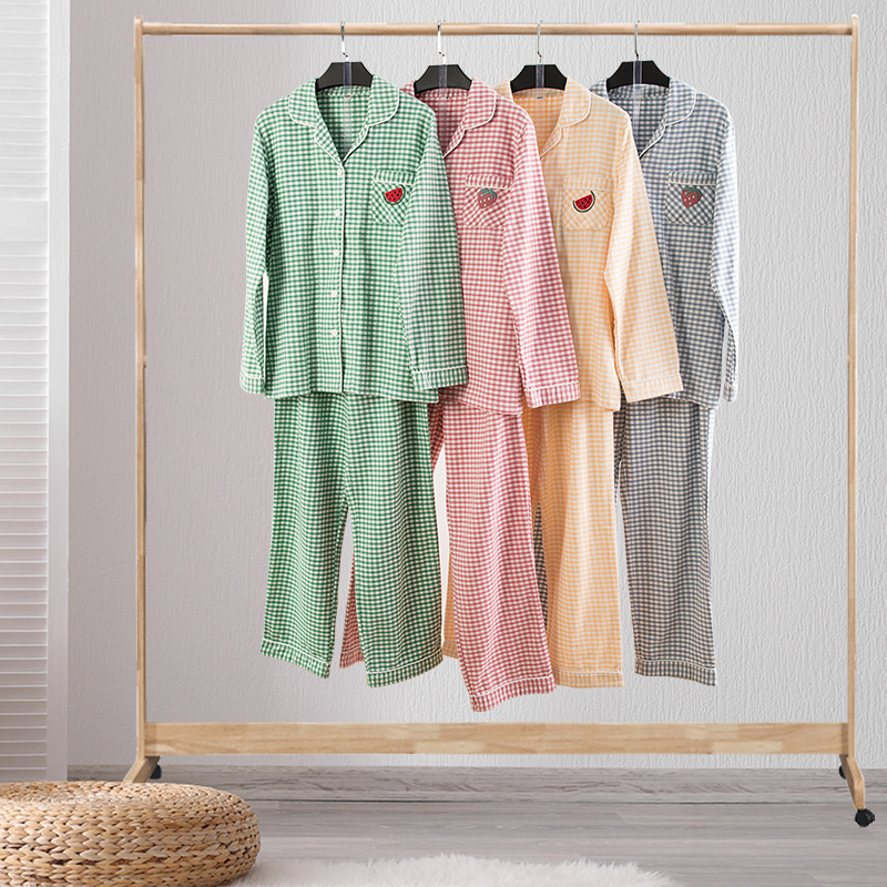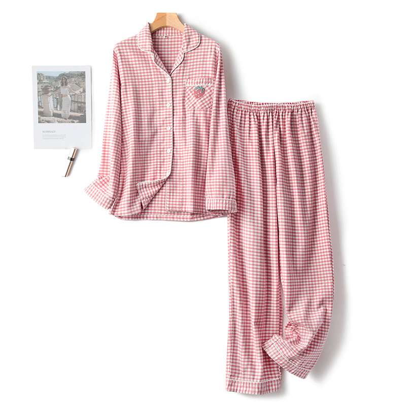 Осенне-зимние женские хлопковые шлифовальные двойной бархат клубника арбуз милые Вышитые пижамы костюм домашняя одежда оптом