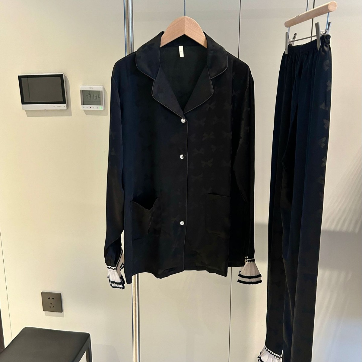 Xiao Xiangfeng весна и осень черный белый тонкий женский домашний симулировочный шелк пижама женский ледяной шелк свободный роскошный европейский и американский