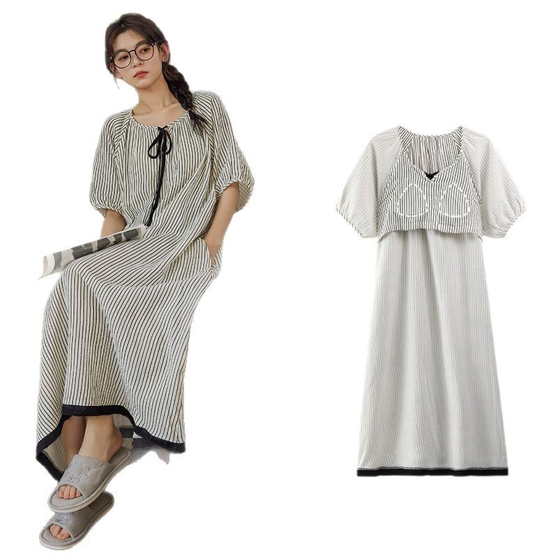 Главная страница > Ночная рубашка с нагрудным ковриком кимоно женская летняя тонкая передняя сладкая пижама с короткими рукавами длинное платье