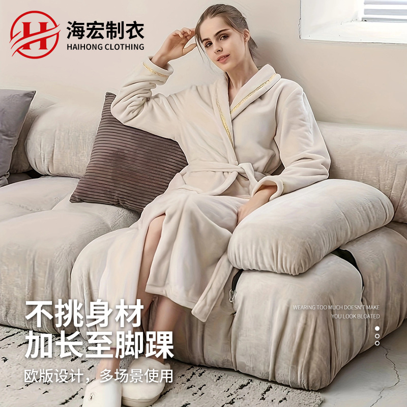 Главная страница > Женский длинный халат для осени и зимы, утолщенный фланелевый халат, теплый длинный халат, домашняя одежда больших размеров для пар.