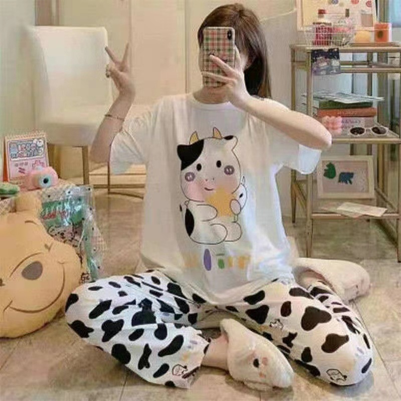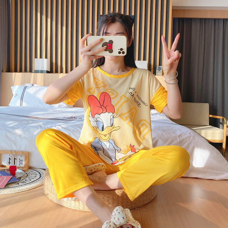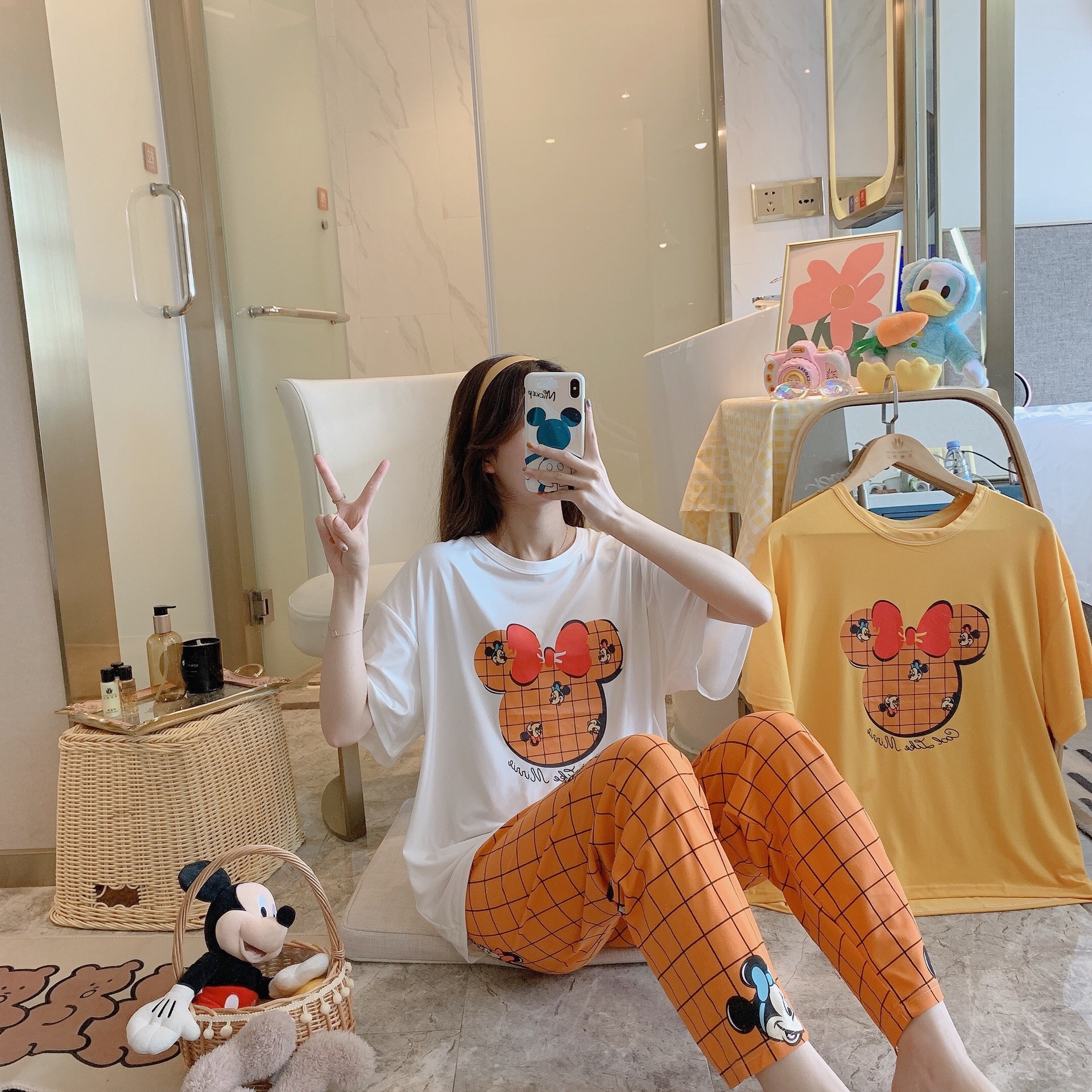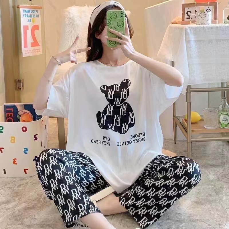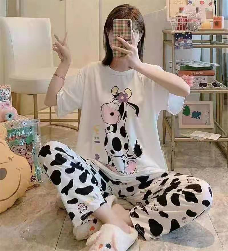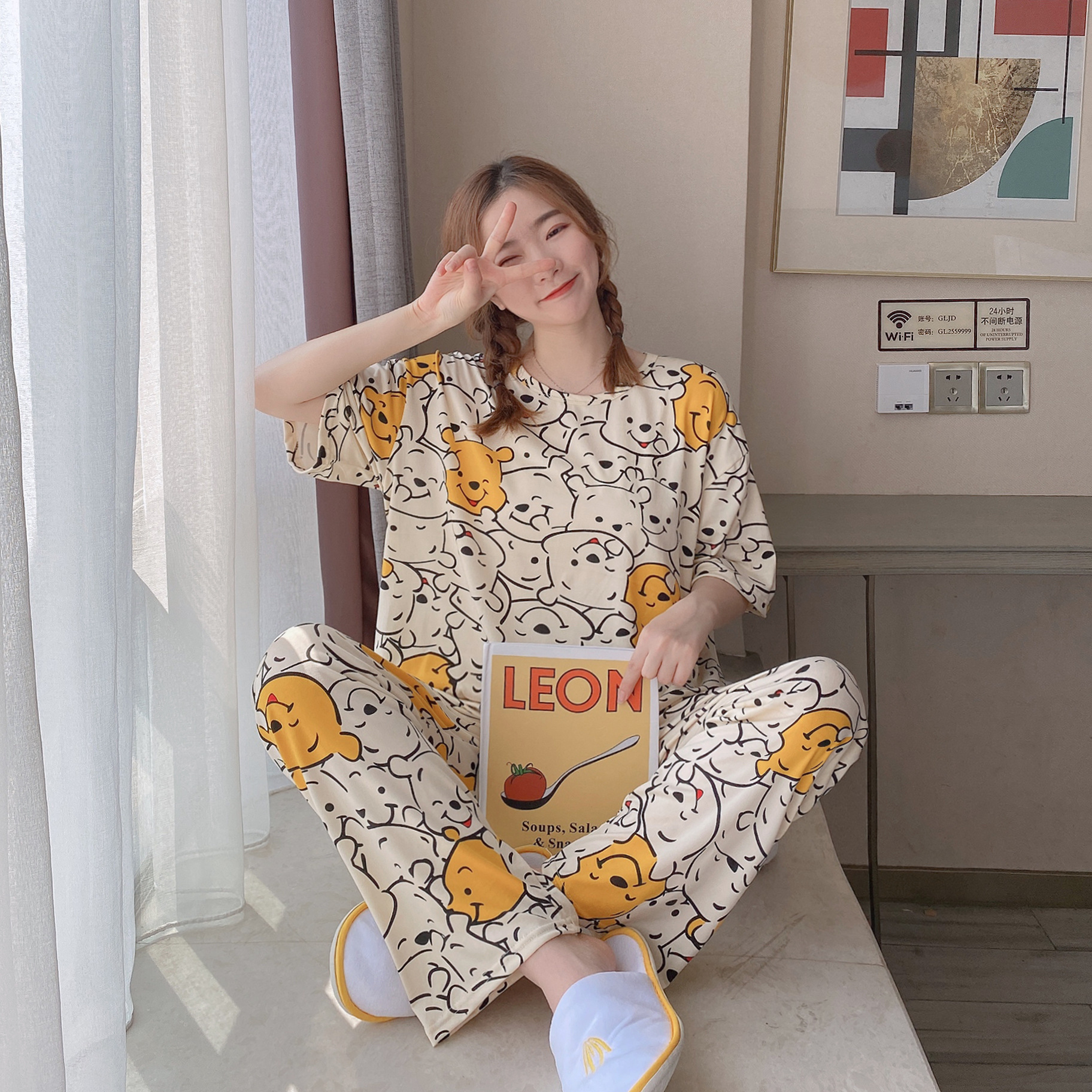 Главная страница > Корейская версия высококачественной пижамы женская весна и осень милая пижама дамы свободная повседневная может носить домашнюю одежду из двух частей
