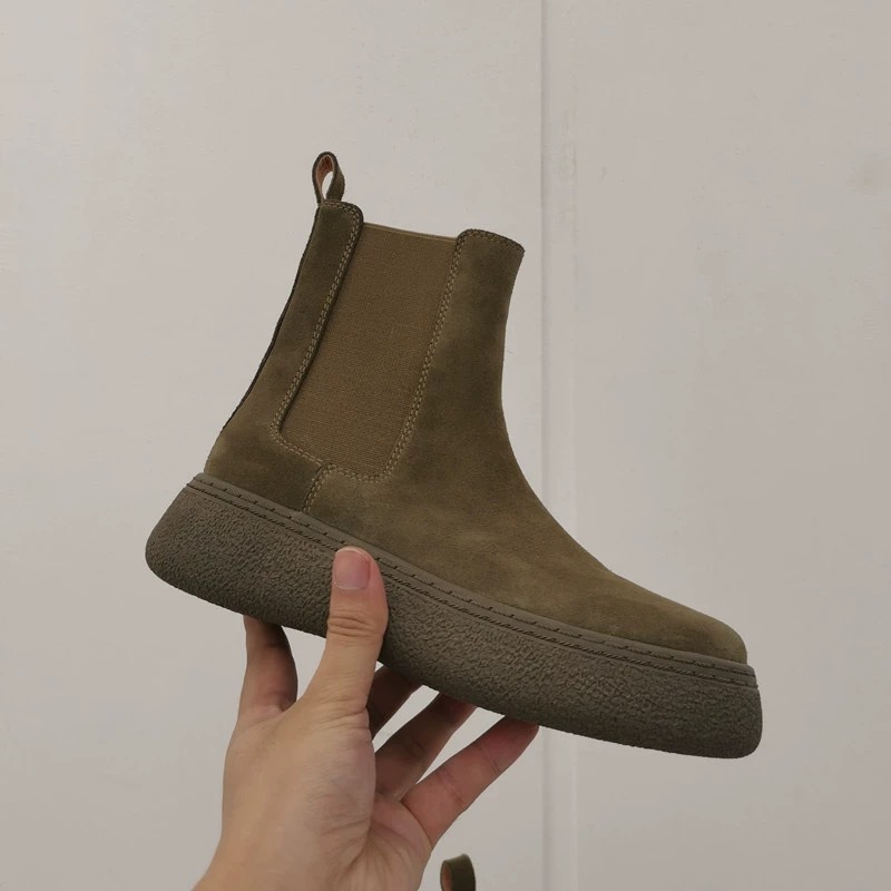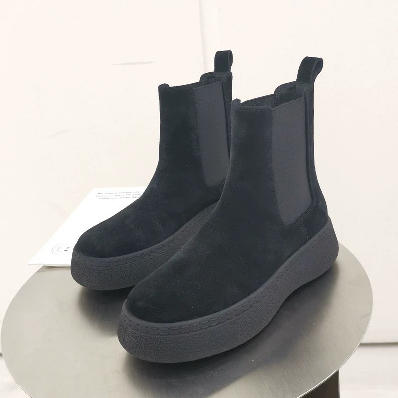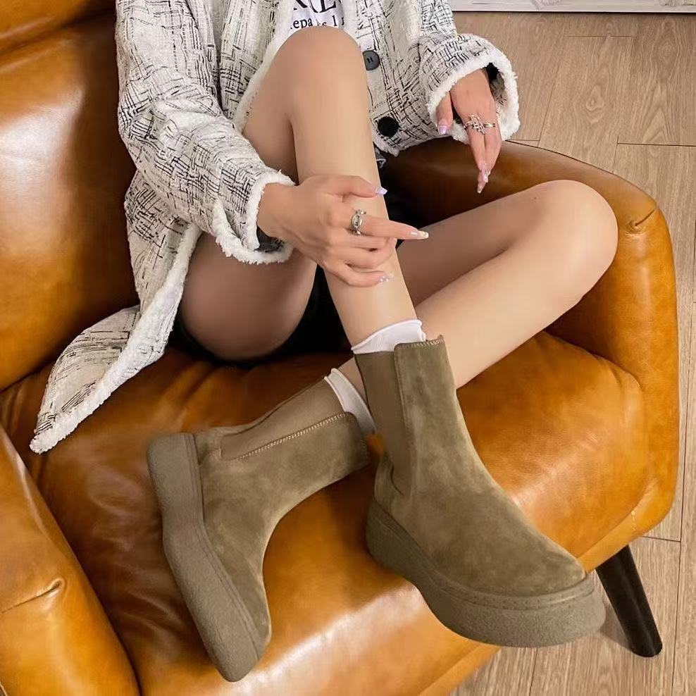 Главная страница > Женские замшевые ботинки на толстой подошве с круглым носком, модные осенне-зимние ботинки челси на среднем каблуке и платформе до середины икры, в корейском стиле, увеличивающие рост