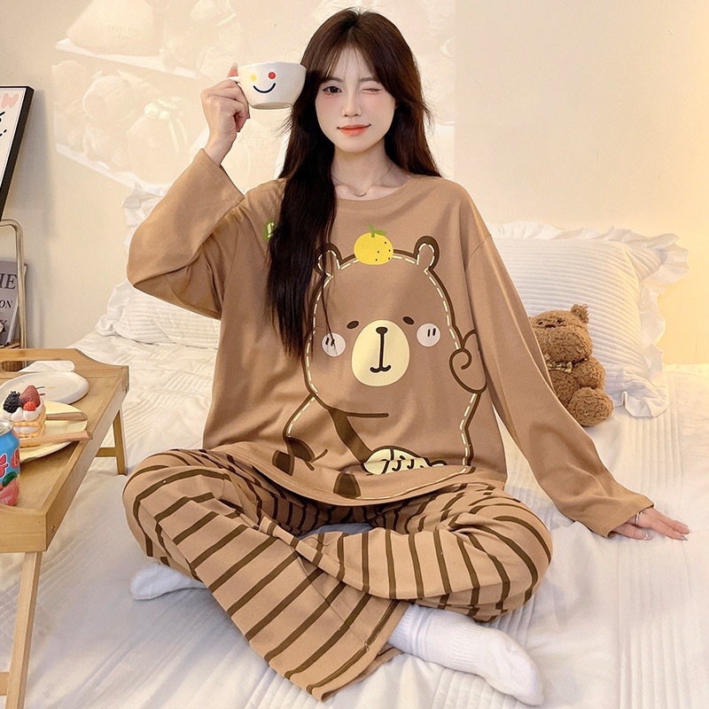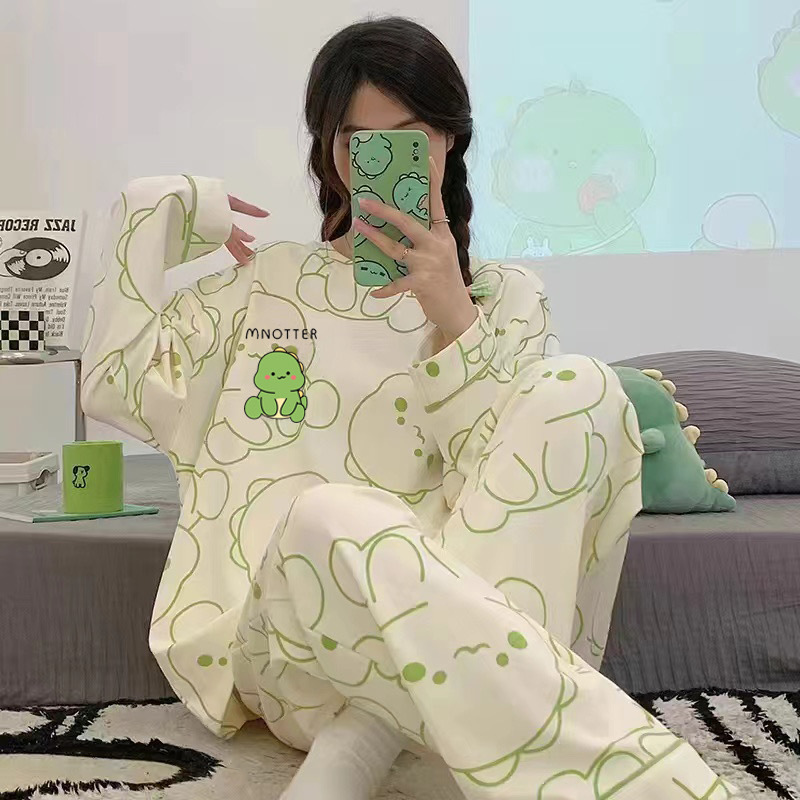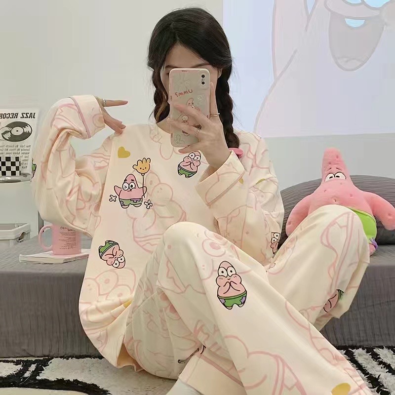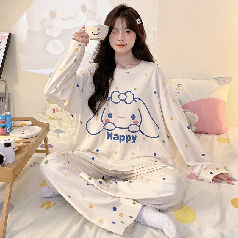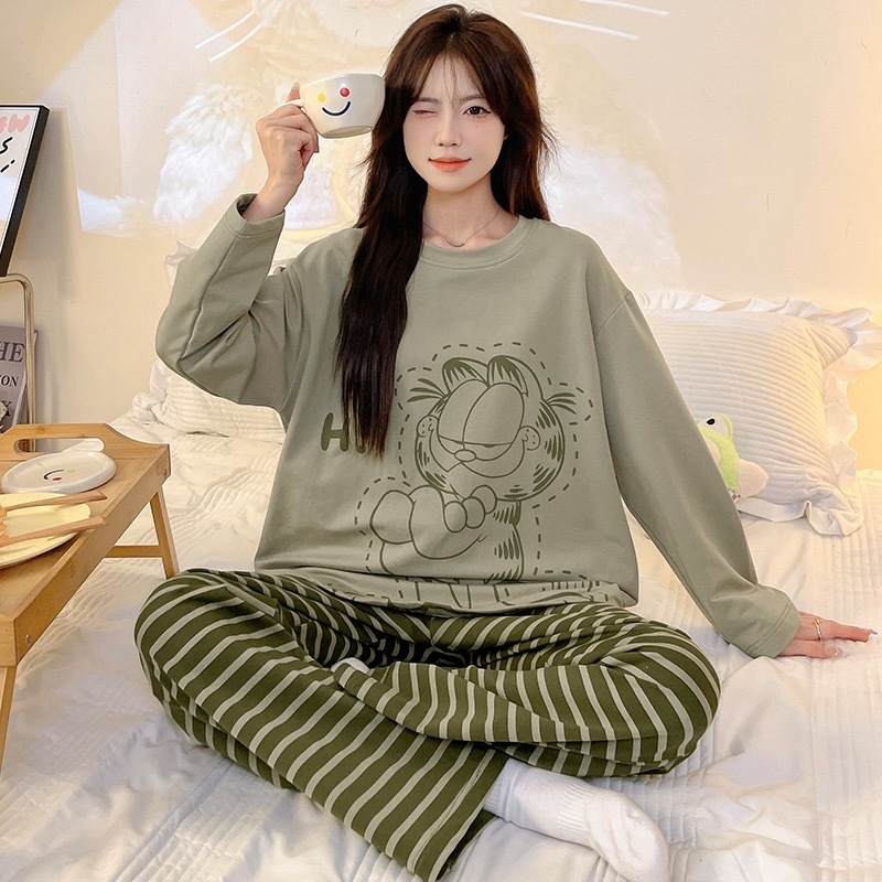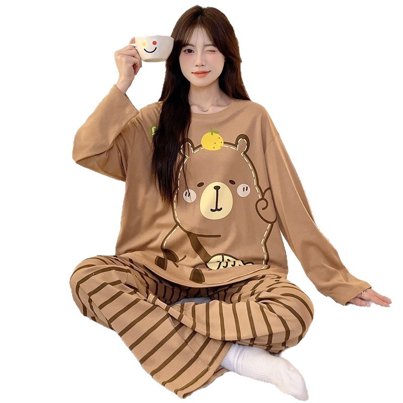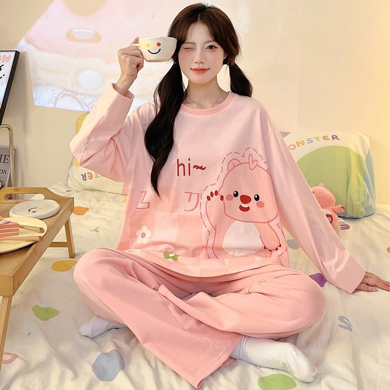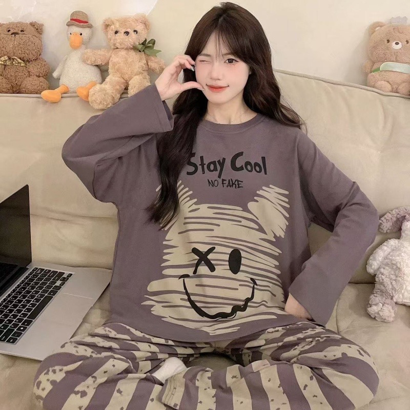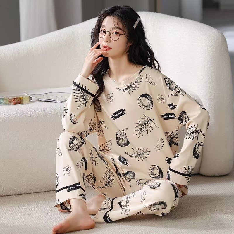 Главная страница > Женский домашний костюм в корейском стиле для весны и осени, имитация хлопка, с круглым вырезом, длинными рукавами и длинными брюками, комплект из двух предметов, можно носить и на улице.