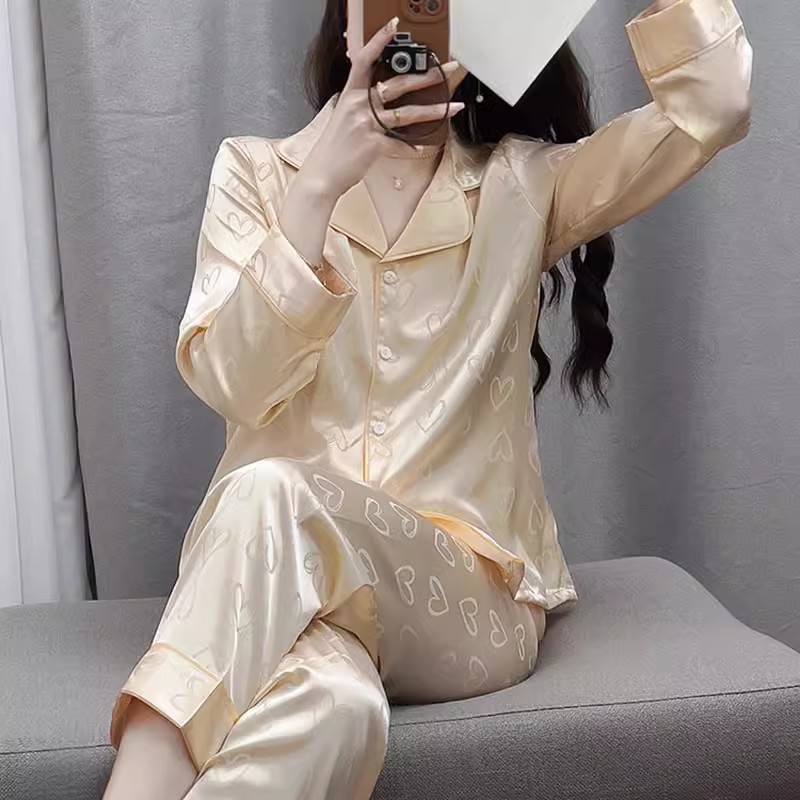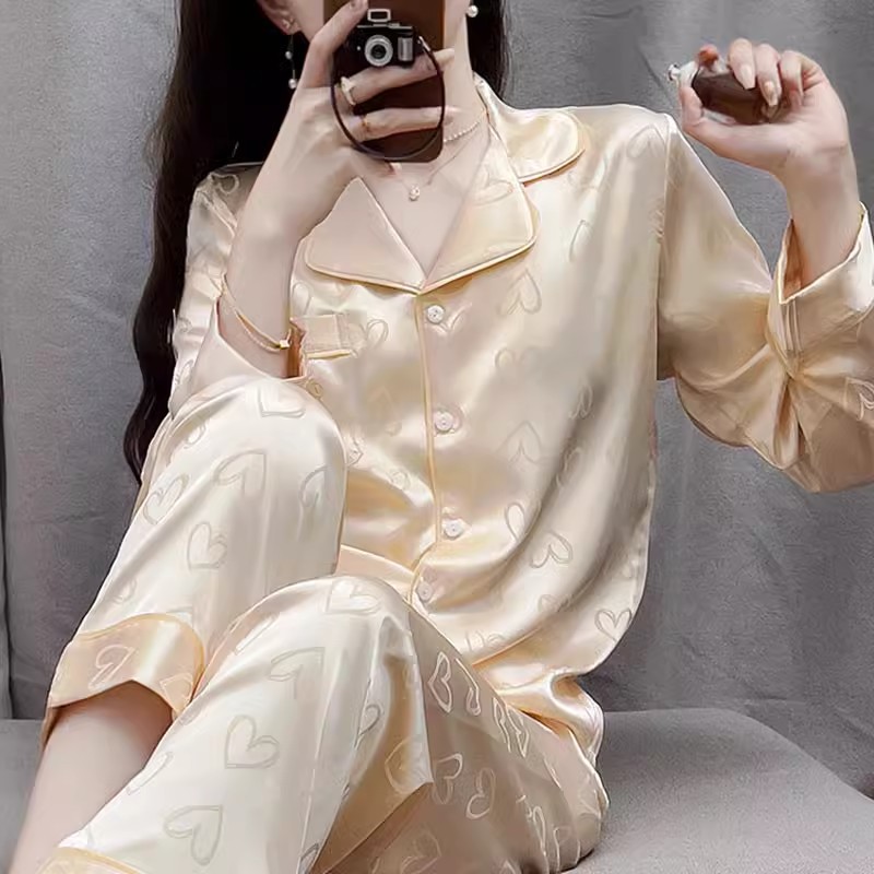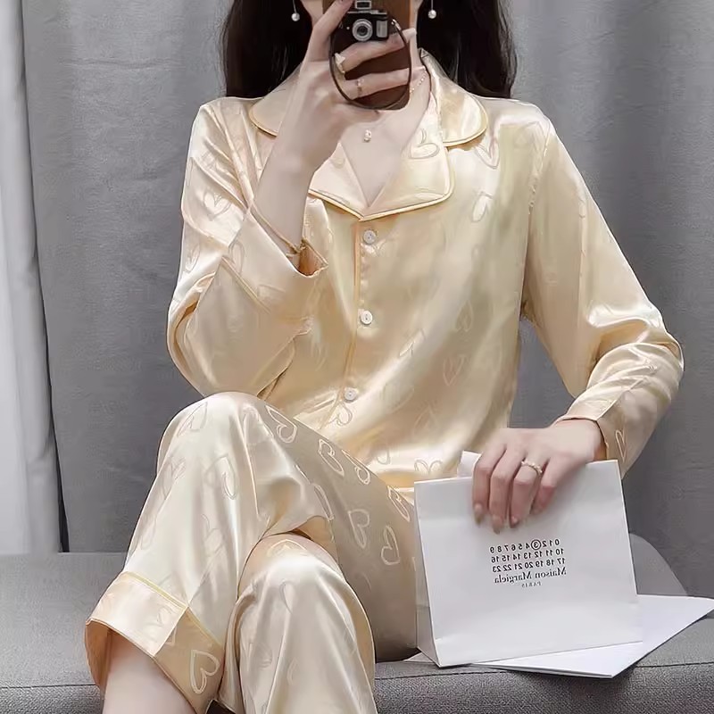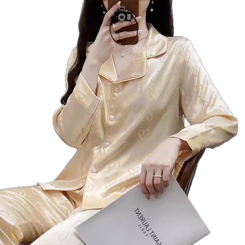 Главная страница > Пижама женщина 2025 новая осень весна лето тонкий ледяной шелк любящий продвинутый смысл длинные рукава брюки домашние костюмы