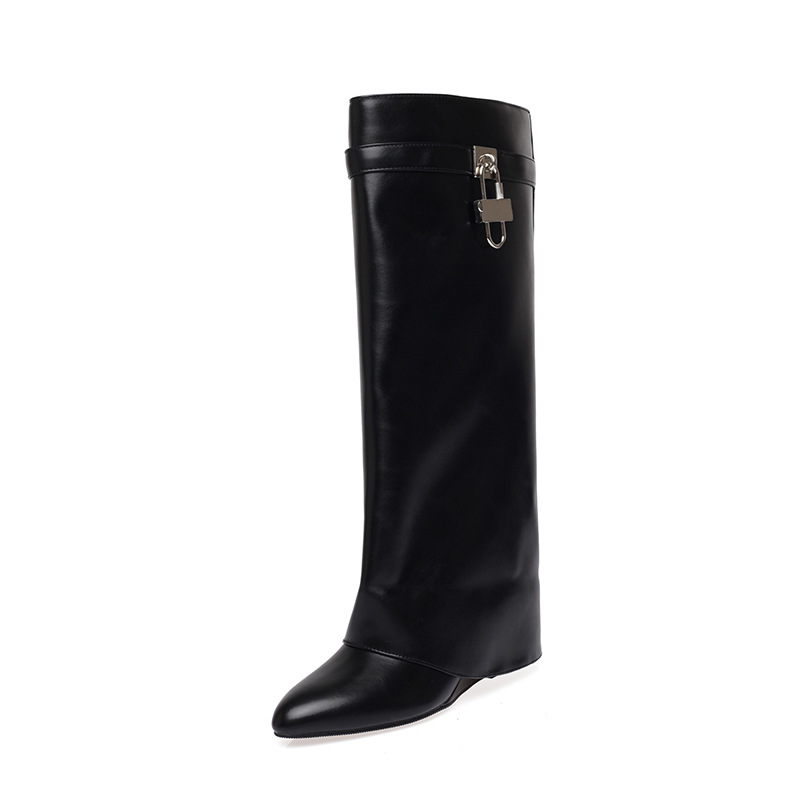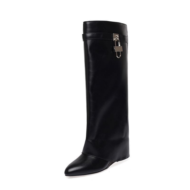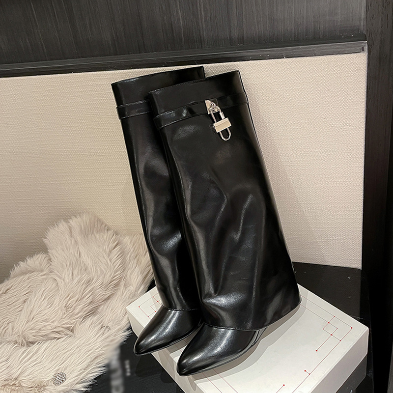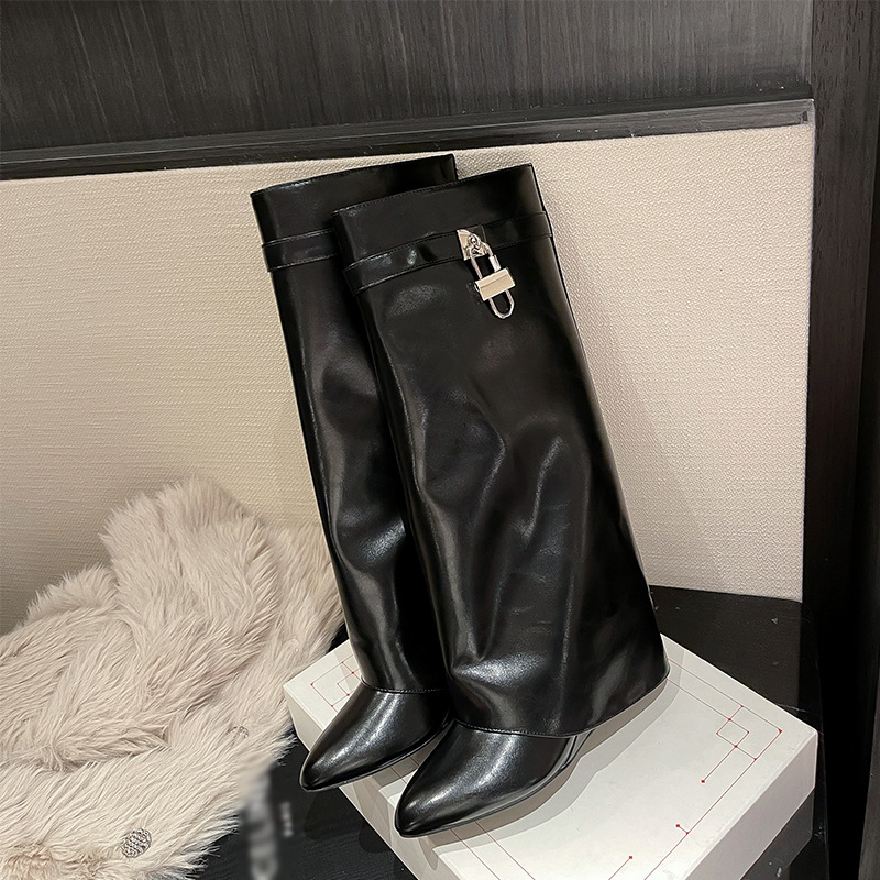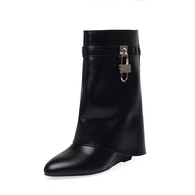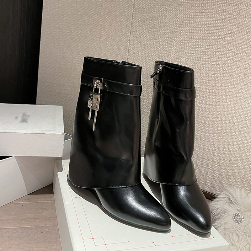 Главная страница > Ботинки с заостренным носком и манжетами, 2025, новый европейский и американский стиль, высокие рыцарские ботинки в стиле "акула", черные короткие модные ботинки до щиколотки для женщин.