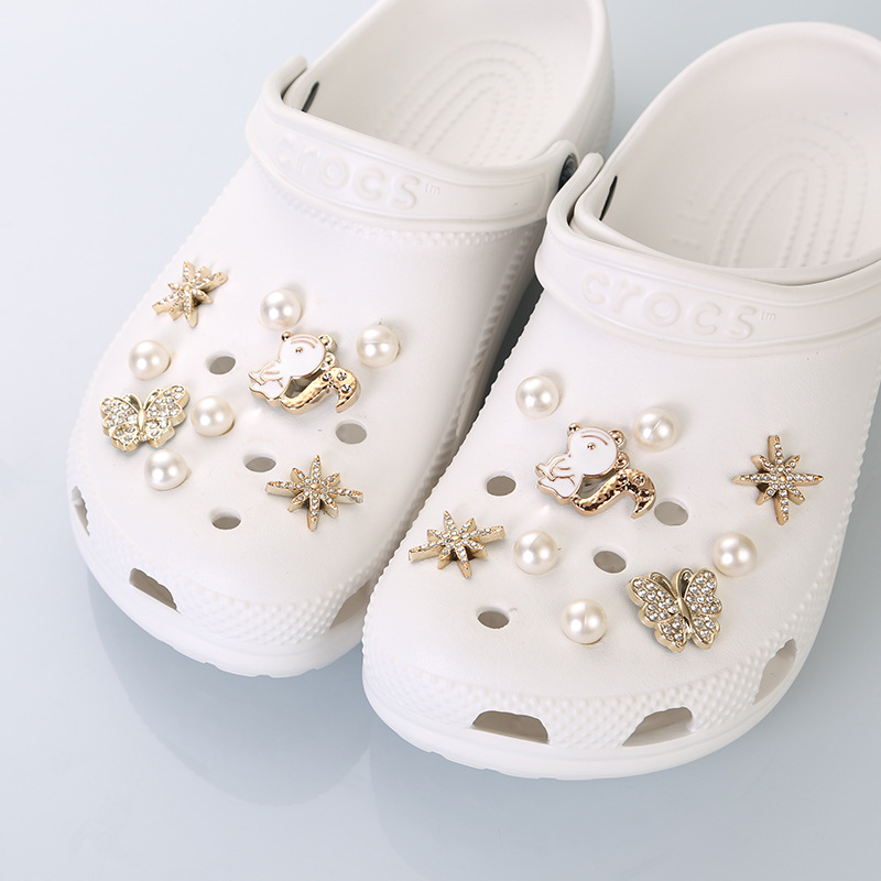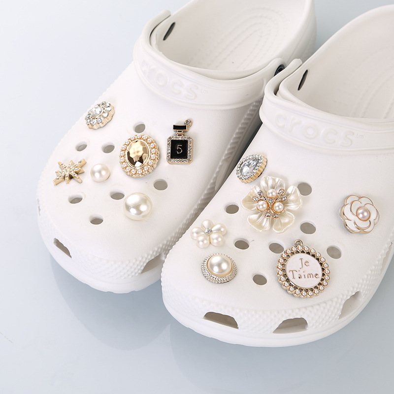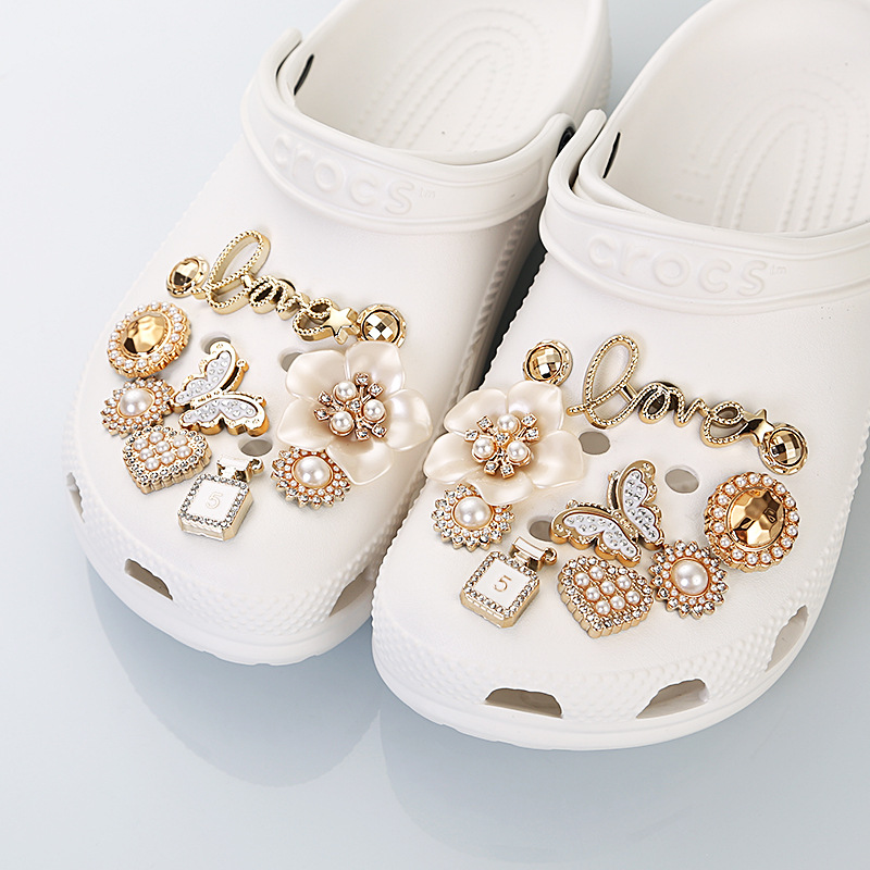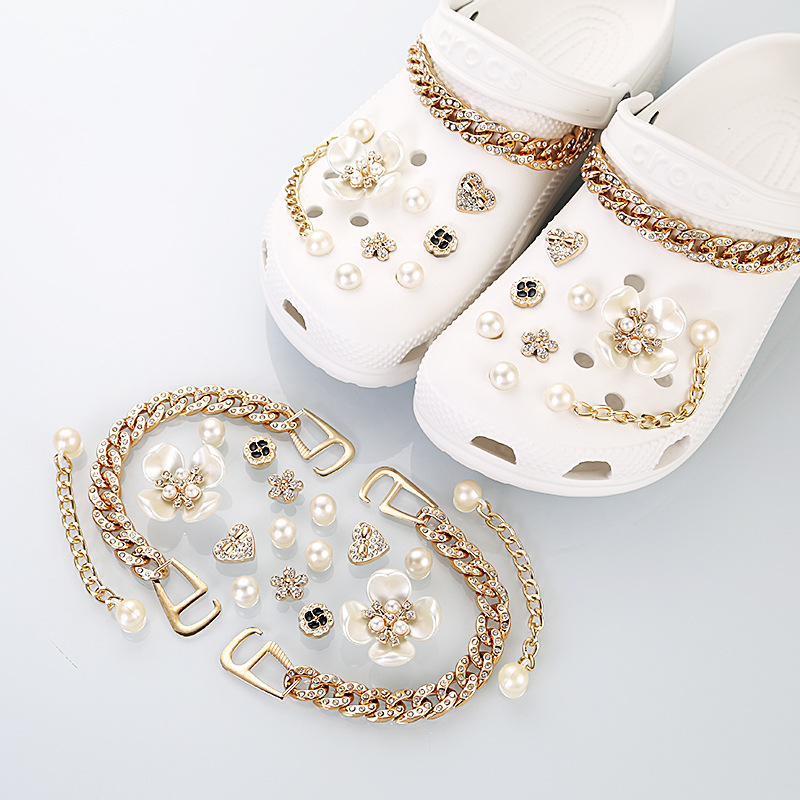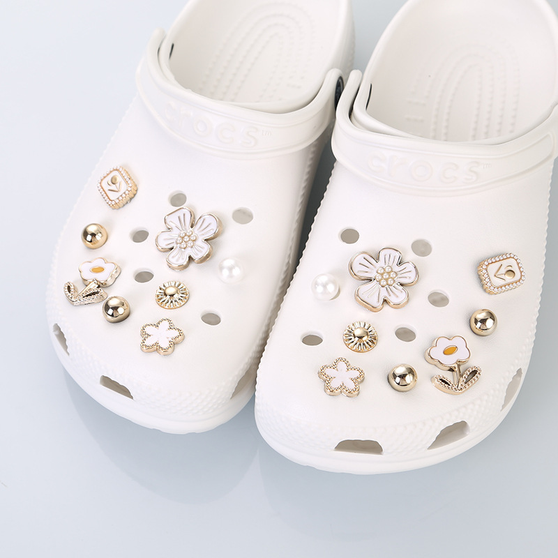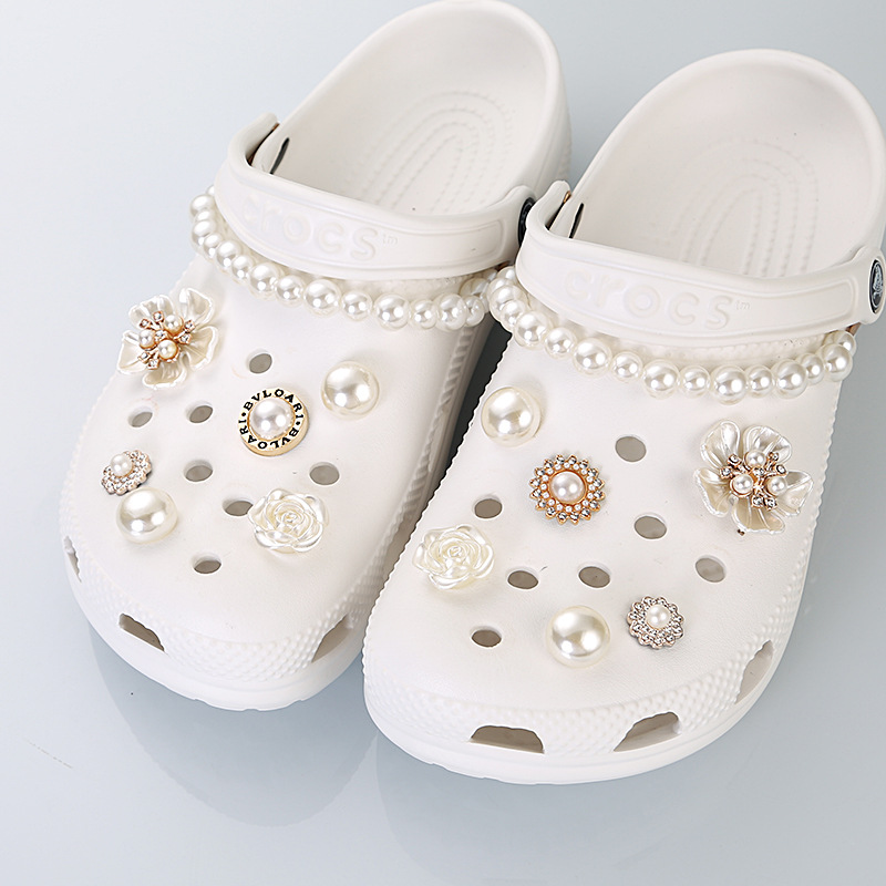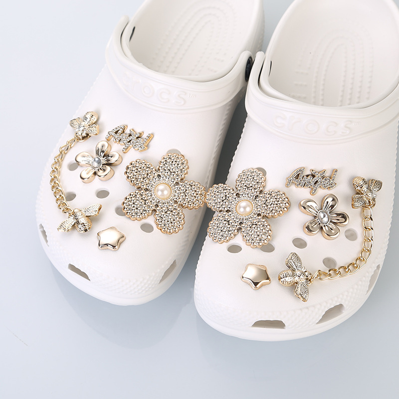Главная страница > Обувь Croc с цветочным узором, золотым стерео жемчугом, съемные аксессуары «сделай сам», мультяшная пряжка для обуви, подходит для кроссовок с цветком
