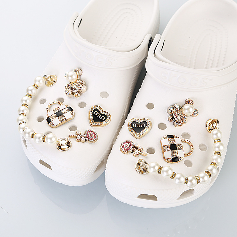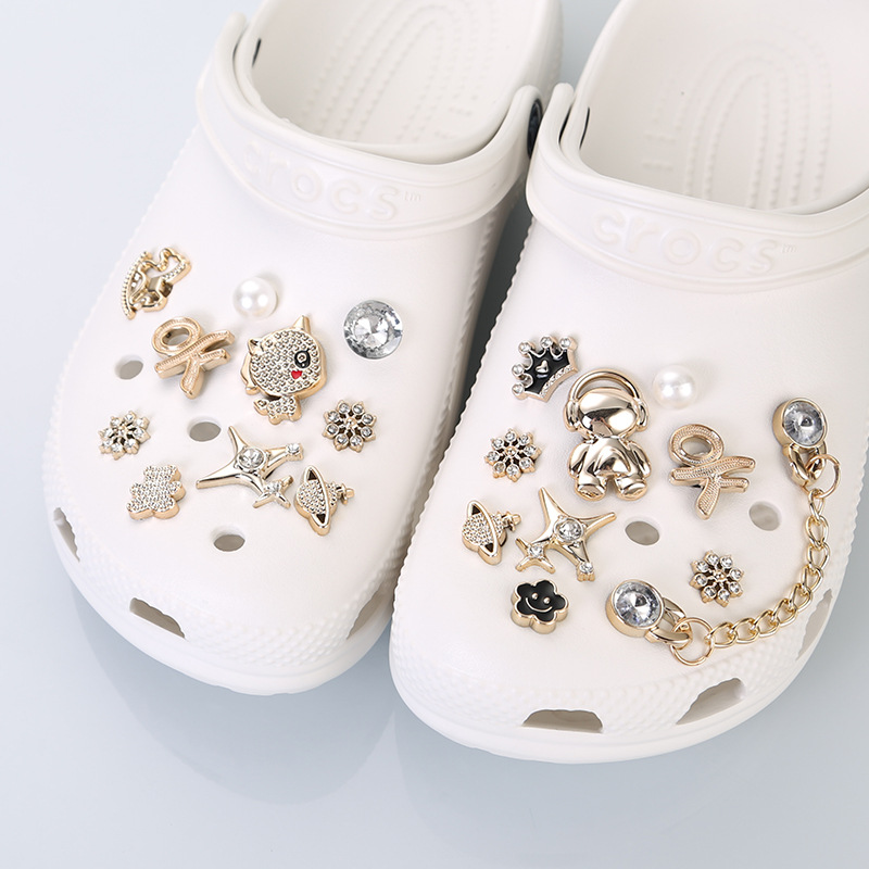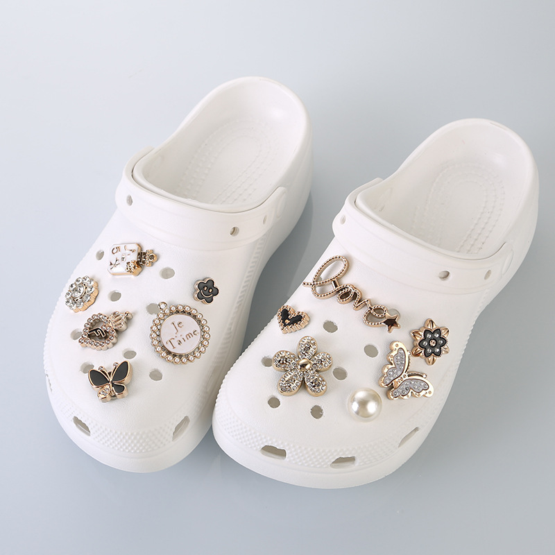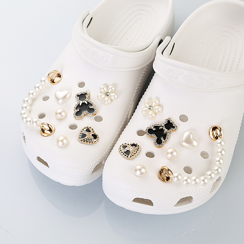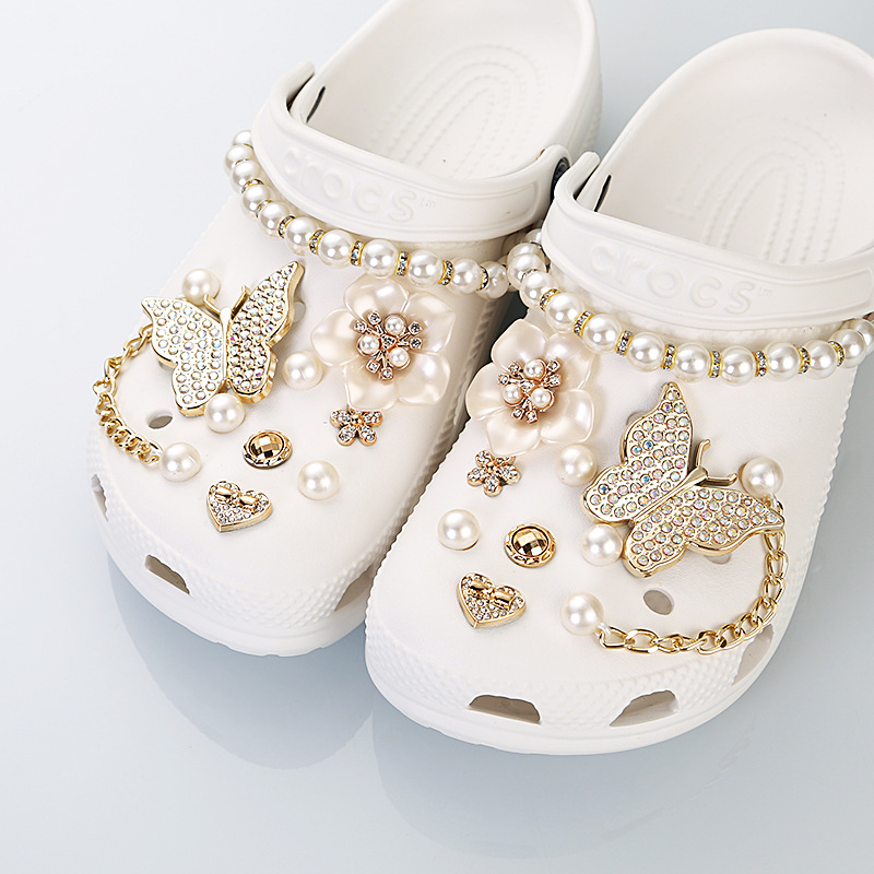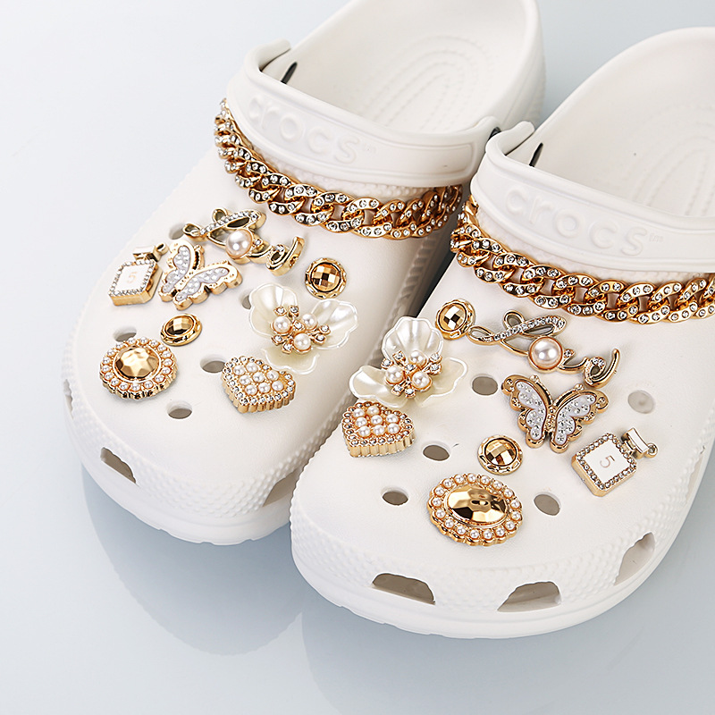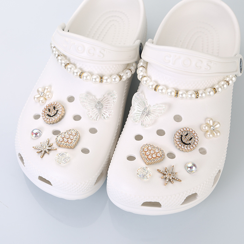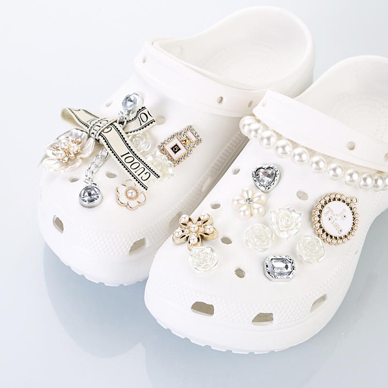 Главная страница > Обувь Croc с цветочным узором, золотым стерео жемчугом, съемные аксессуары «сделай сам», мультяшная пряжка для обуви, подходит для кроссовок с цветком