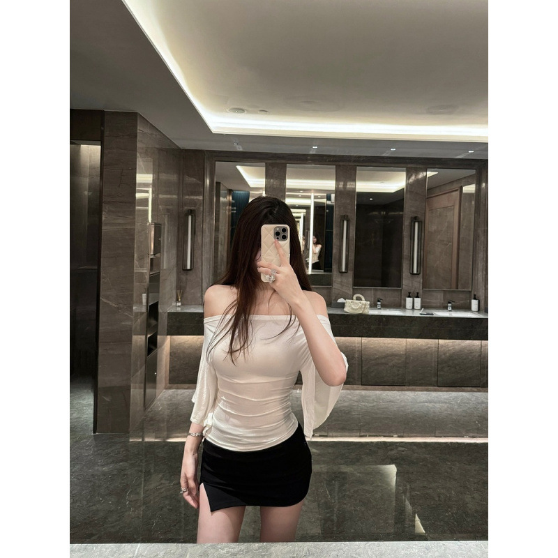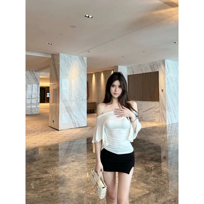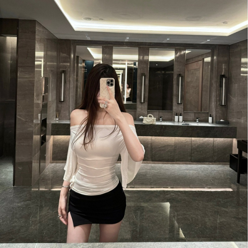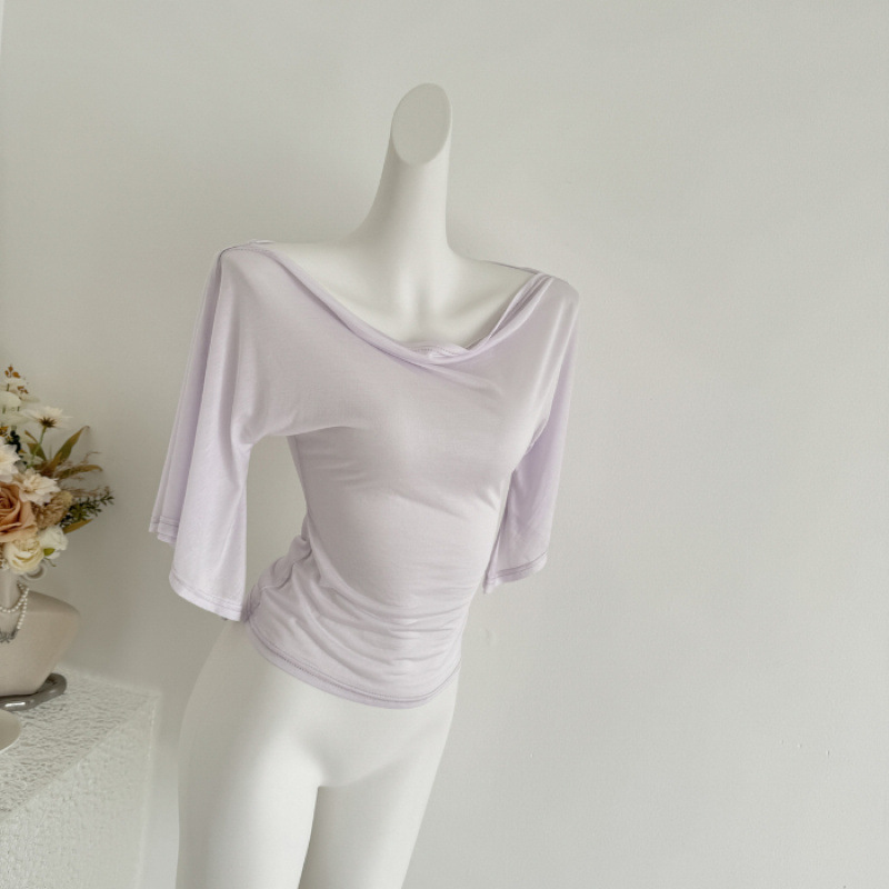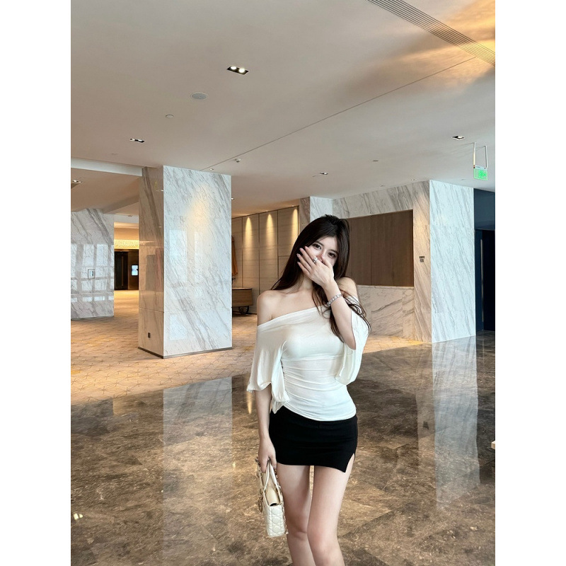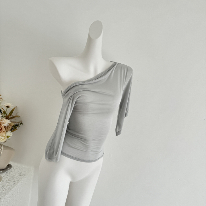 Главная страница > Женская футболка с открытыми плечами из льняного лиоцелла, новая нишевая дизайнерская футболка для похудения, белая футболка для горячих девушек