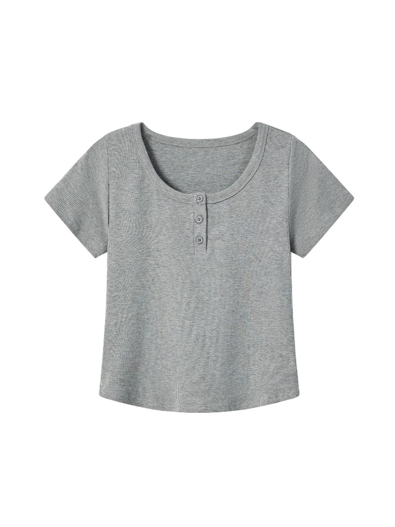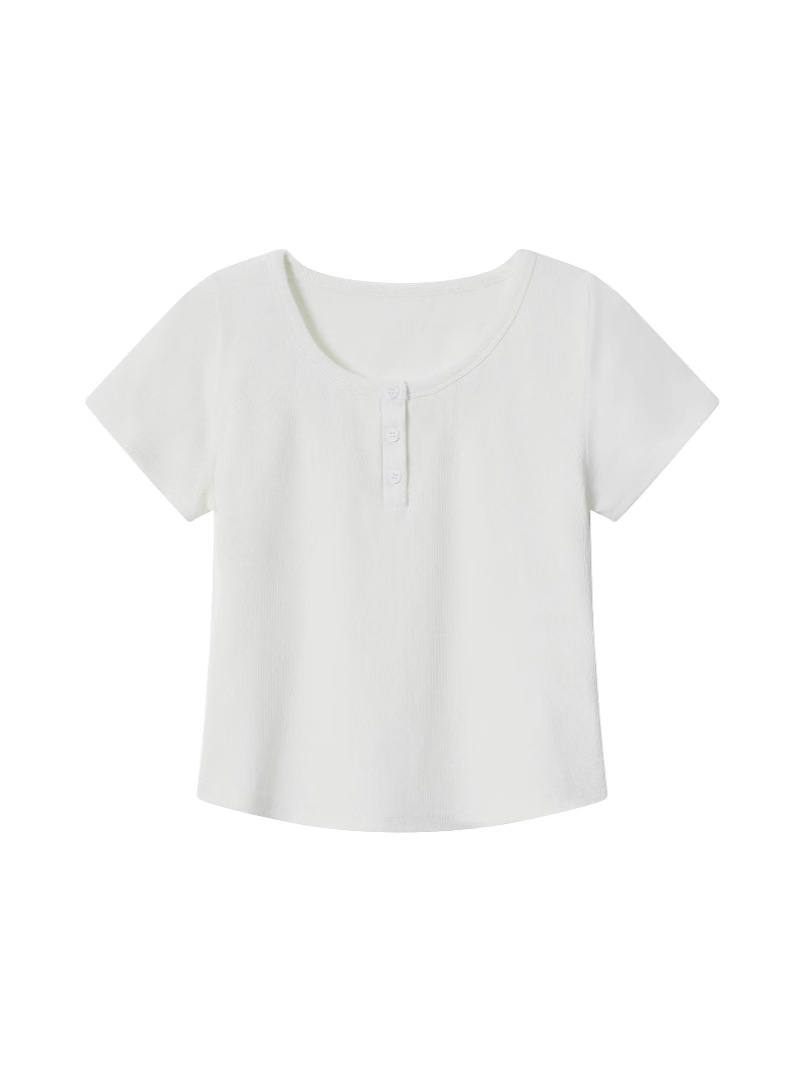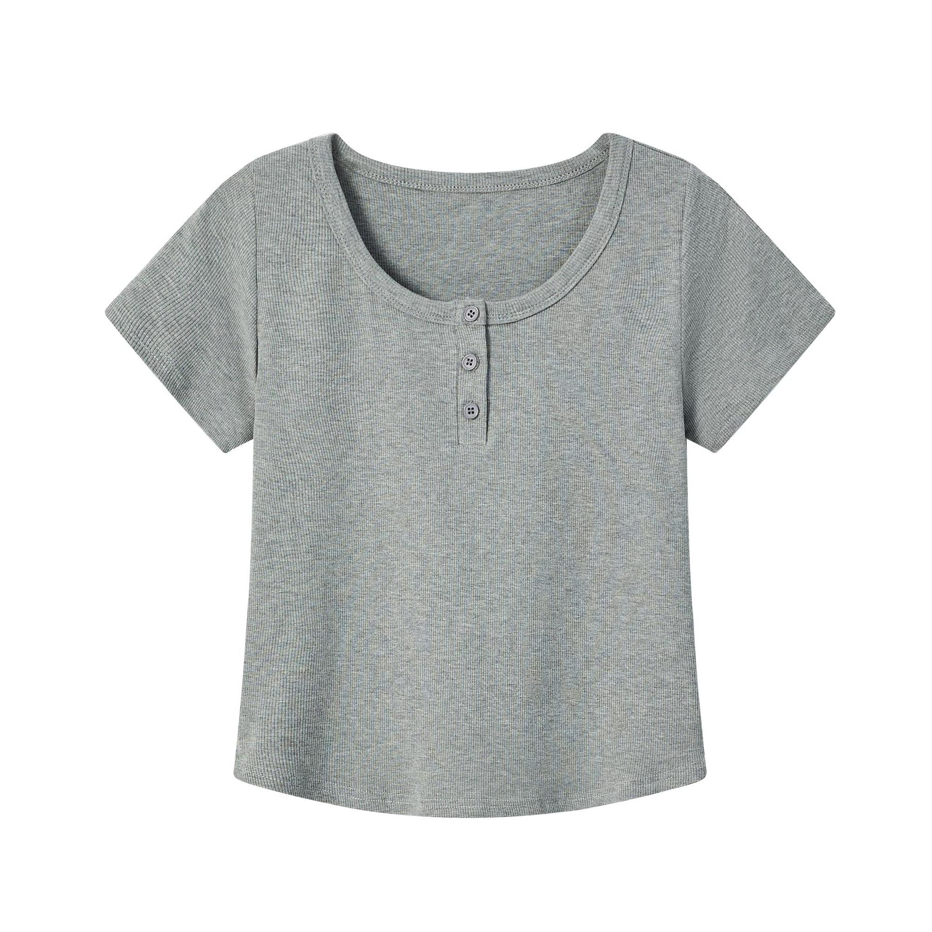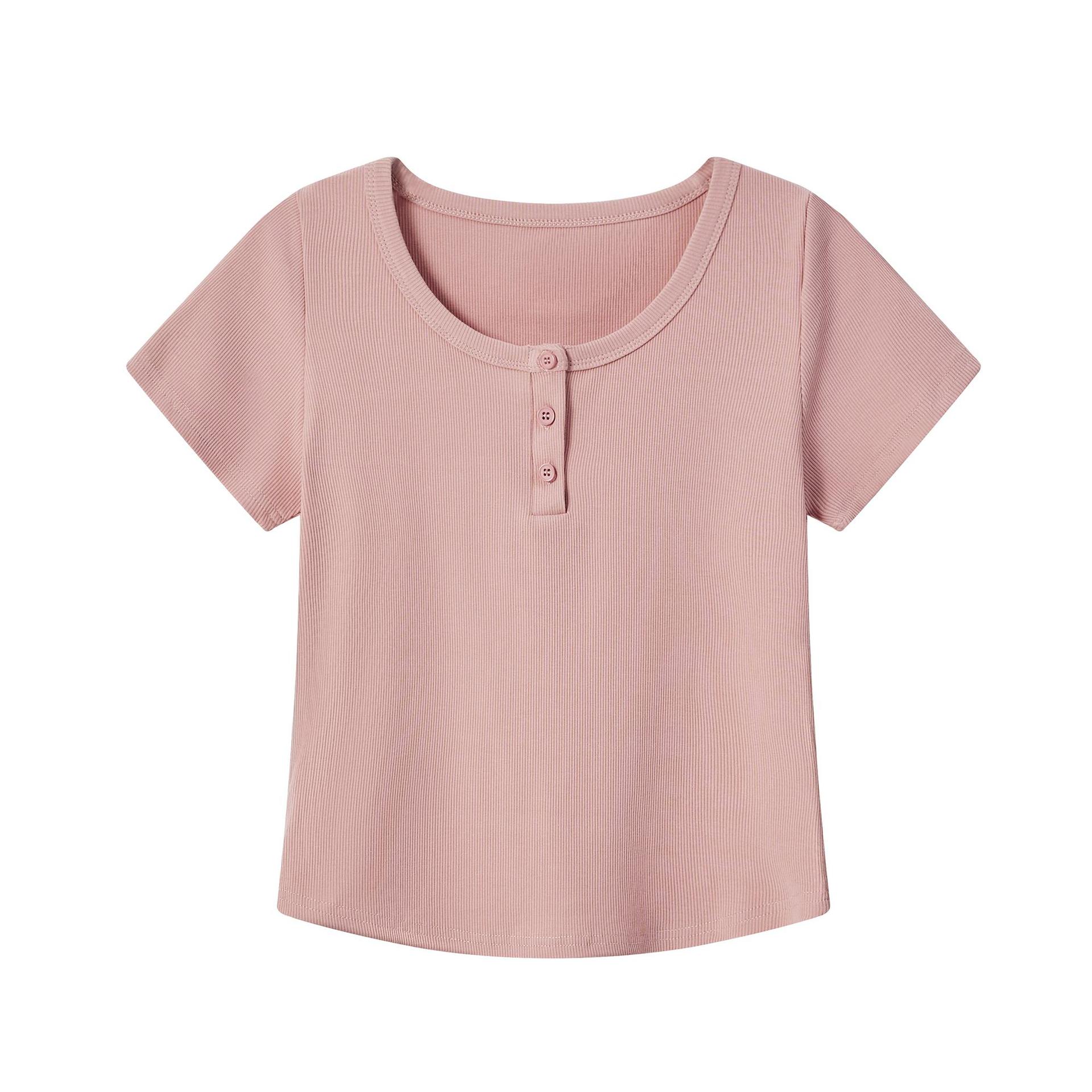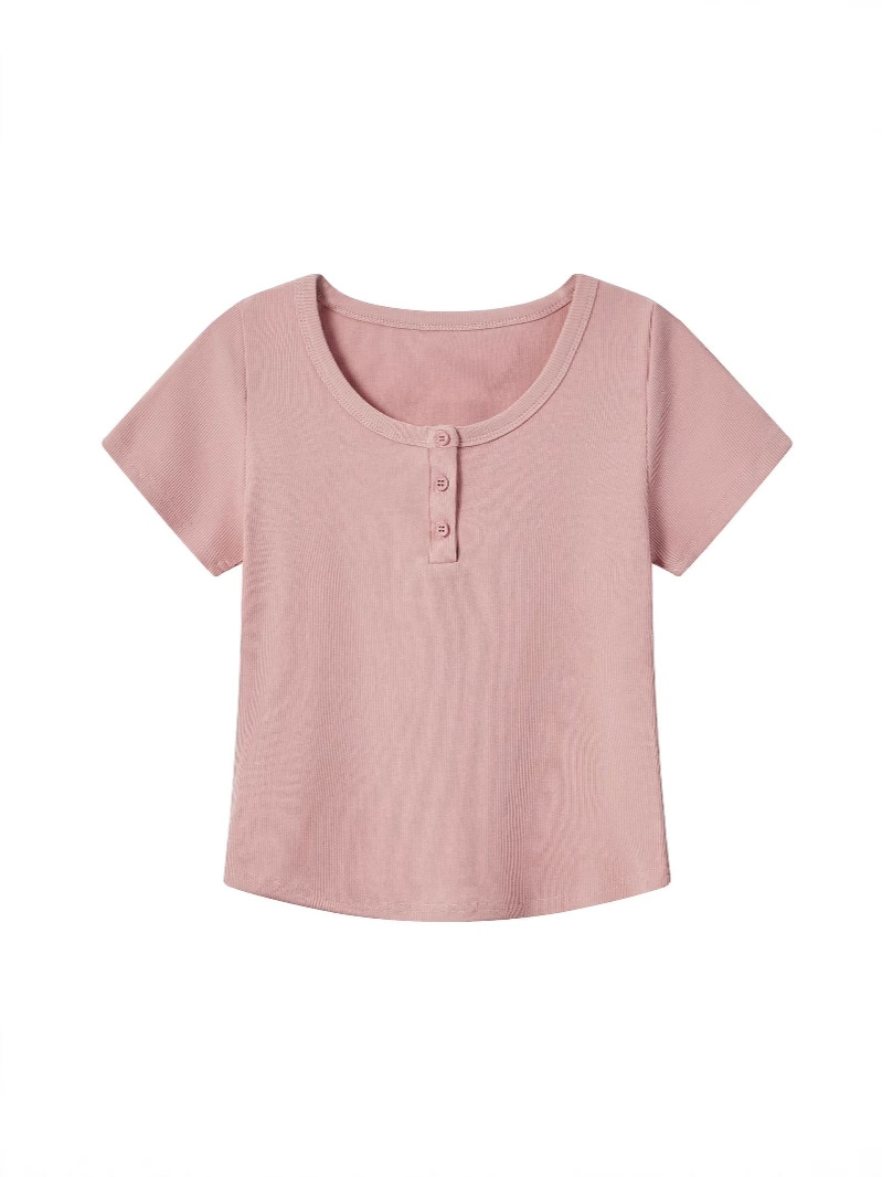 Главная страница > 2025 новая летняя футболка женская с коротким рукавом модная универсальная облегающая однотонная футболка с пуговицами