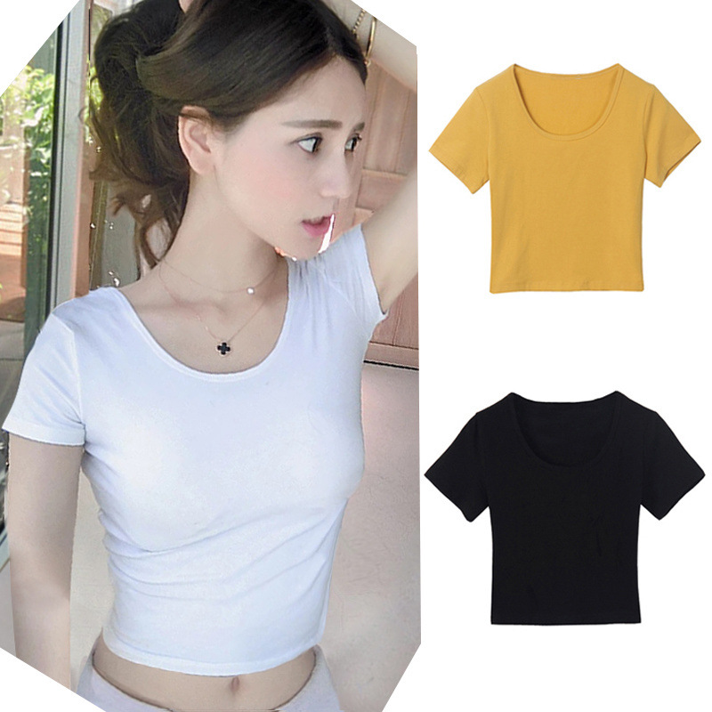 Главная страница > Летняя женская короткая футболка из 95% хлопка, студенческий белый топ с короткими рукавами, облегающий, облегающий, обнажающий пупок, новый стиль, обнажающий талию