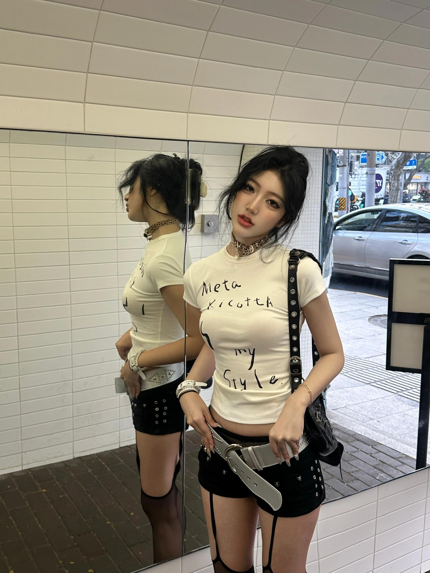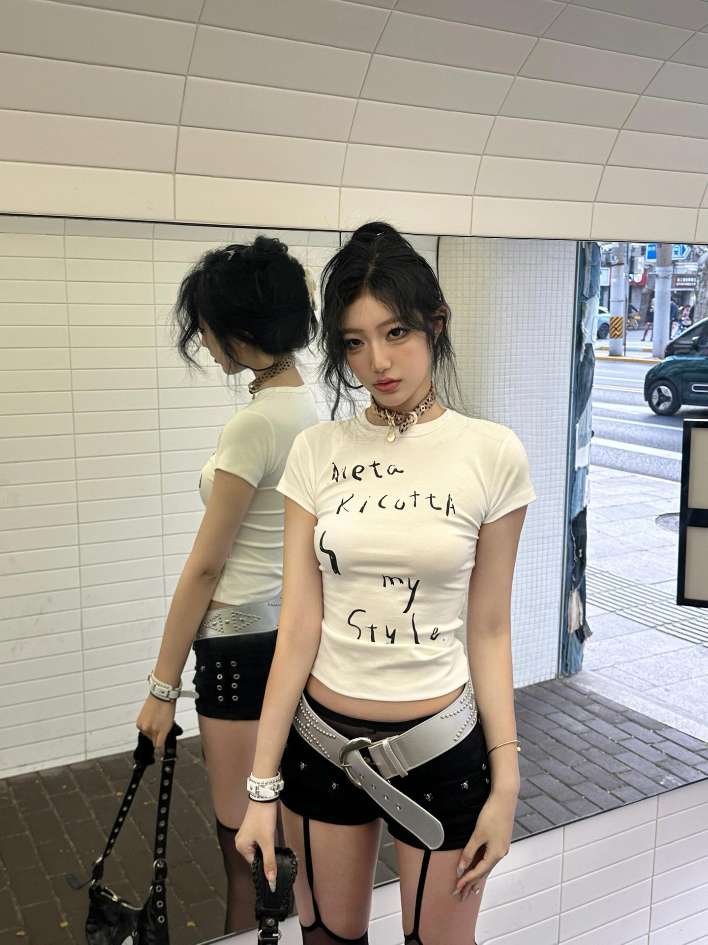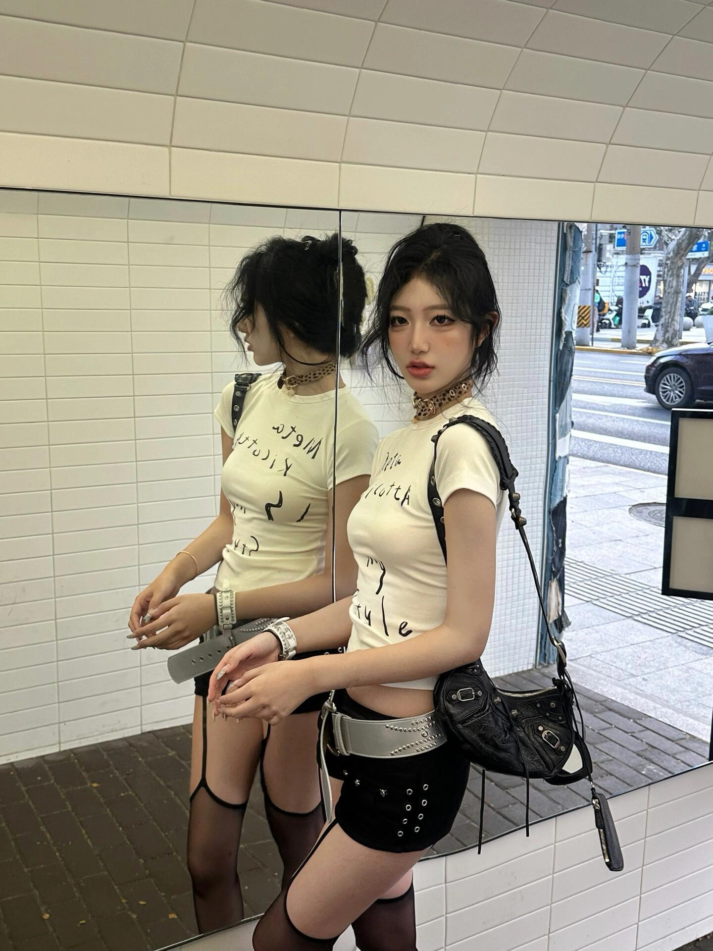 Главная страница > [40 шт 210 г Odale 95% хлопок 5% спандекс воротник] Тонкий, тонкое плечо с короткими рукавами футболка короткая женщина