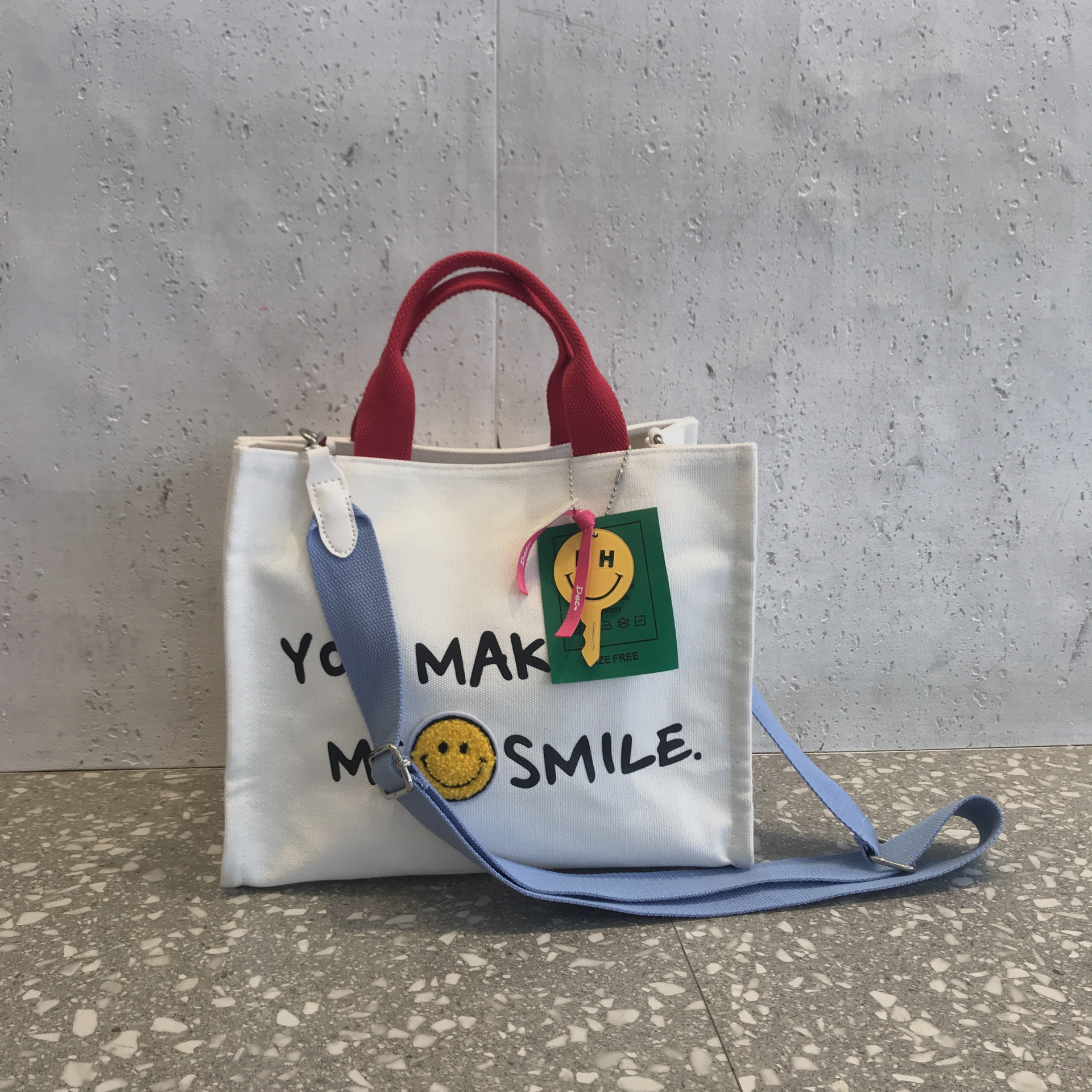 Главная страница > Ты заставляешь меня улыбаться Новый 2021 улыбка плюшевый узор утолщенный органический холст Портативная сумка через плечо