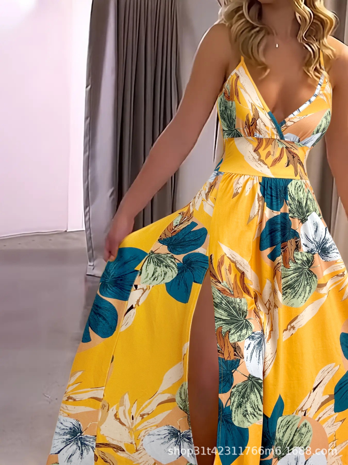 Трансграничная Amazon Fashion Foreign Trade Women 2023 Летняя подтяжка V-образный вырез Задняя шнуровка Длинное платье