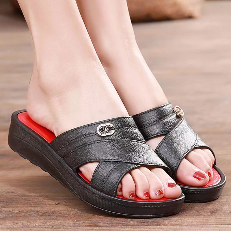 Главная страница > Фабричные прямые тапочки на среднем каблуке, женская летняя одежда, модные Нескользящие износостойкие сандалии на толстой подошве, оптовая продажа, новое Домашнее использование