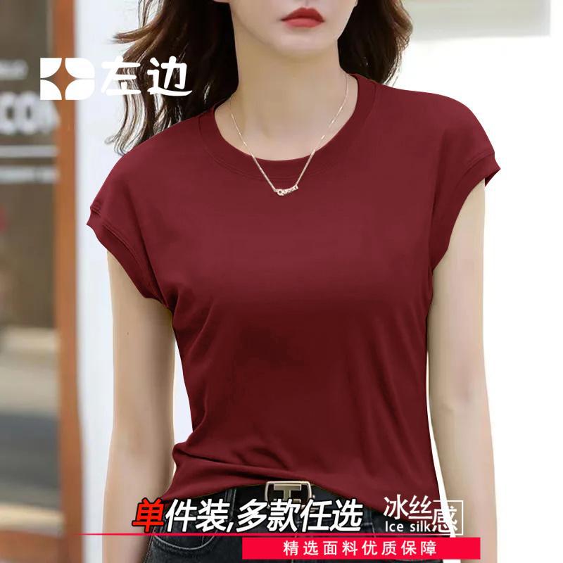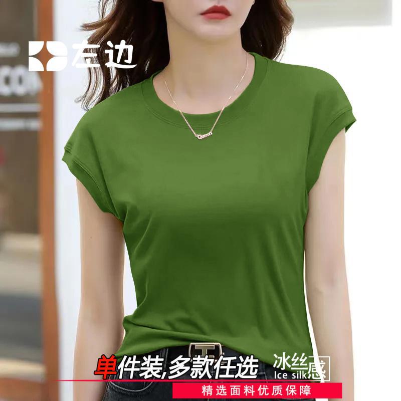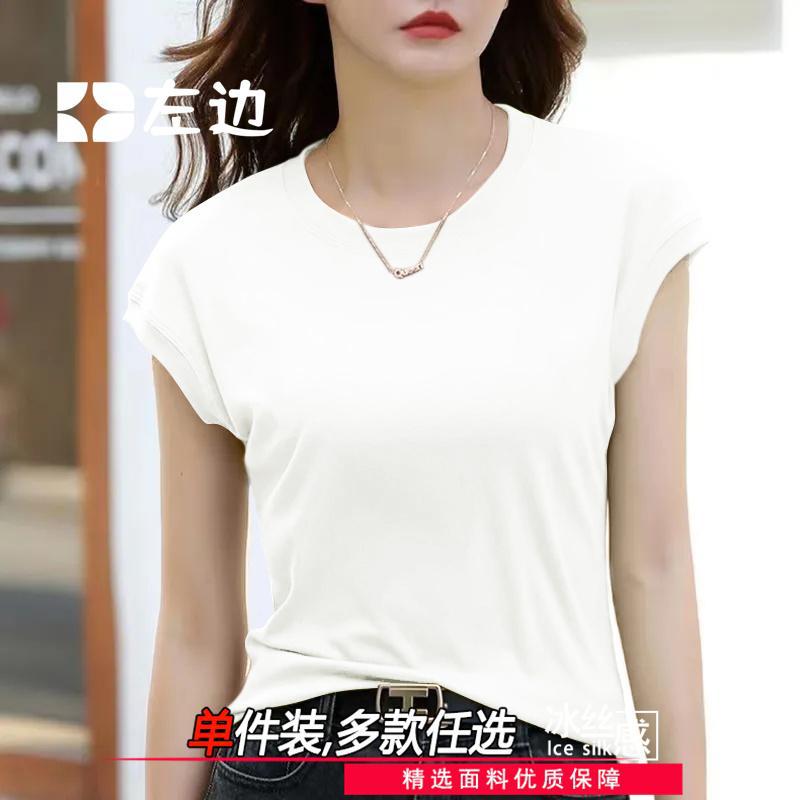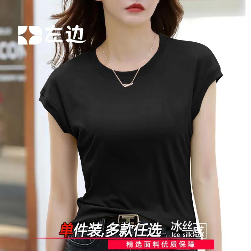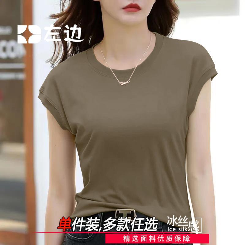 Главная страница > Футболка с летающими рукавами женская рубашка с короткими рукавами летнее новое чувство дизайна нишевые модные тонкие круглые шею ледяной высококачественный шелковый нитчатый топ