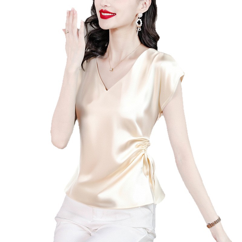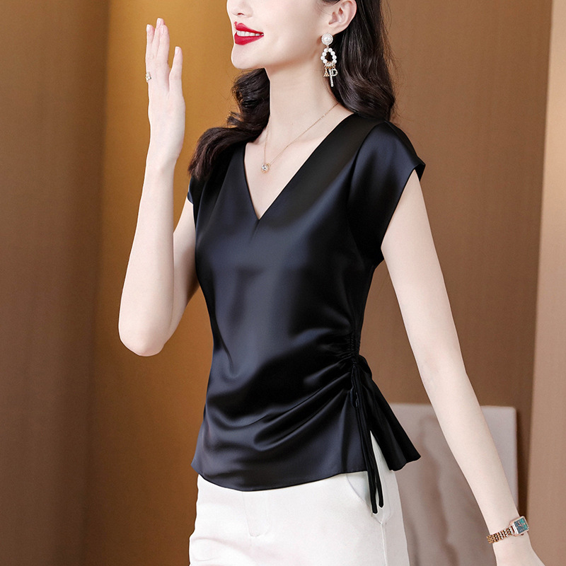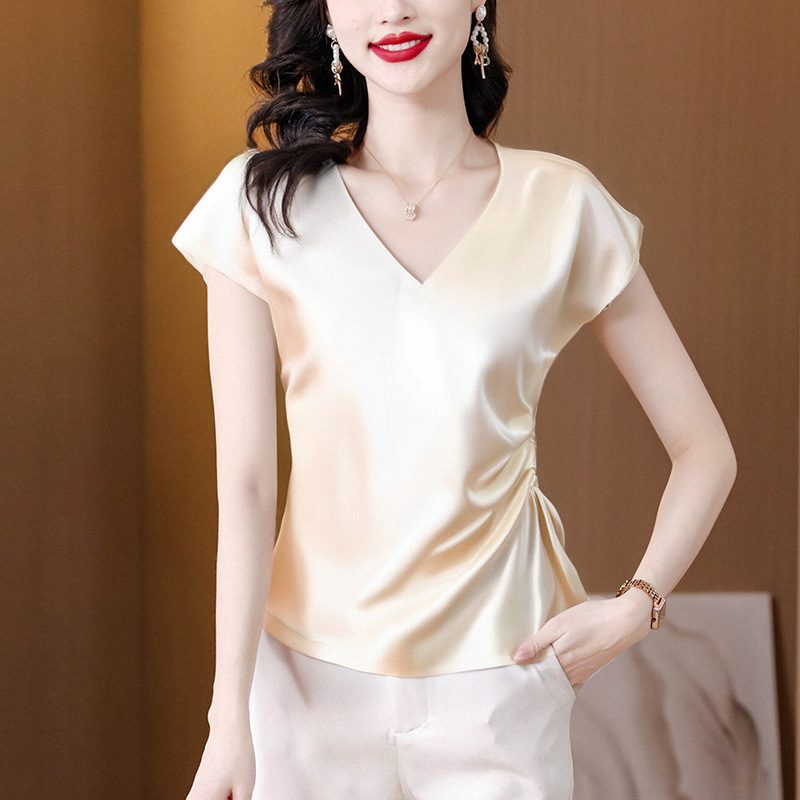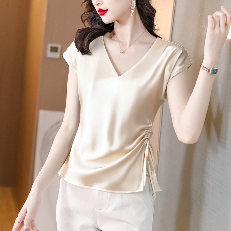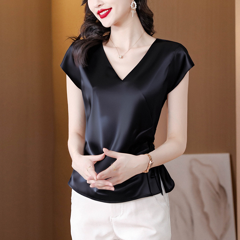 Главная страница > Настоящий дизайн, свободная элегантная рубашка с v-образным вырезом, топы, женские шикарные рубашки с короткими рукавами и стильные футболки