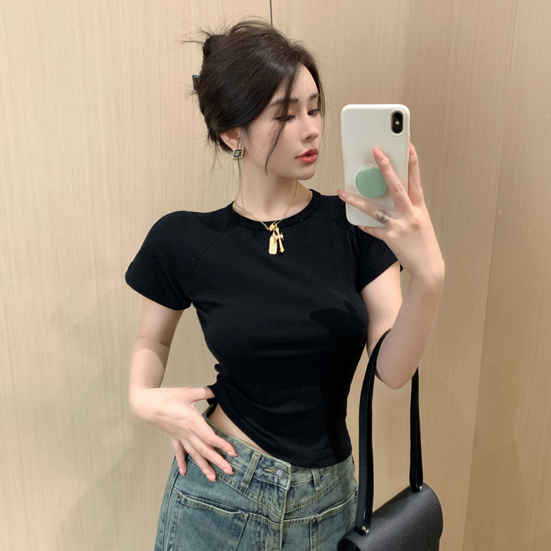 Реалистическая хлопковая короткая футболка женская короткая рубашка с короткими рукавами
