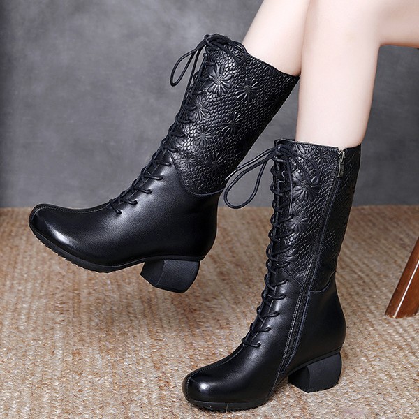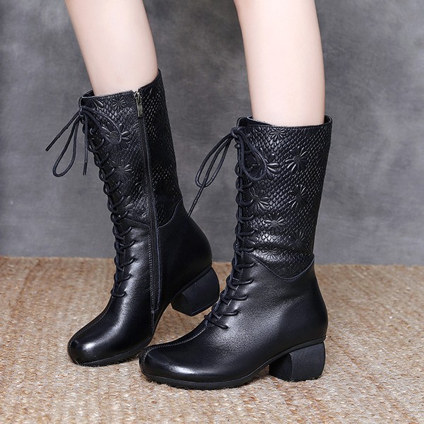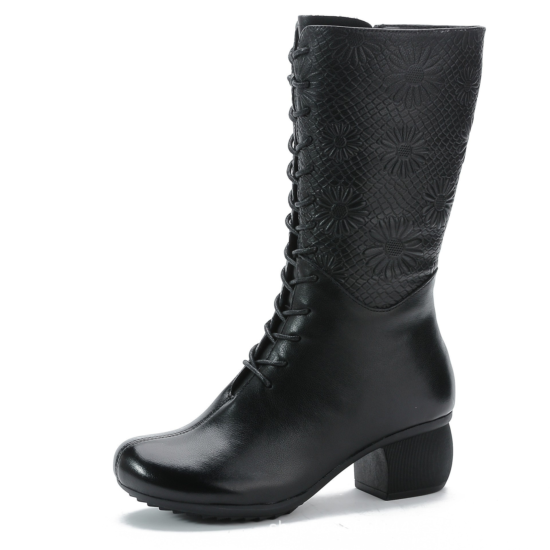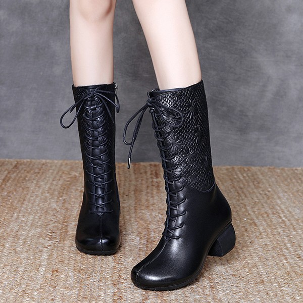Главная страница > Ботинки первого слоя из воловьей кожи, осенне-зимние женские ботинки на высоком каблуке нового стиля на флисовой подкладке, ремешки на толстом каблуке, модные длинные женские сапоги для верховой езды.