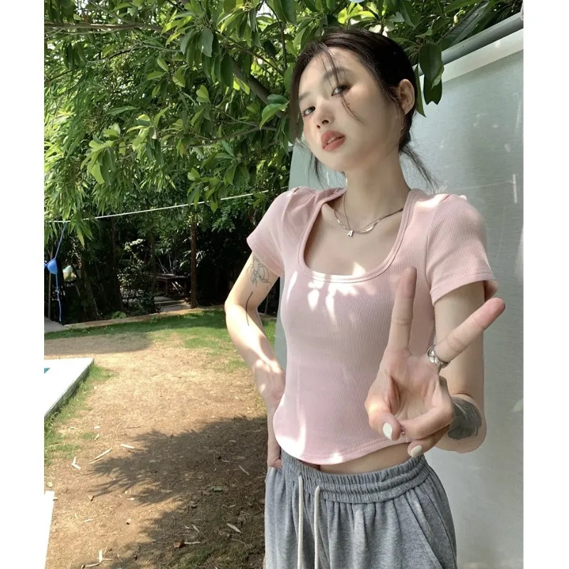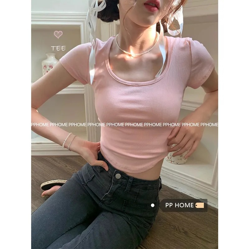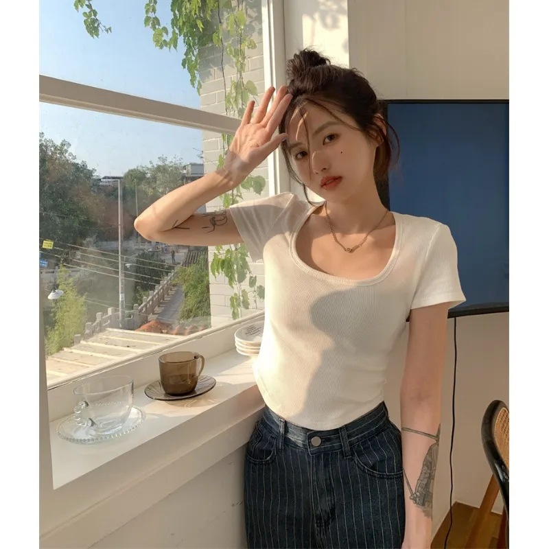 Главная страница > Футболка с U-образным вырезом на плече женская рубашка с коротким рукавом летом белая внутренняя рубашка