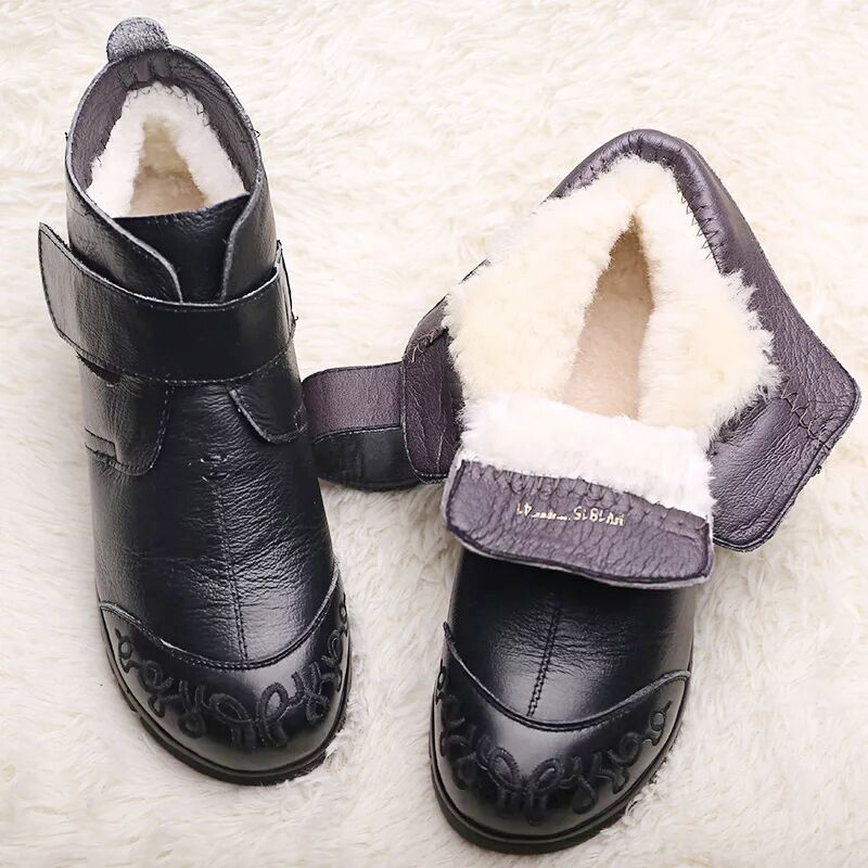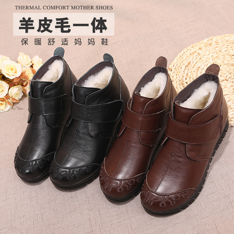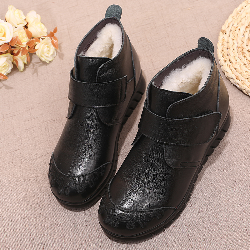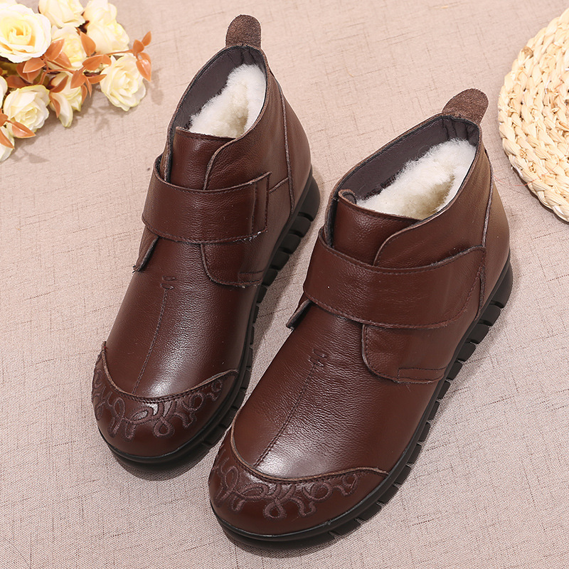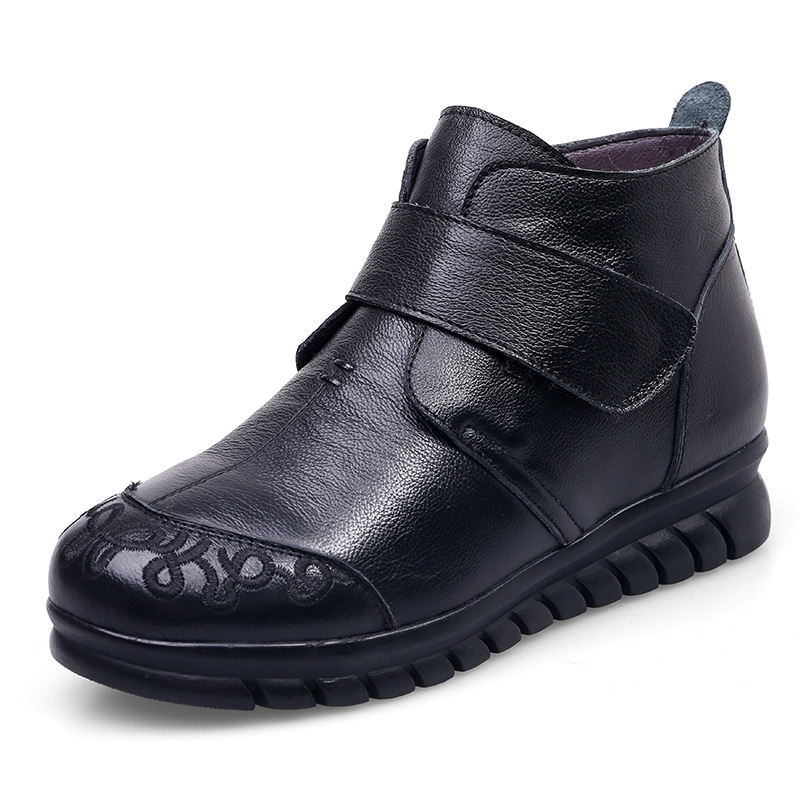 Главная страница > Зимняя хлопковая обувь для мам, женские теплые кожаные ботинки на флисовой подкладке, кожаная обувь на плоской подошве с мягкой подошвой для среднего и пожилого возраста, женская обувь больших размеров