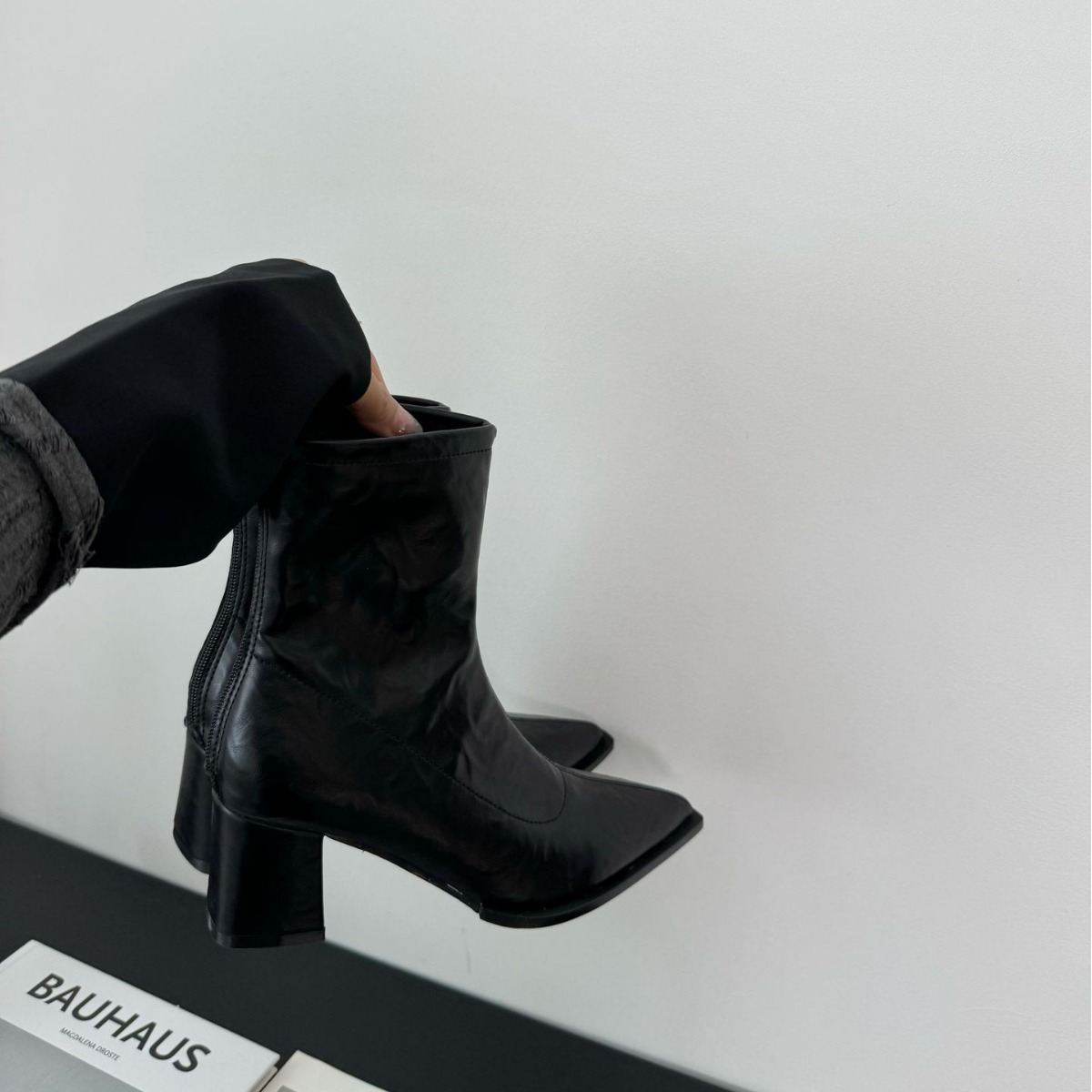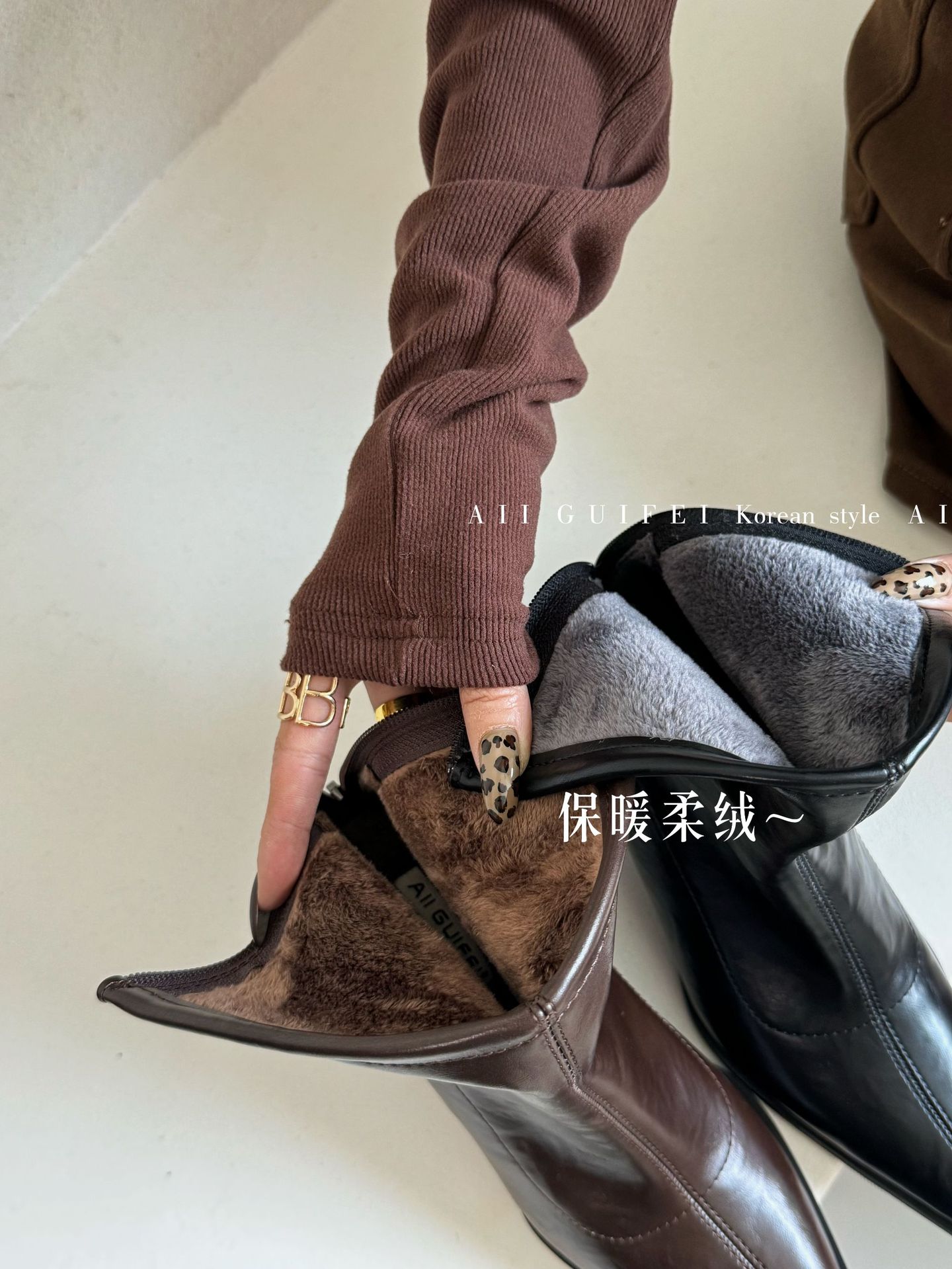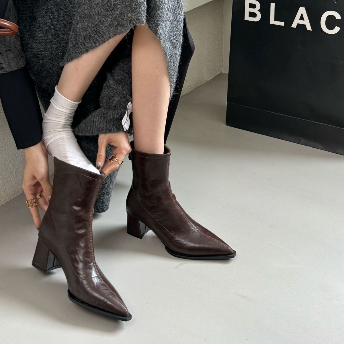 Главная страница > Британские модные ботинки с острым носком на низком массивном каблуке, женские короткие ботинки для осени и зимы 2025 года, универсальные мотоциклетные ботинки с молнией сзади.