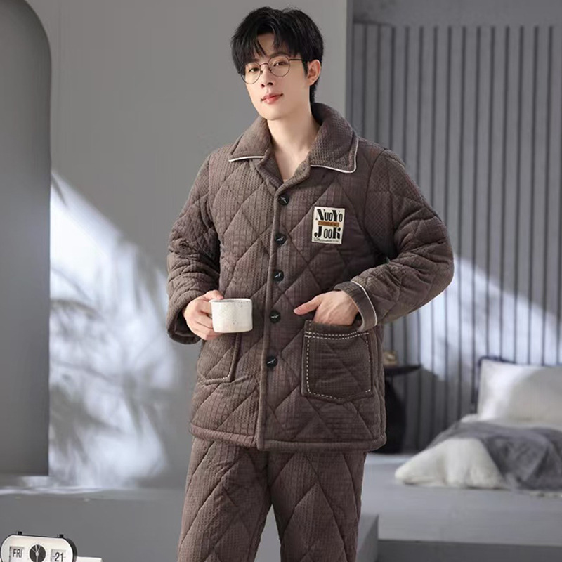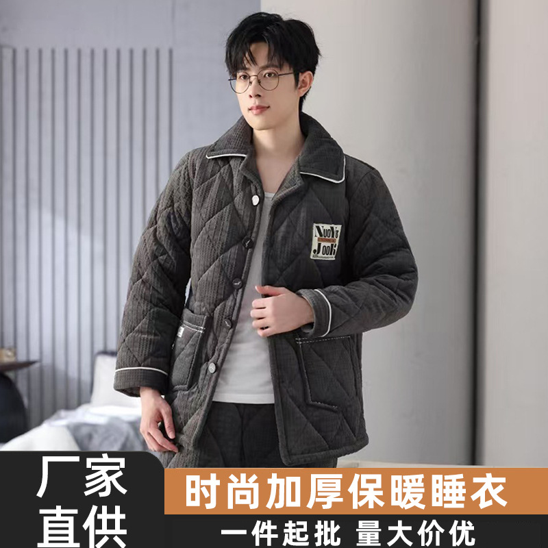 Главная страница > Зимняя мужская пижама трехслойная утолщение вата плюс бархат осенняя и зимняя теплая ватная куртка островной бархат