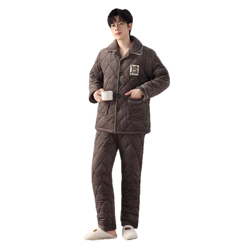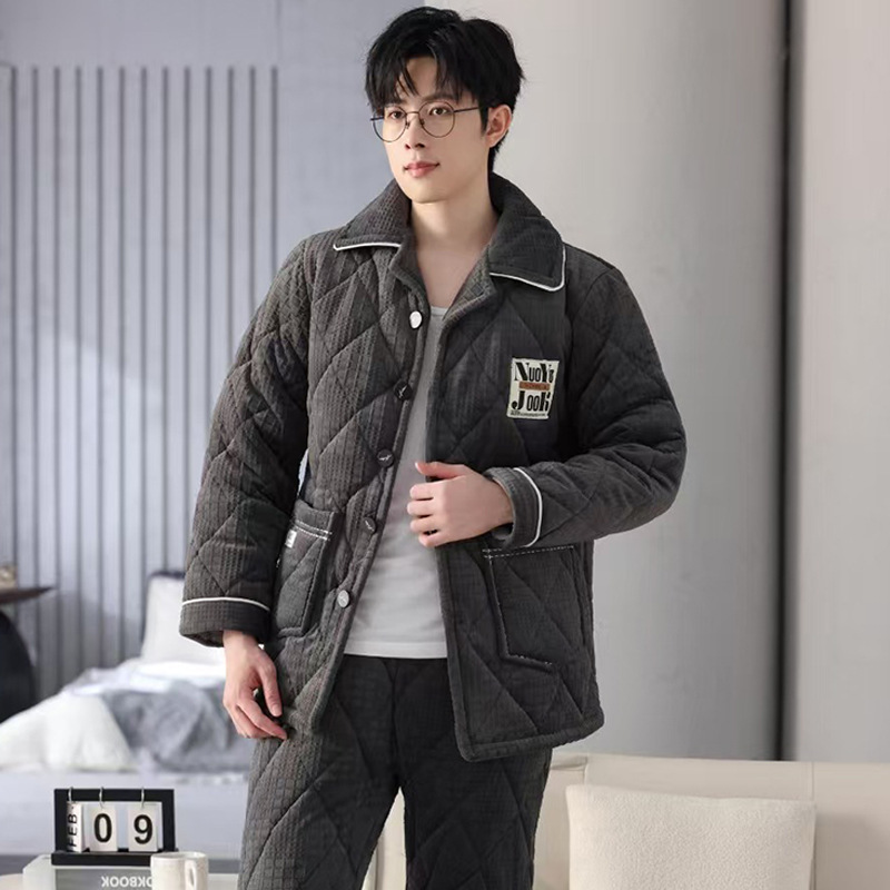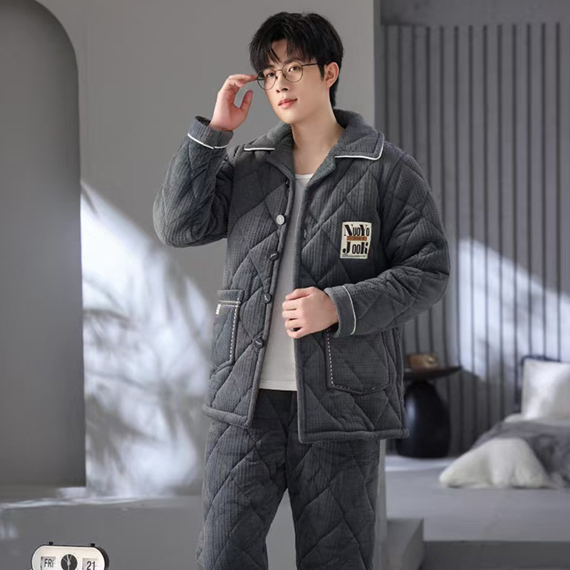 Зимняя мужская пижама трехслойная утолщение вата плюс бархат осенняя и зимняя теплая ватная куртка островной бархат
