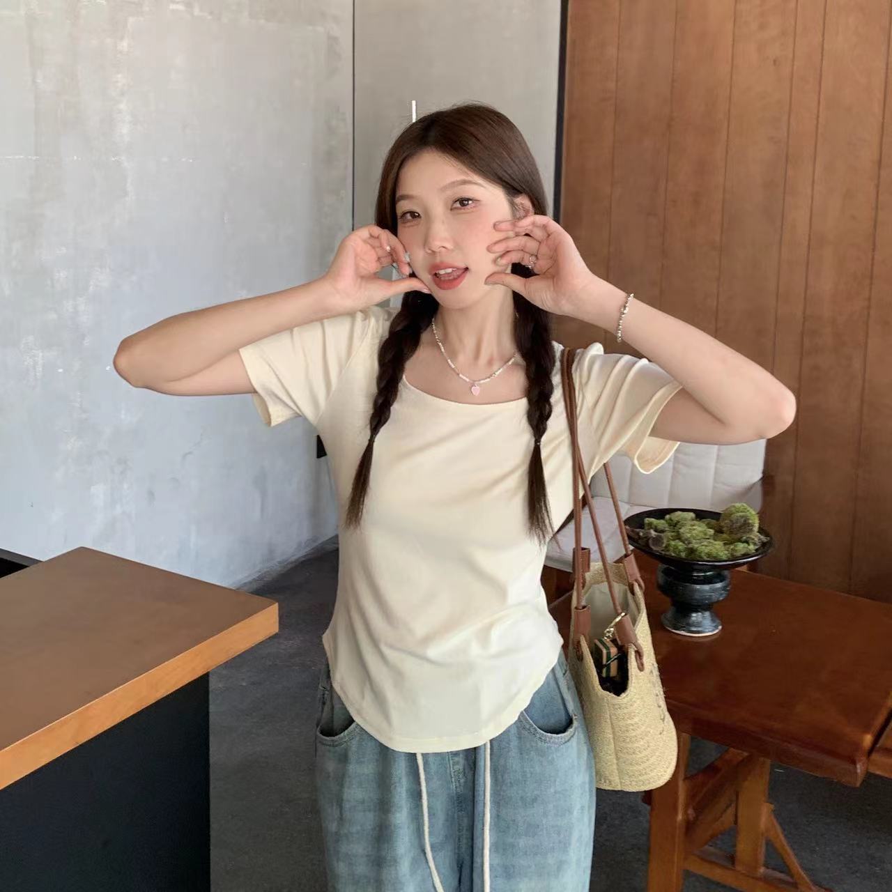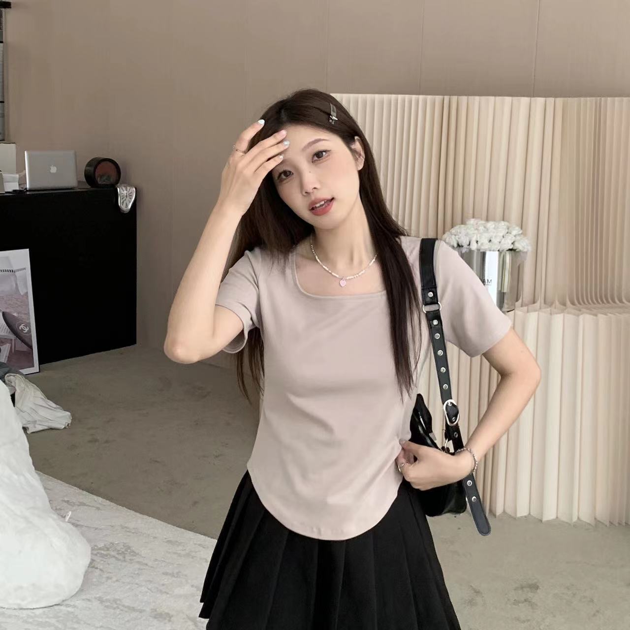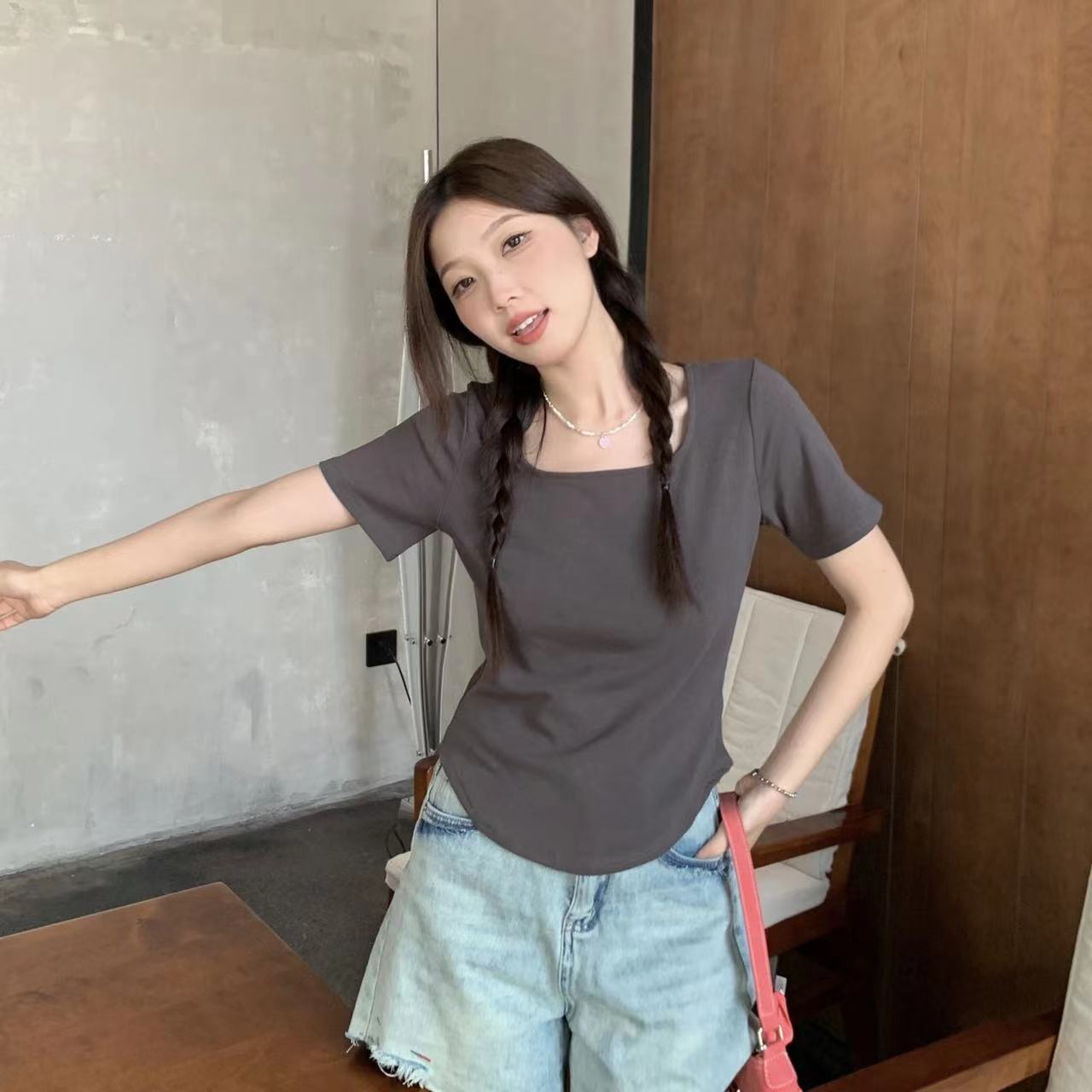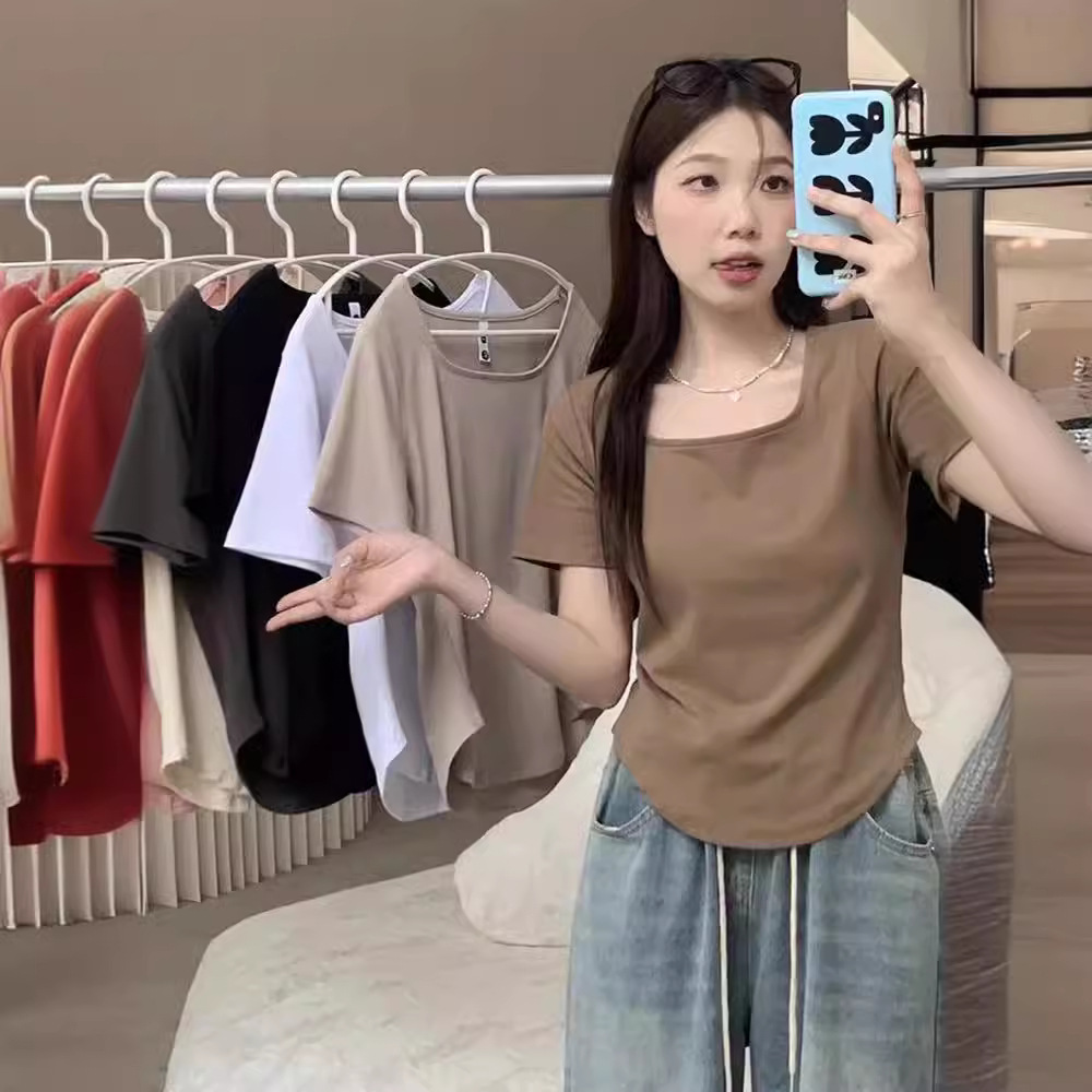 Большой размер толстый мм, чтобы покрыть живот, тонкий и шикарный, сладкая рубашка с квадратным вырезом на плече женщина 2024 летний новый иностранный топ