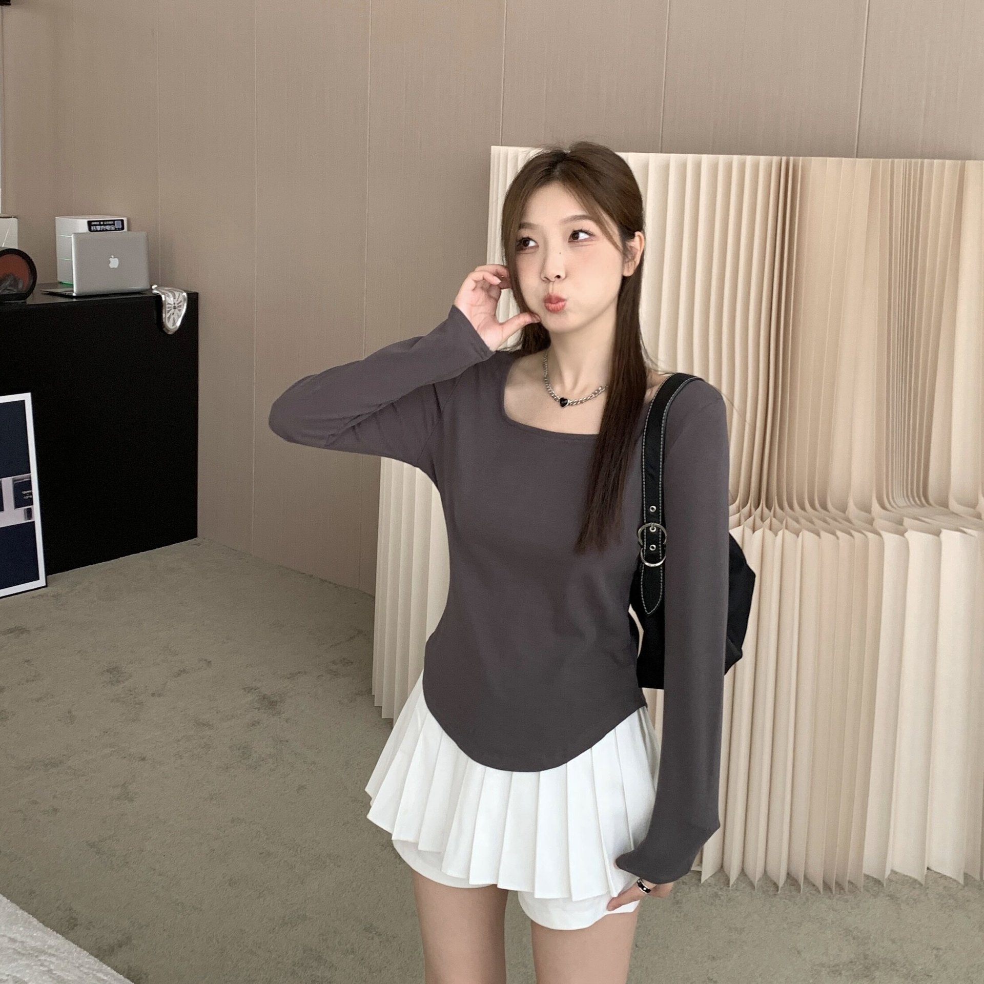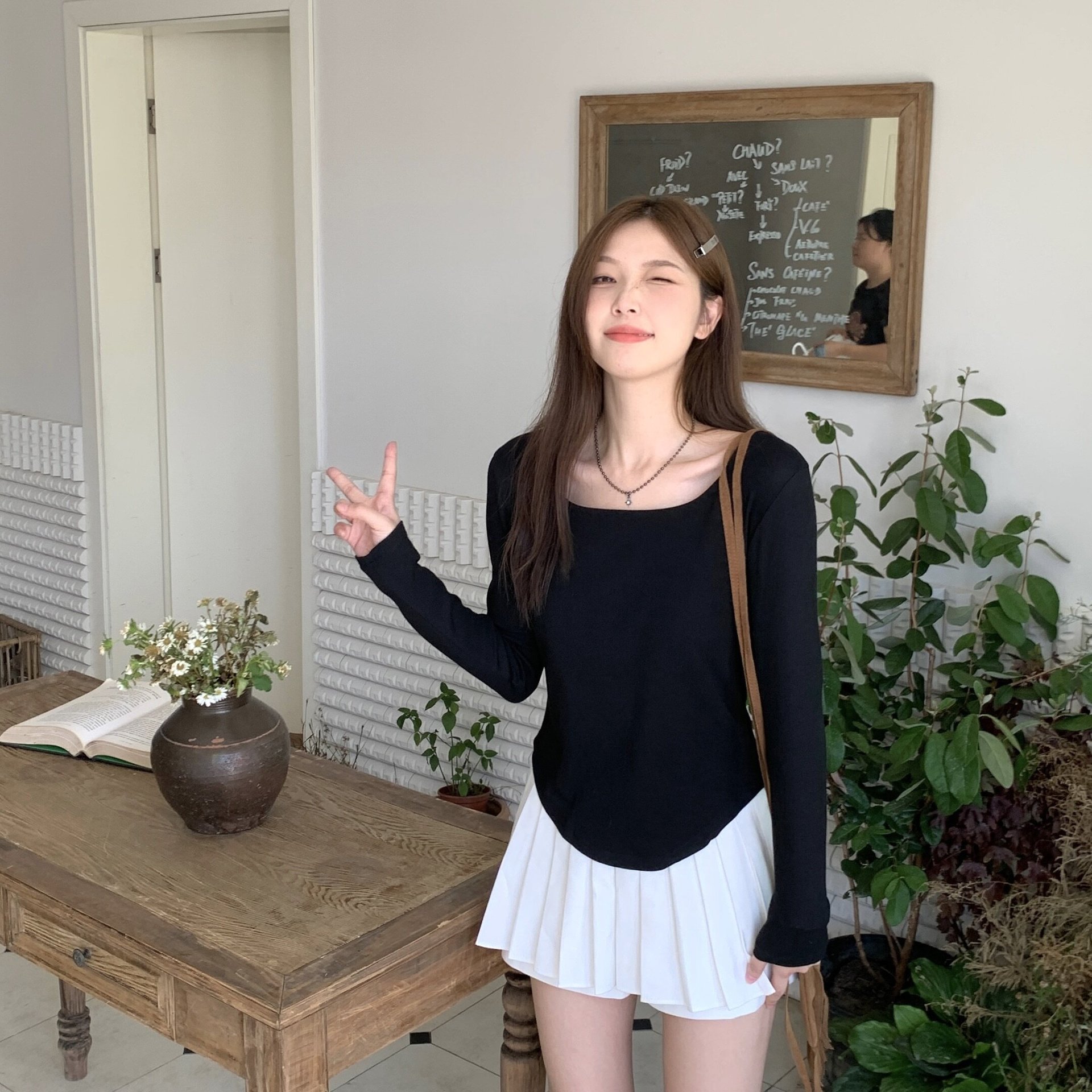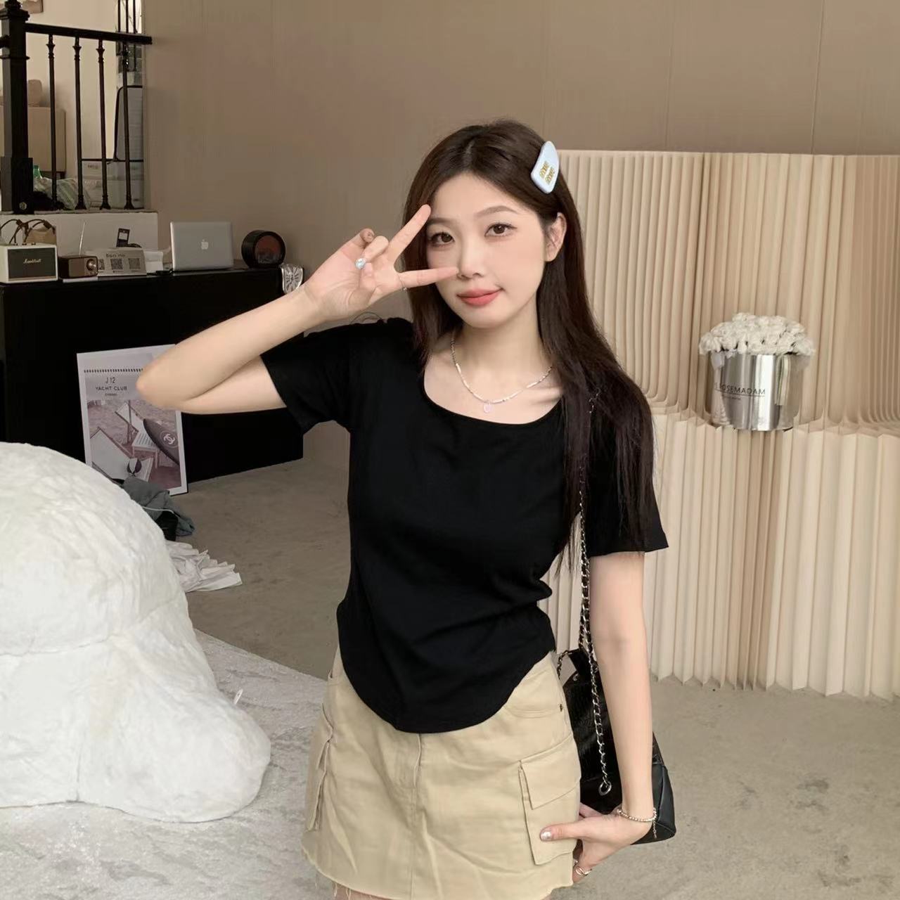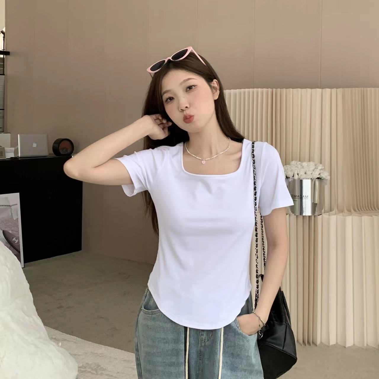 Большой размер толстый мм, чтобы покрыть живот, тонкий и шикарный, сладкая рубашка с квадратным вырезом на плече женщина 2024 летний новый иностранный топ