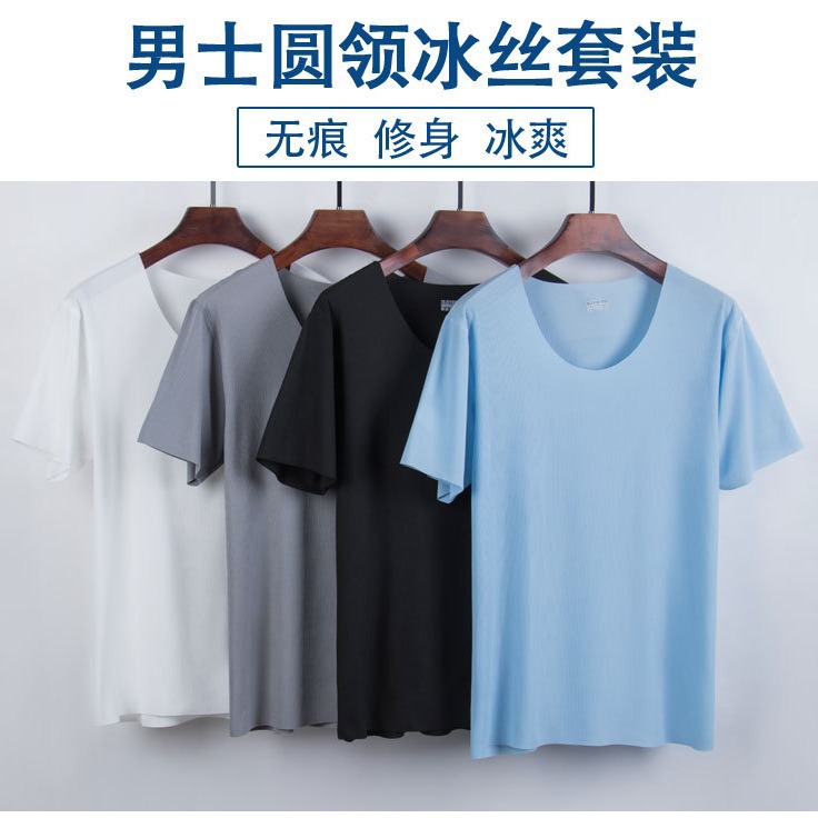 Главная страница > Летний тонкий мужской Пижамный костюм из ледяного шелка, домашняя одежда, немаркие шорты с короткими рукавами, мужская повседневная Летняя одежда с круглым вырезом