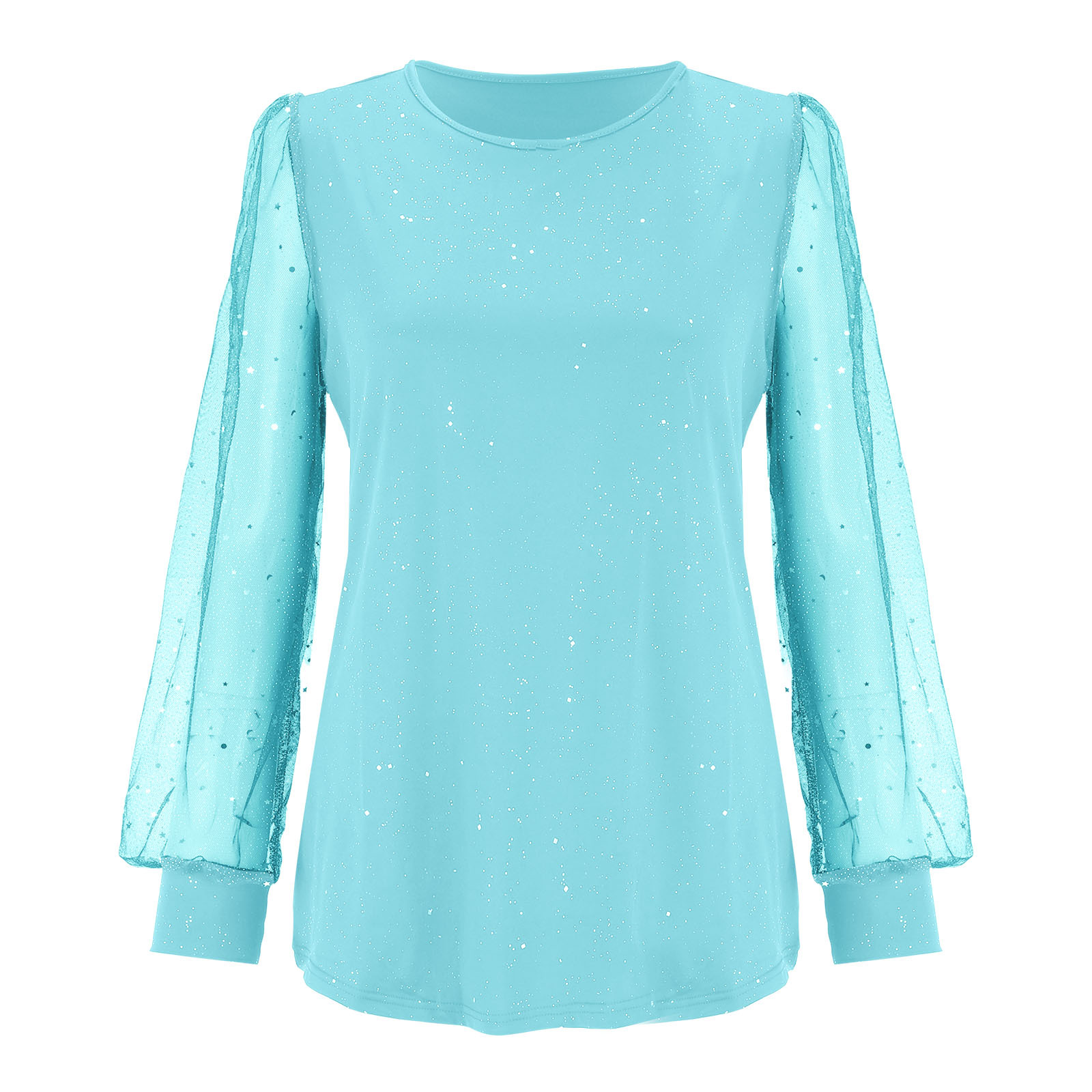 Главная страница > Женская футболка оверсайз с длинным рукавом, круглым вырезом, повседневная, с пайетками и сеткой, в европейском и американском стиле, для трансграничной торговли на Amazon.