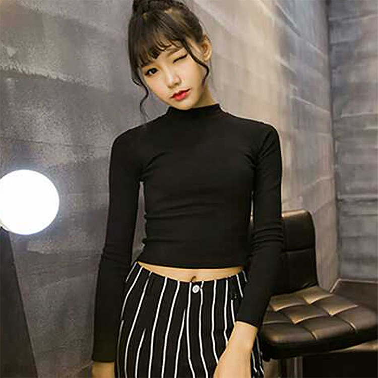 Главная страница > Трансграничная Amazon новая Прямая Оптовая Продажа с фабрики 2020 женская футболка с длинным рукавом, однотонная Базовая рубашка с высоким воротником, женская