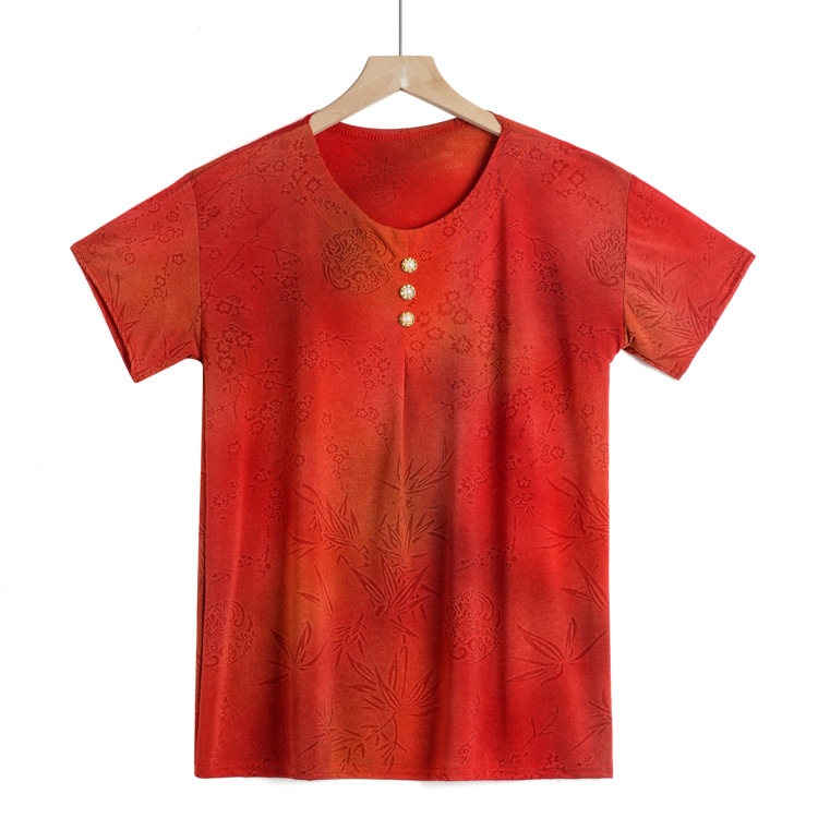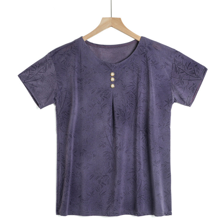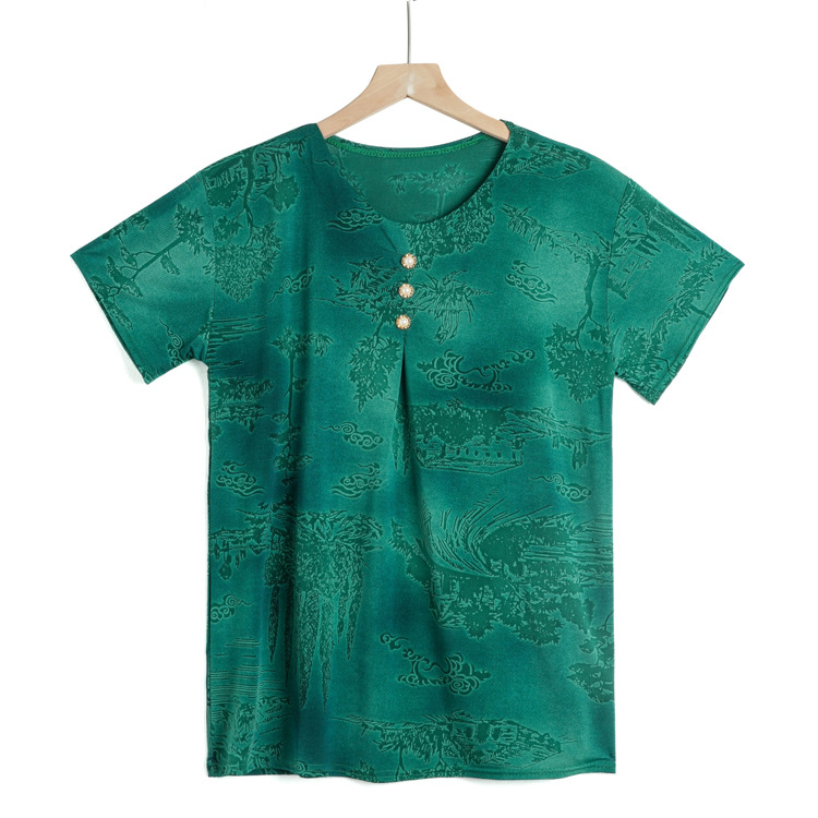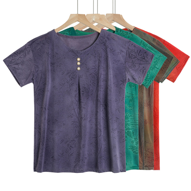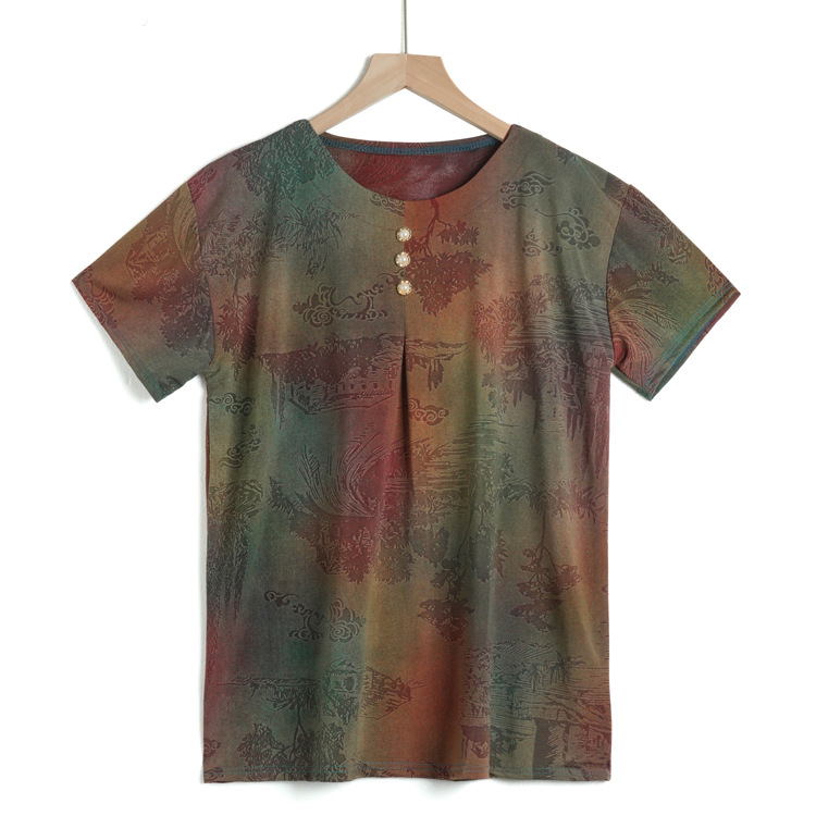 Главная страница > 2025 новый летний стиль, тонкая льняная футболка с короткими рукавами и круглым вырезом с принтом для женщин среднего и пожилого возраста, повседневный свободный топ для похудения