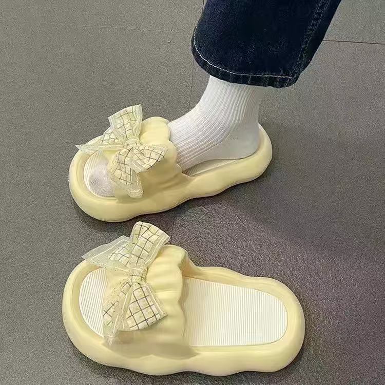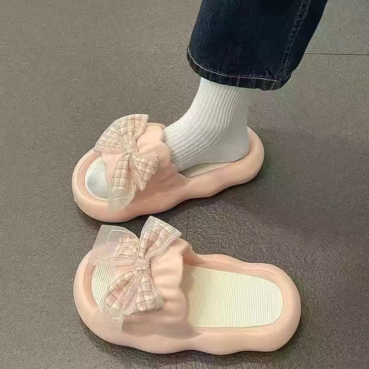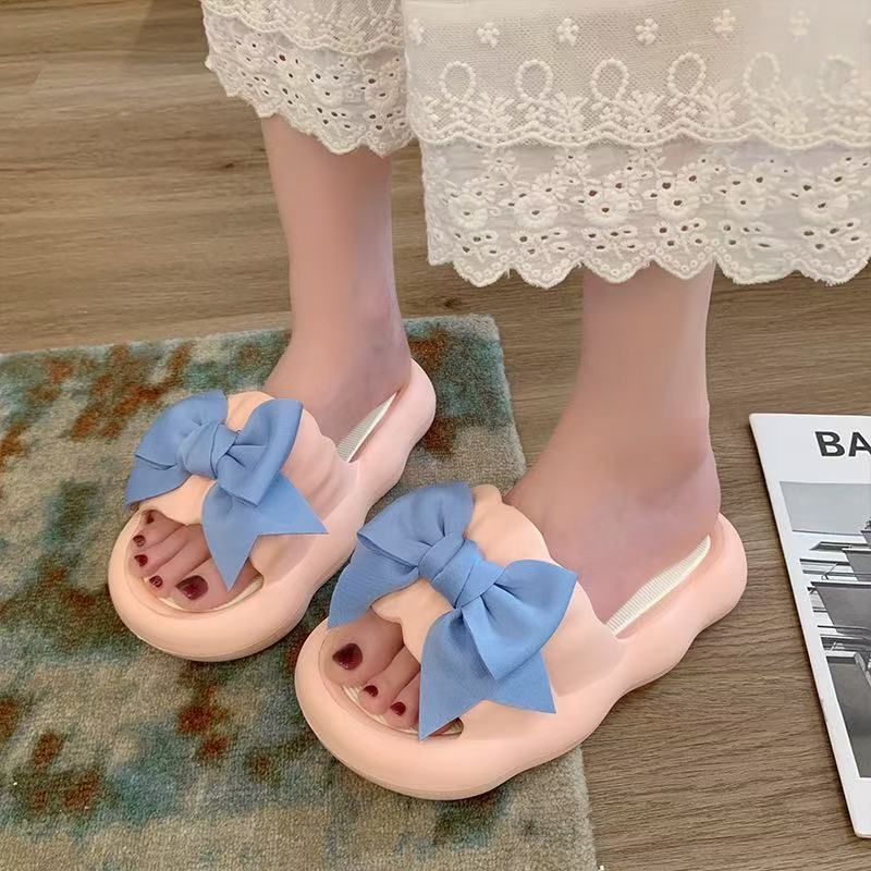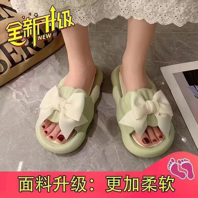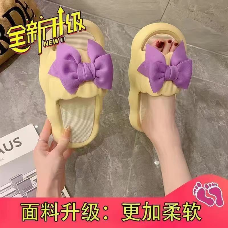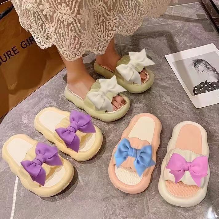 Главная страница > Популярные женские тапочки для улицы 2025, новые летние модные универсальные сандалии с бантом на толстой подошве, удобные для женщин на лето