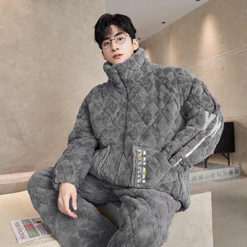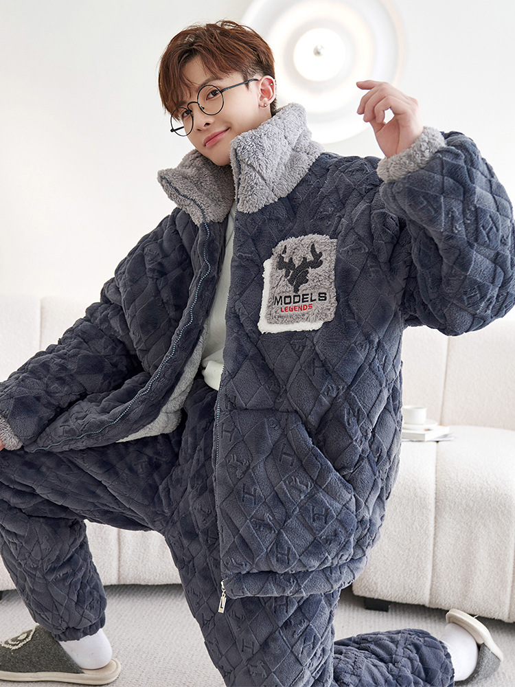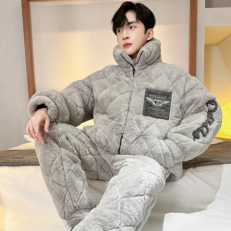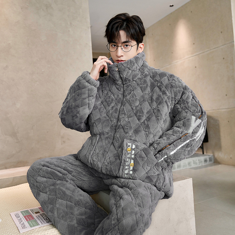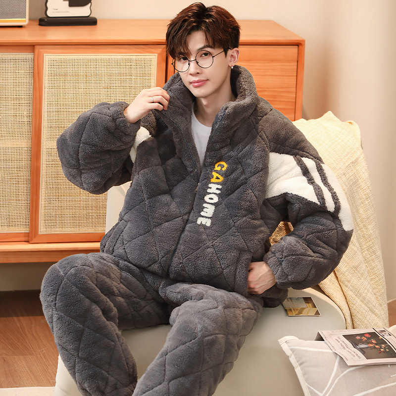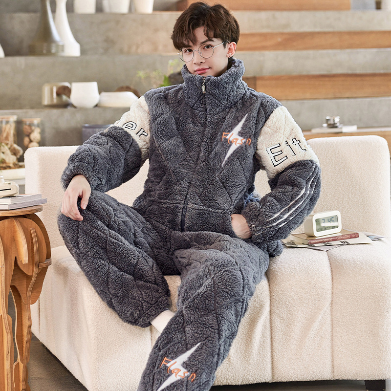 Главная страница > Зимняя мужская пижама трехслойная вата утолщенные и бархатные коралловые молнии