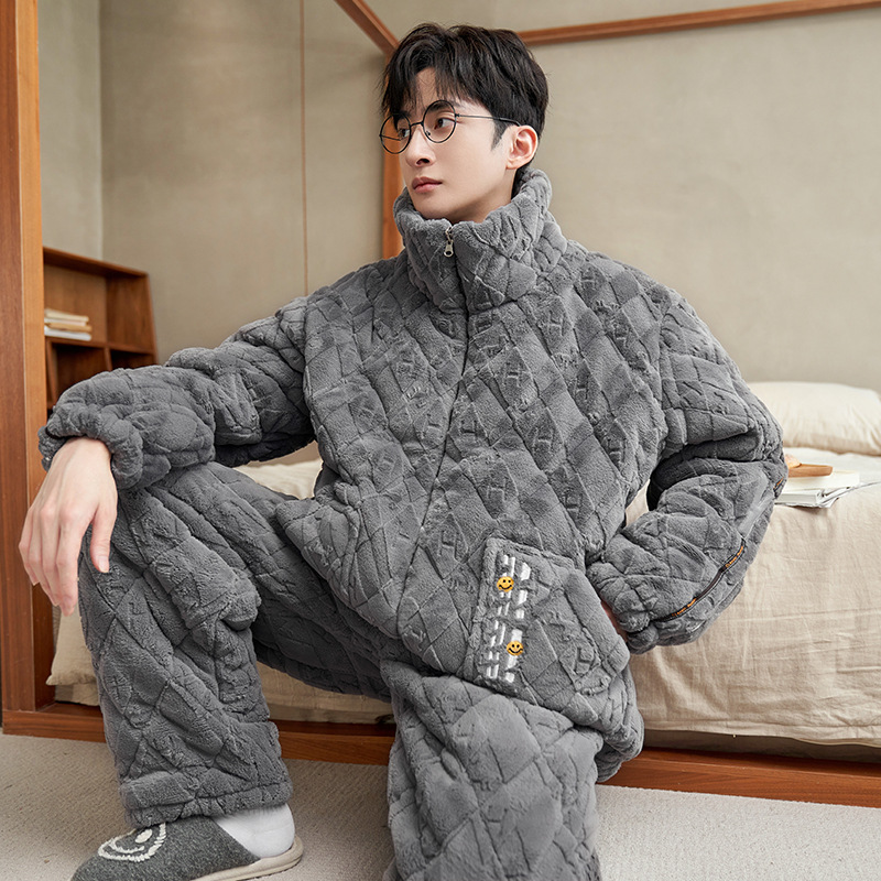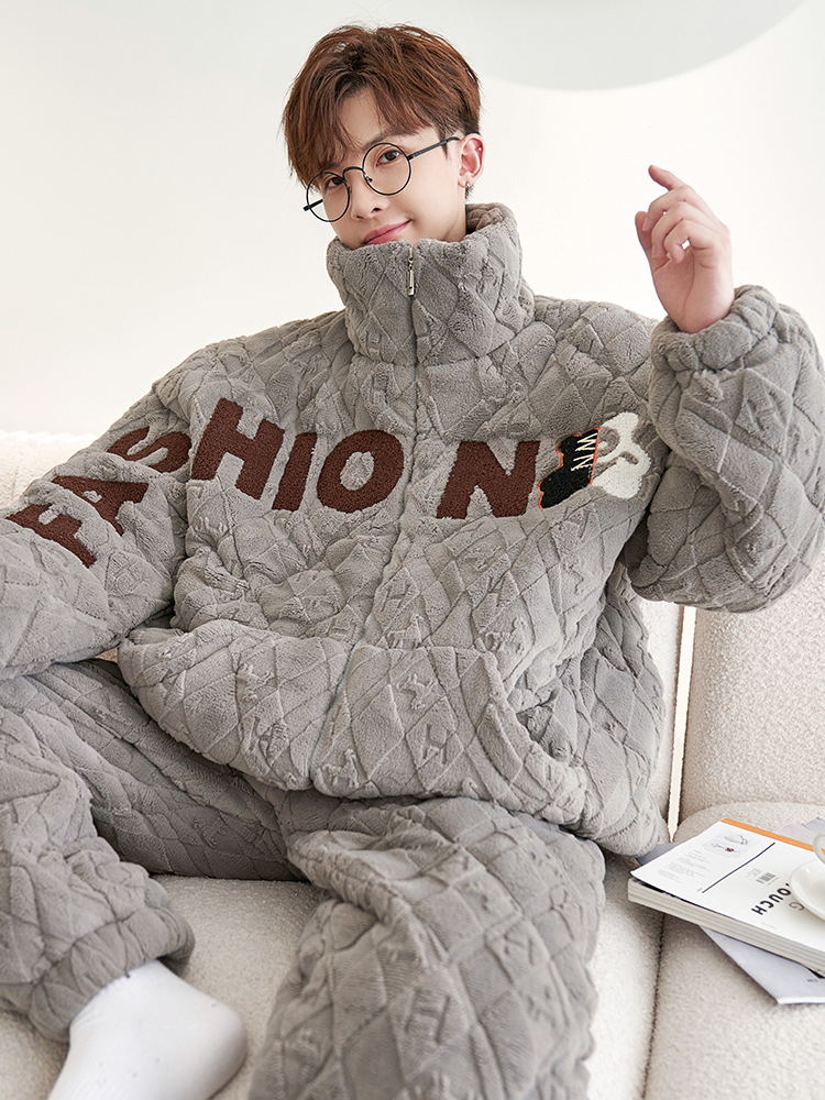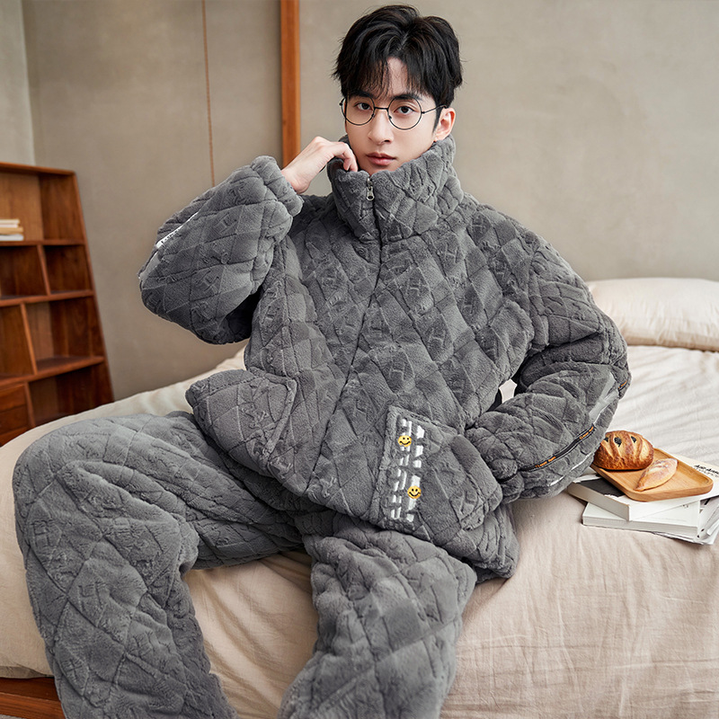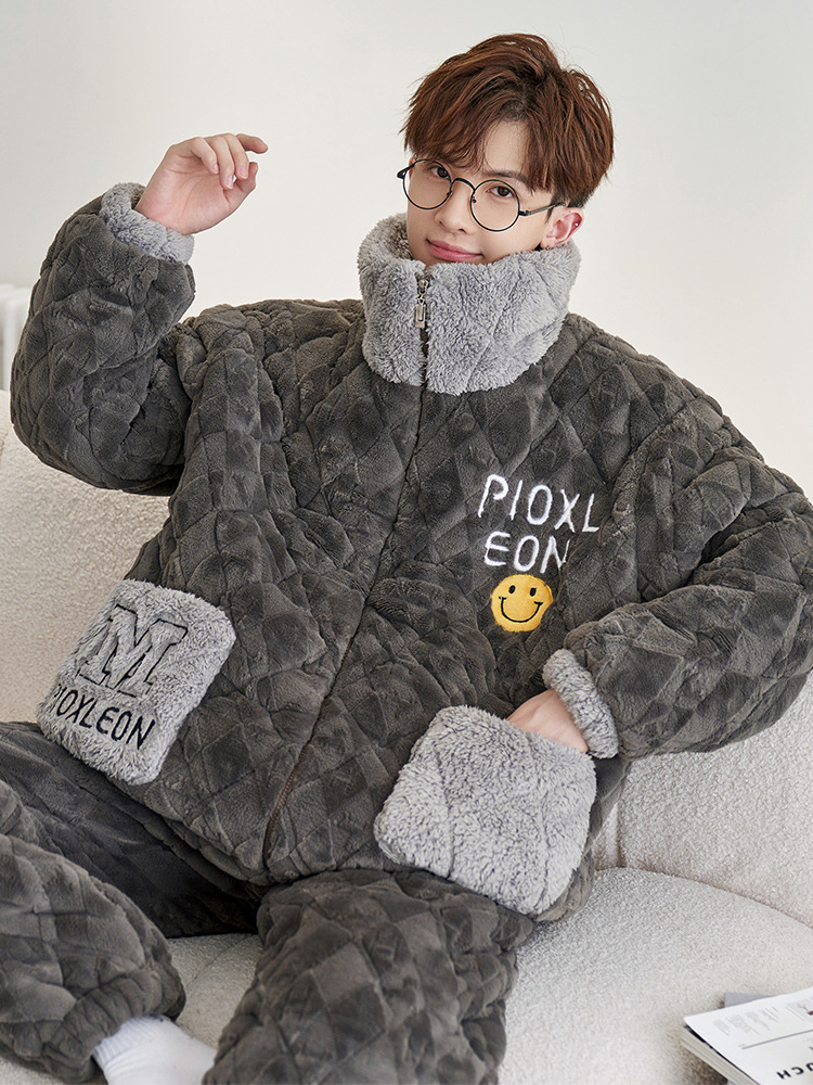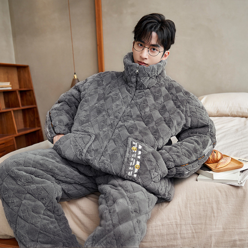 Главная страница > Зимняя мужская пижама трехслойная вата утолщенные и бархатные коралловые молнии