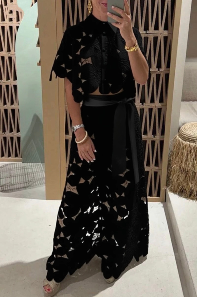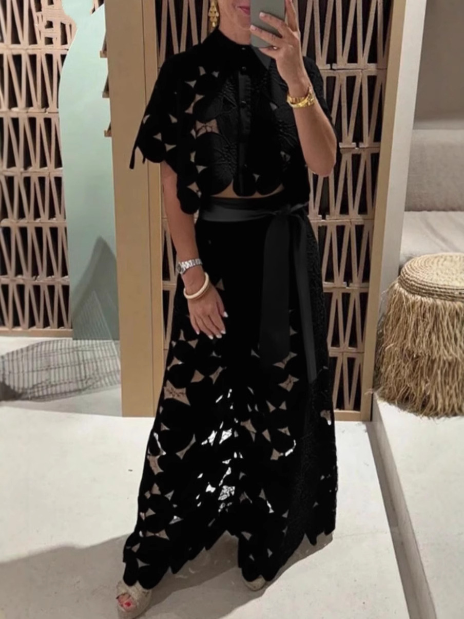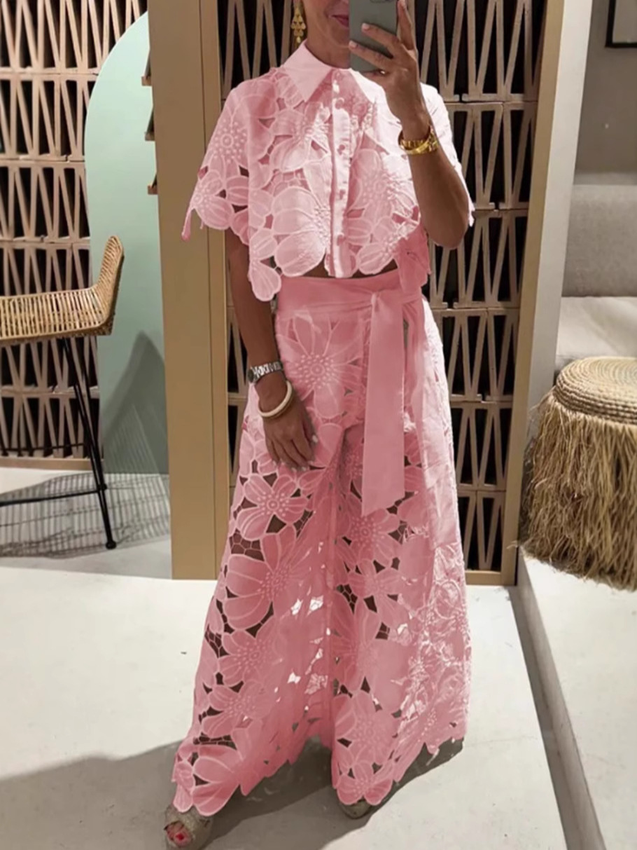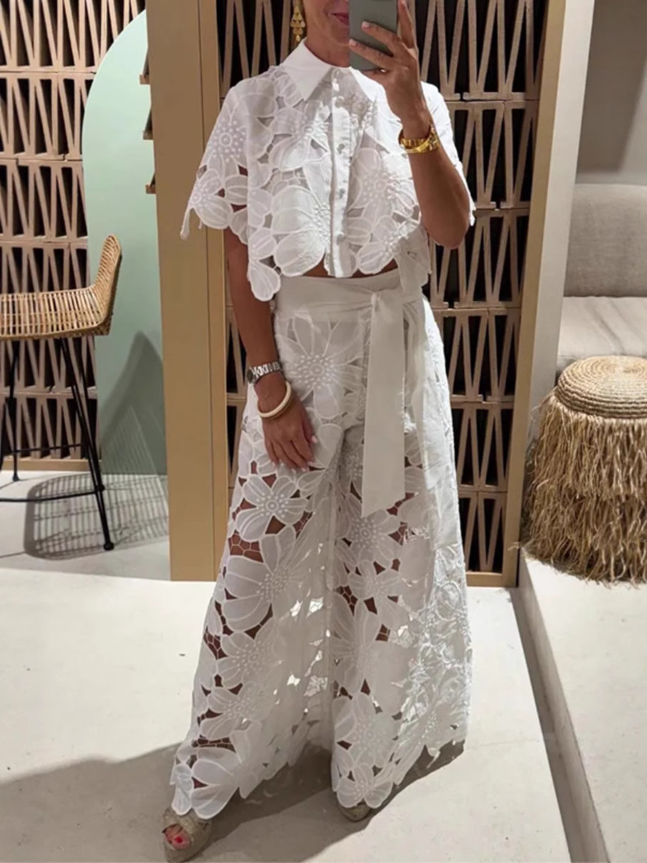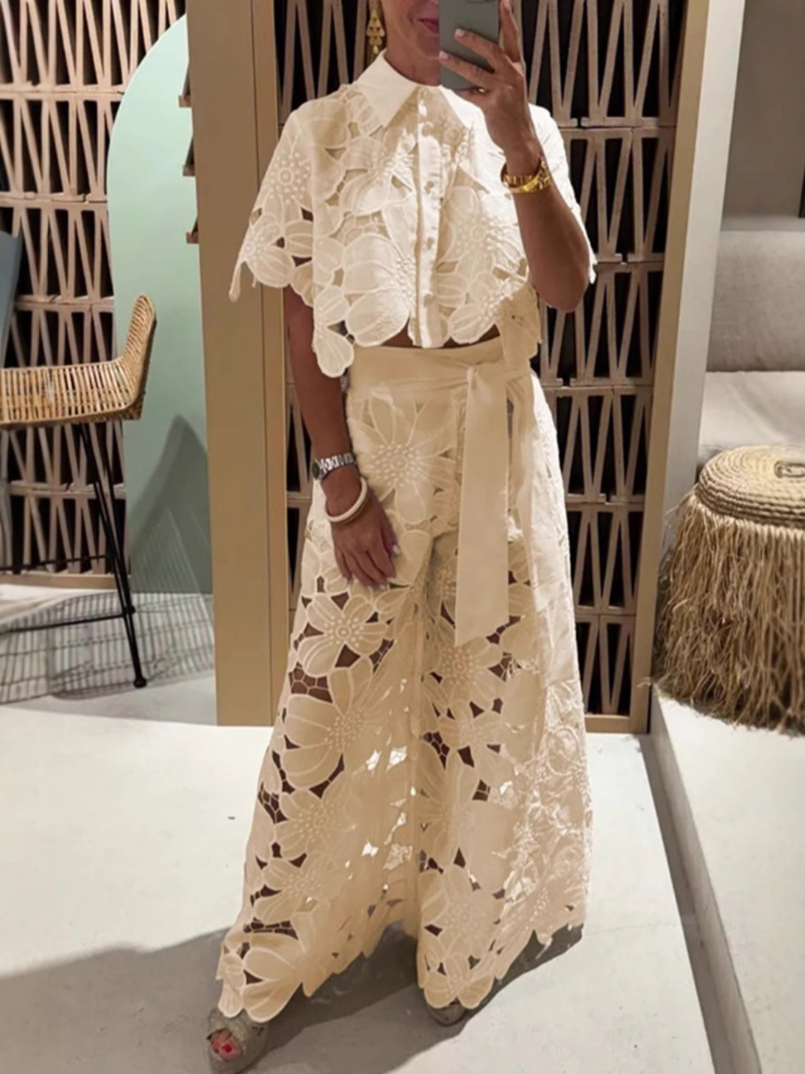 Главная страница > Летний комплект 2025 года для женщин: новый топ-кардиган с ажурными вставками и широкие брюки в однотонном цвете, стиль европейский и американский, для трансграничных покупок на Amazon.