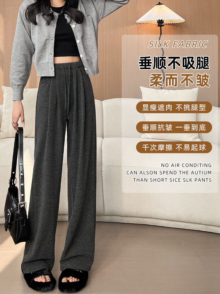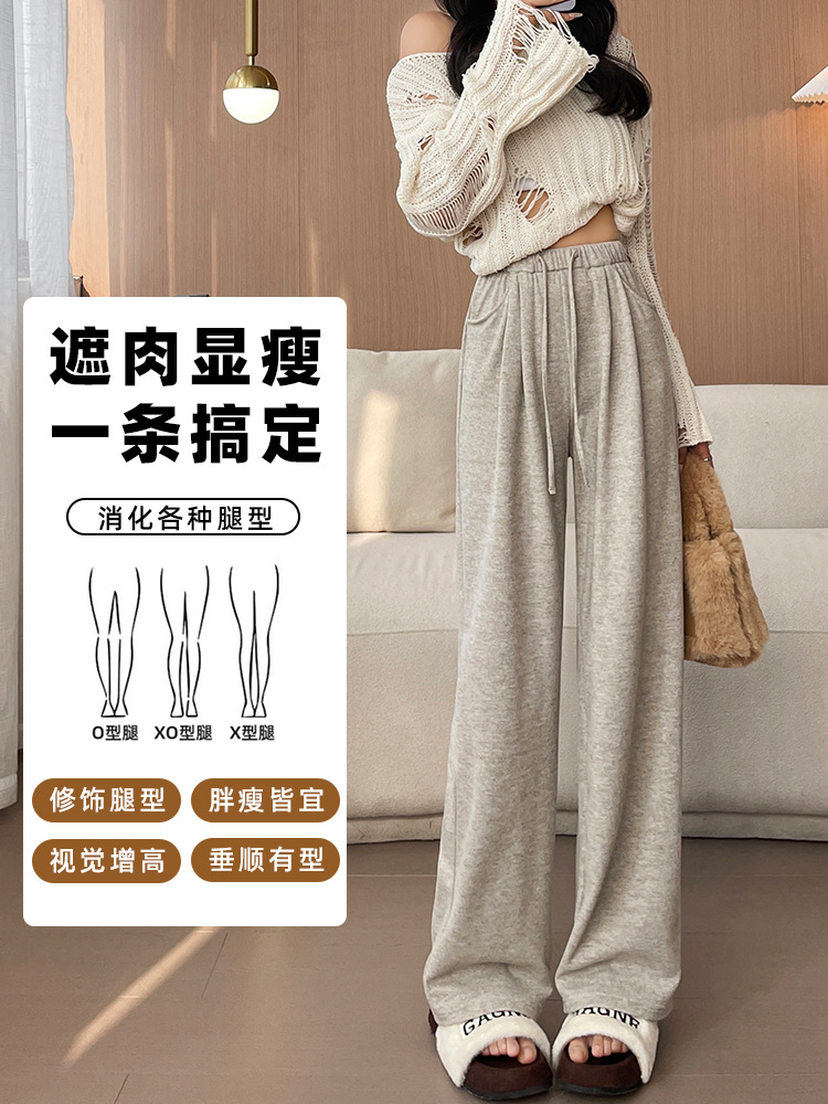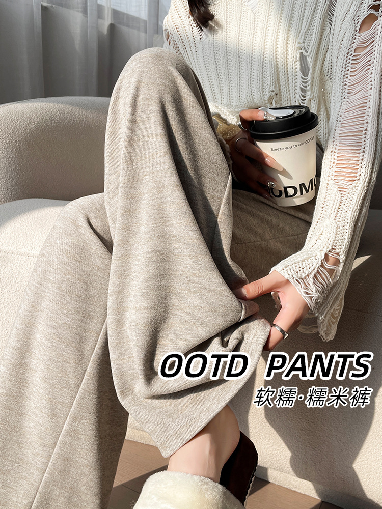 Главная страница > Ленивый ветер клейкие рисовые брюки 2025 новые женские весенние и осенние подвески мягкие восковые и расслабляющие трикотажные спортивные свободные широкие брюки