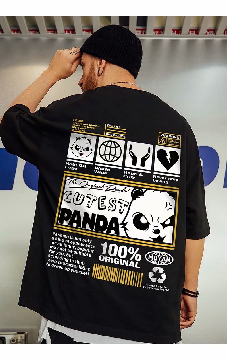 Главная страница > Мужская футболка в стиле хип-хоп с короткими рукавами и принтом китайской панды для мужчин и женщин, топы в одном стиле для пар